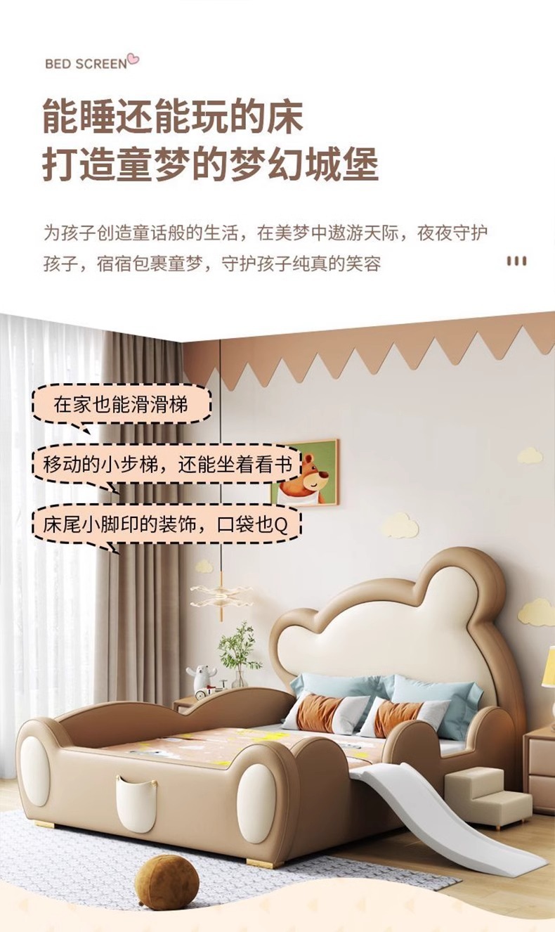 모에 곰 어린이 침대 가드 레일 슬라이드 소년과 소녀 만화 간단한 현대 가죽 단단한 나무 귀여운 아기 침대스토어 가기
