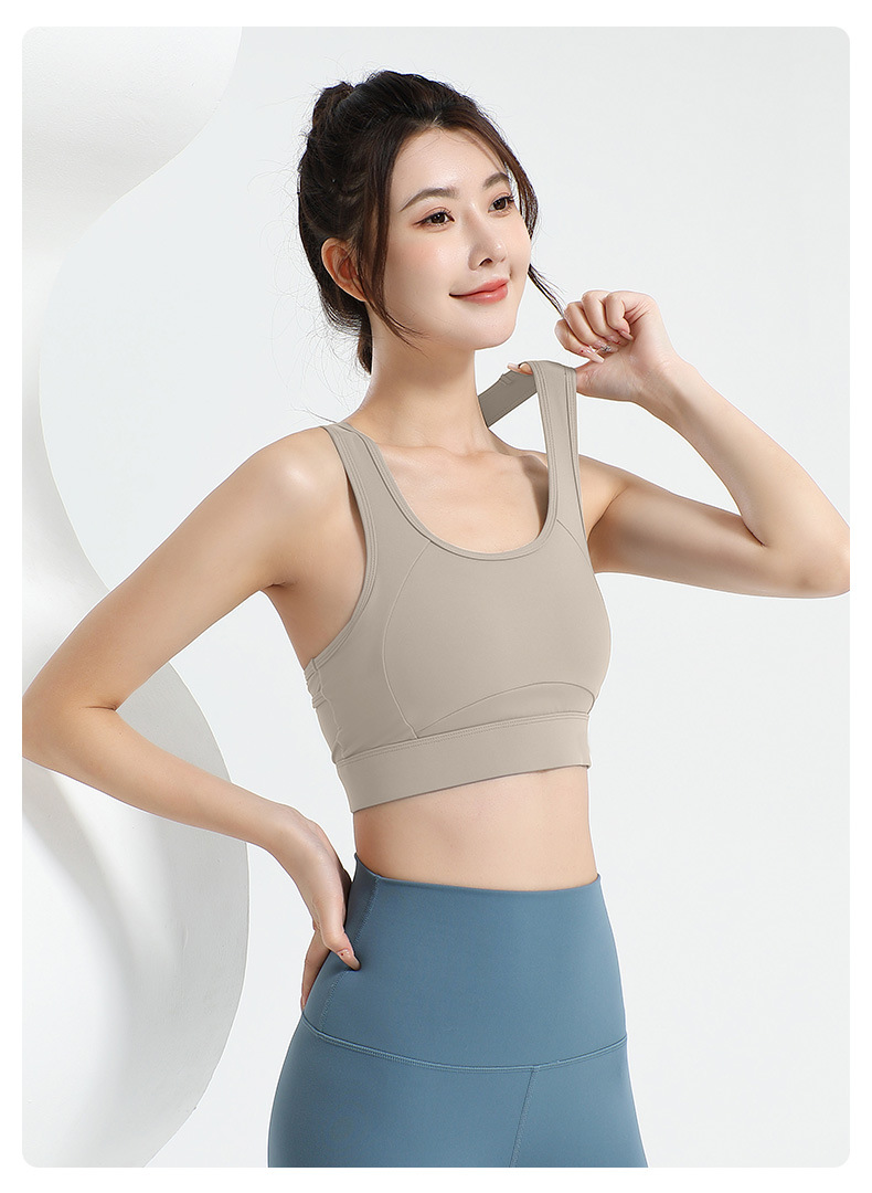 새로운 고강도 고정 컵 충격 방지 올인원 피트니스 조끼 푸시 업 아름다운 등 러닝 브라 여성용 스포츠 브라