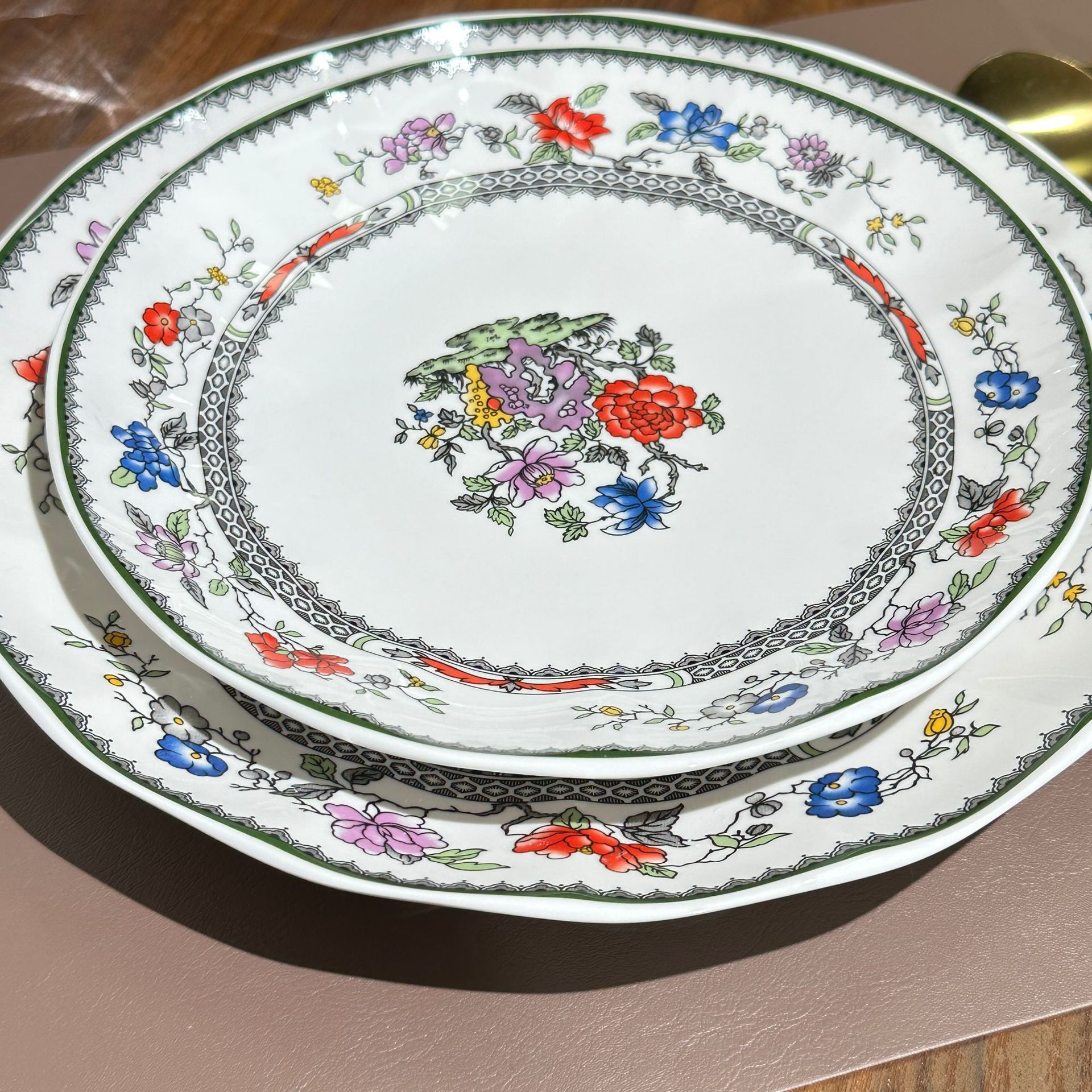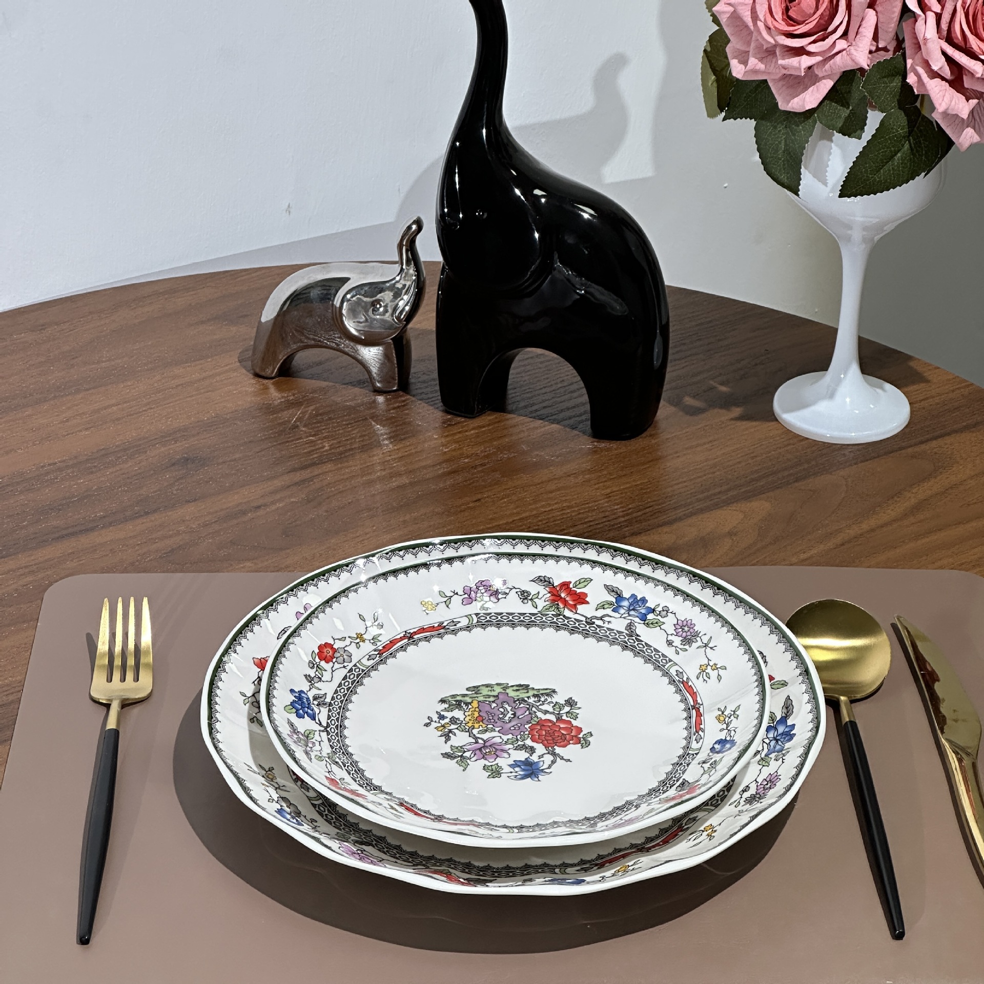 도매 호텔 레스토랑 가정용 식기 높은 색상 가치 국가 스타일 빈티지 꽃과 새 스테이크 플레이트 웨스턴 푸드 플레이트 디저트 플레이트