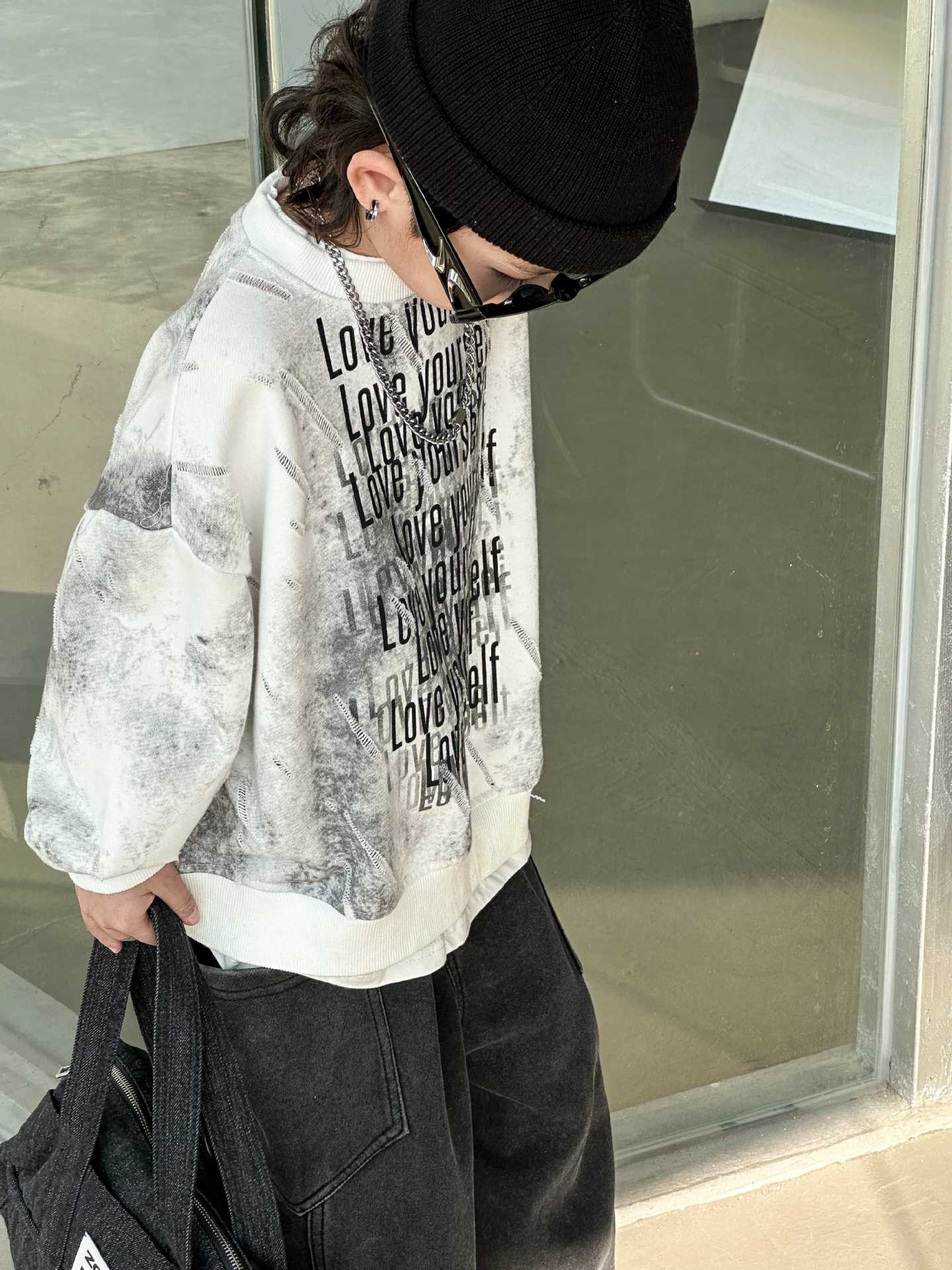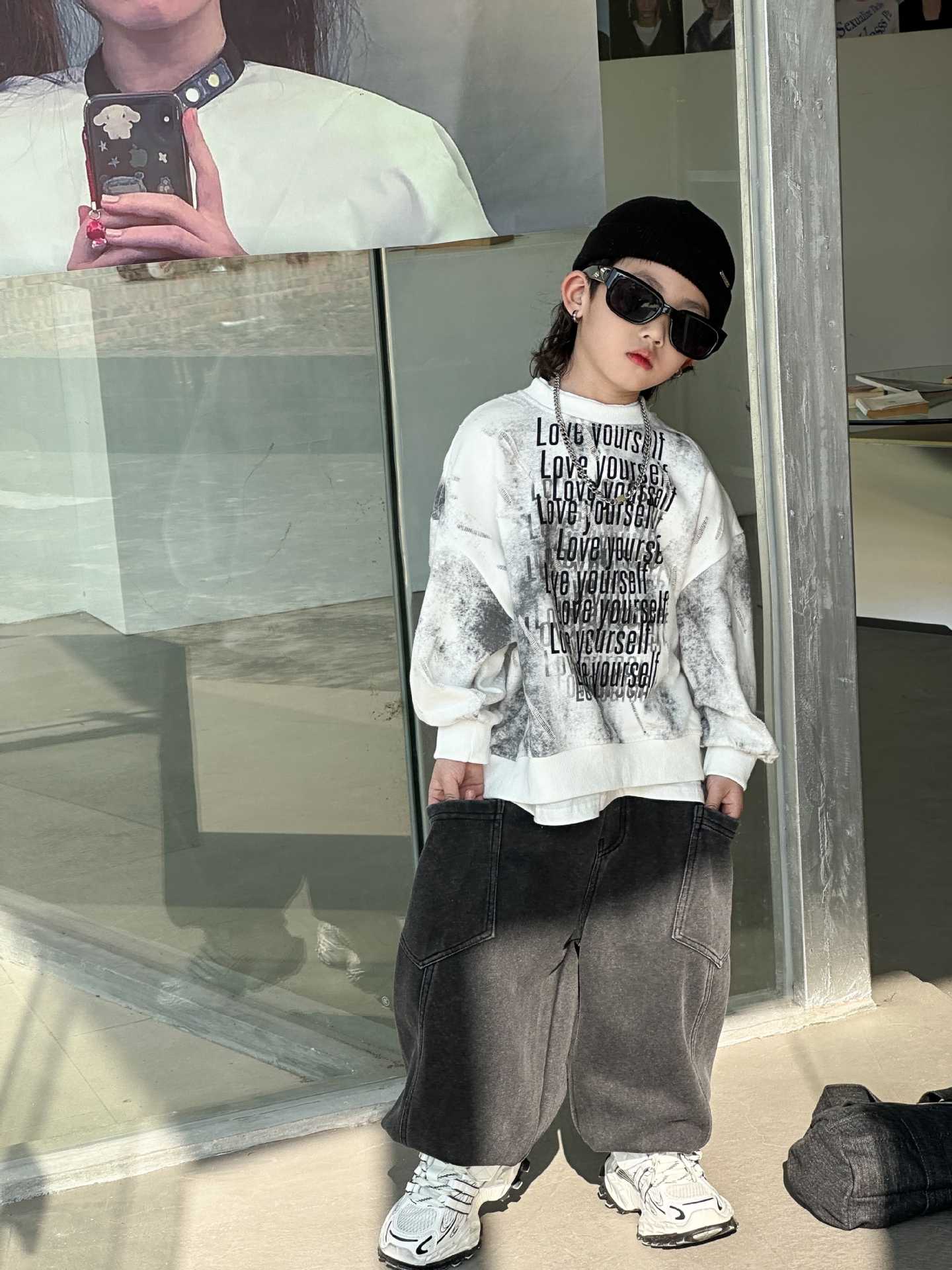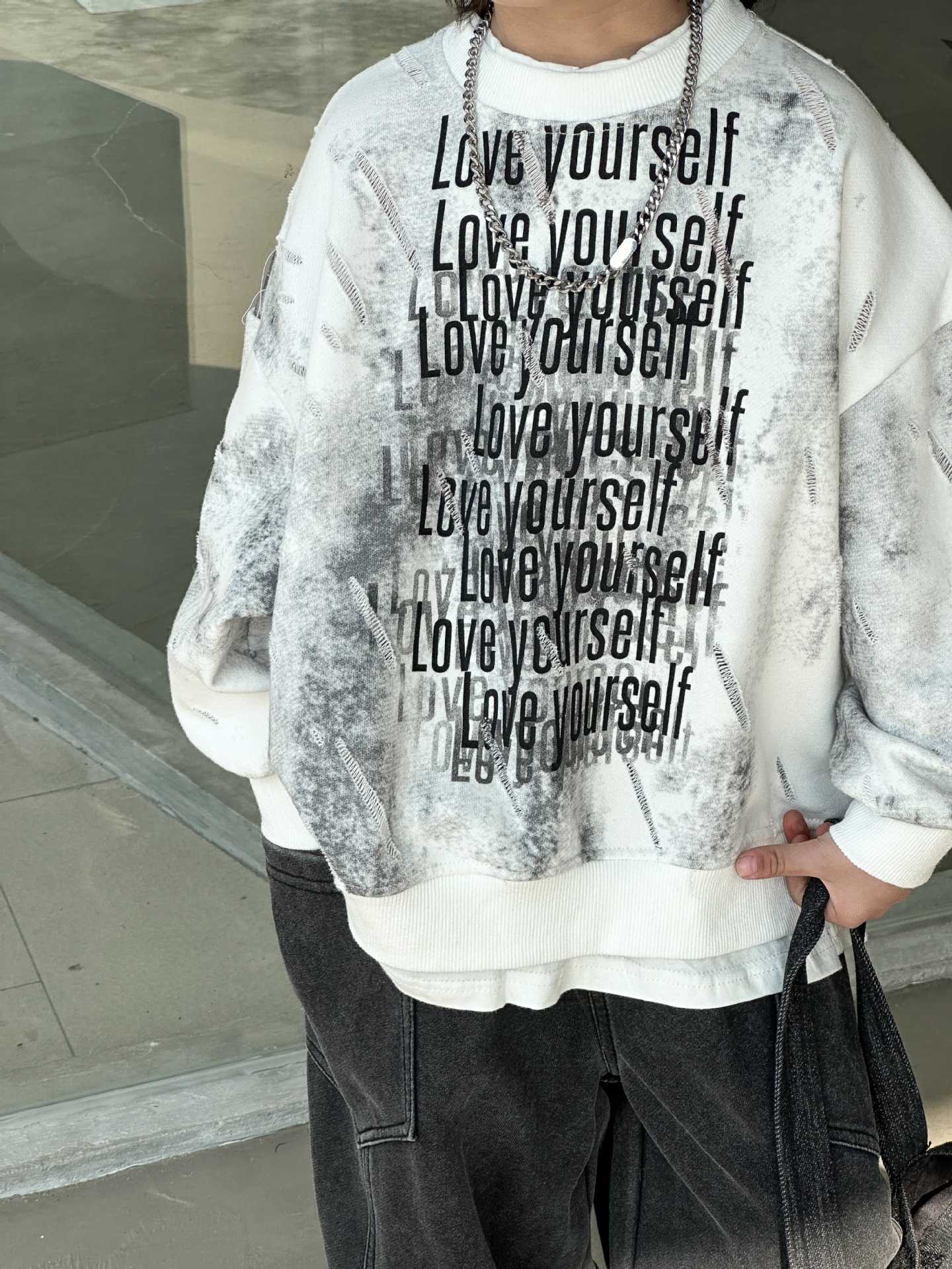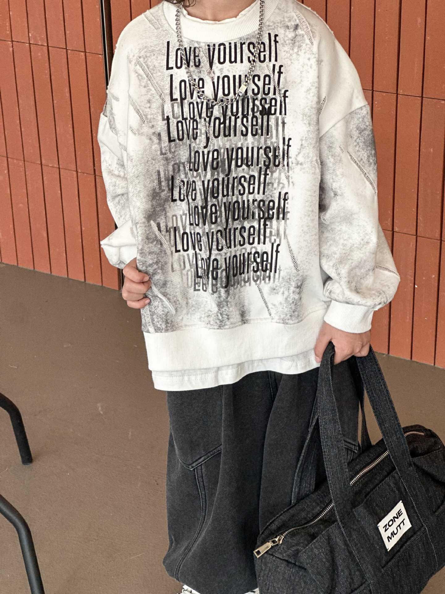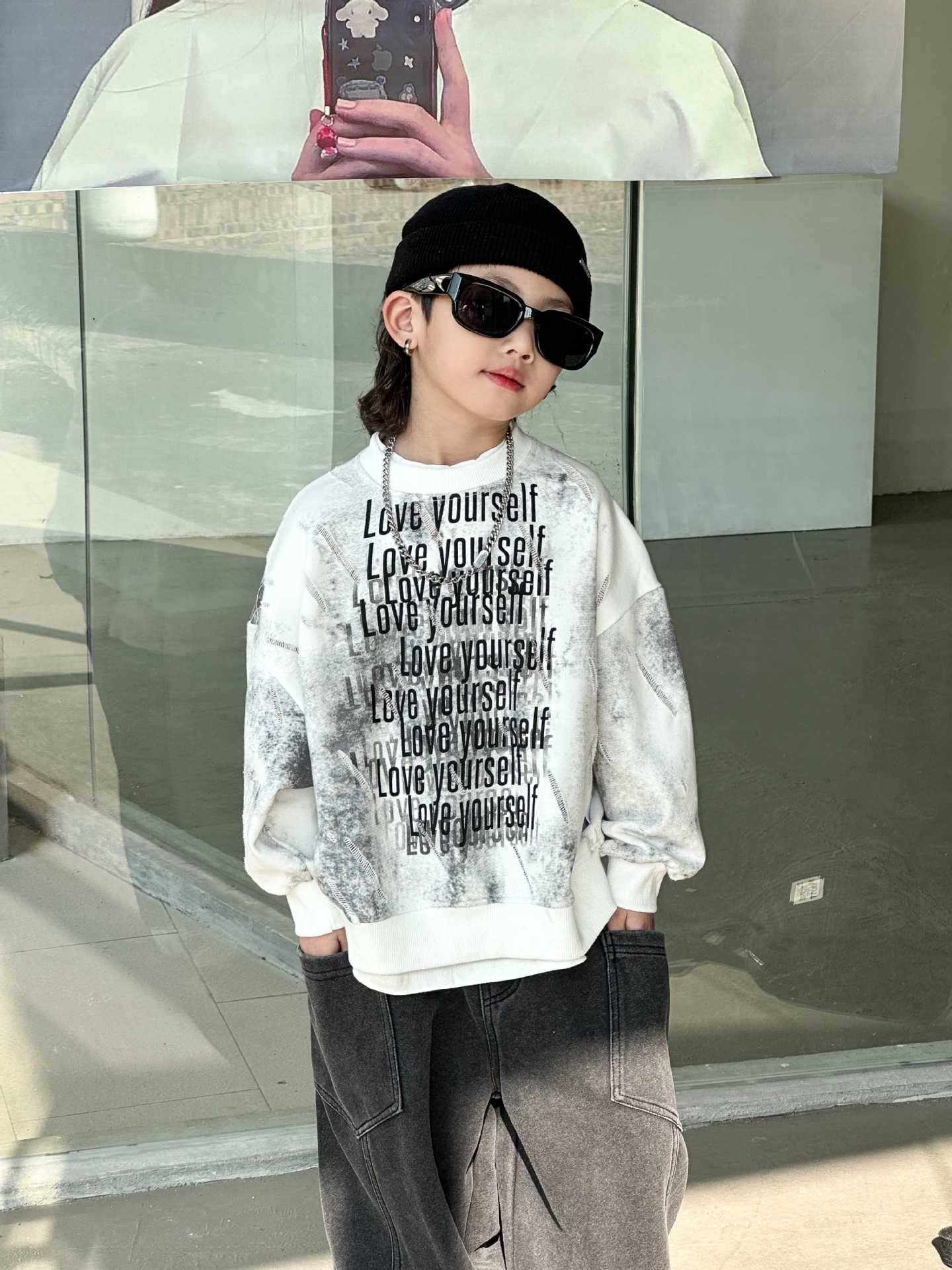 남학생과 어린이를위한 2025 년 봄 새로운 타이 염색 스웨터의 원천으로 돌아 가기 한국 패션 조커 후드 탑 트렌디 쿨스토어 가기