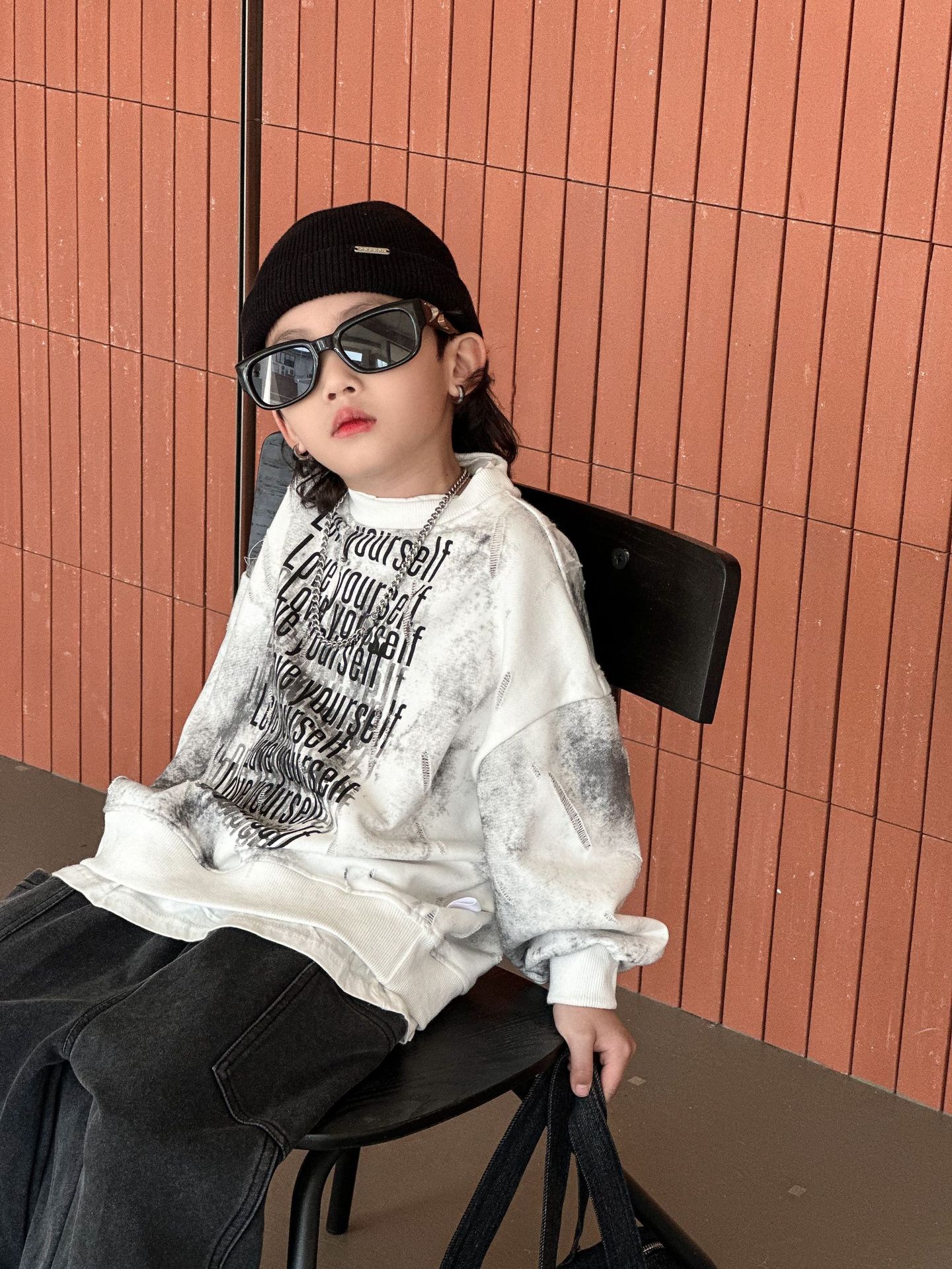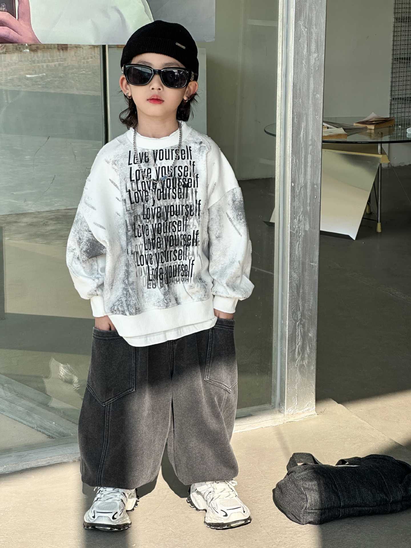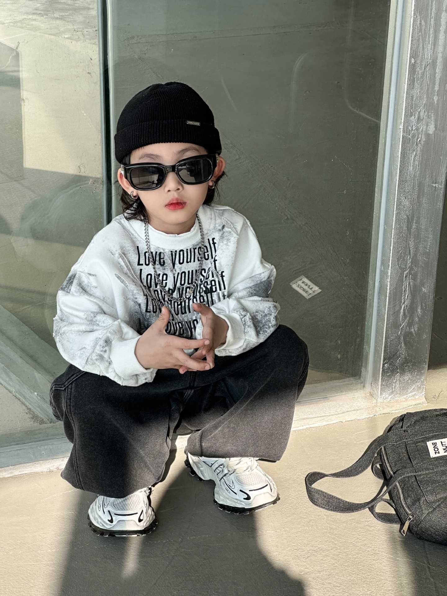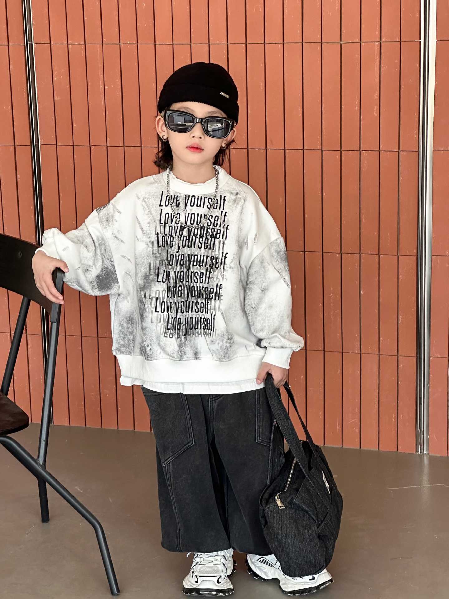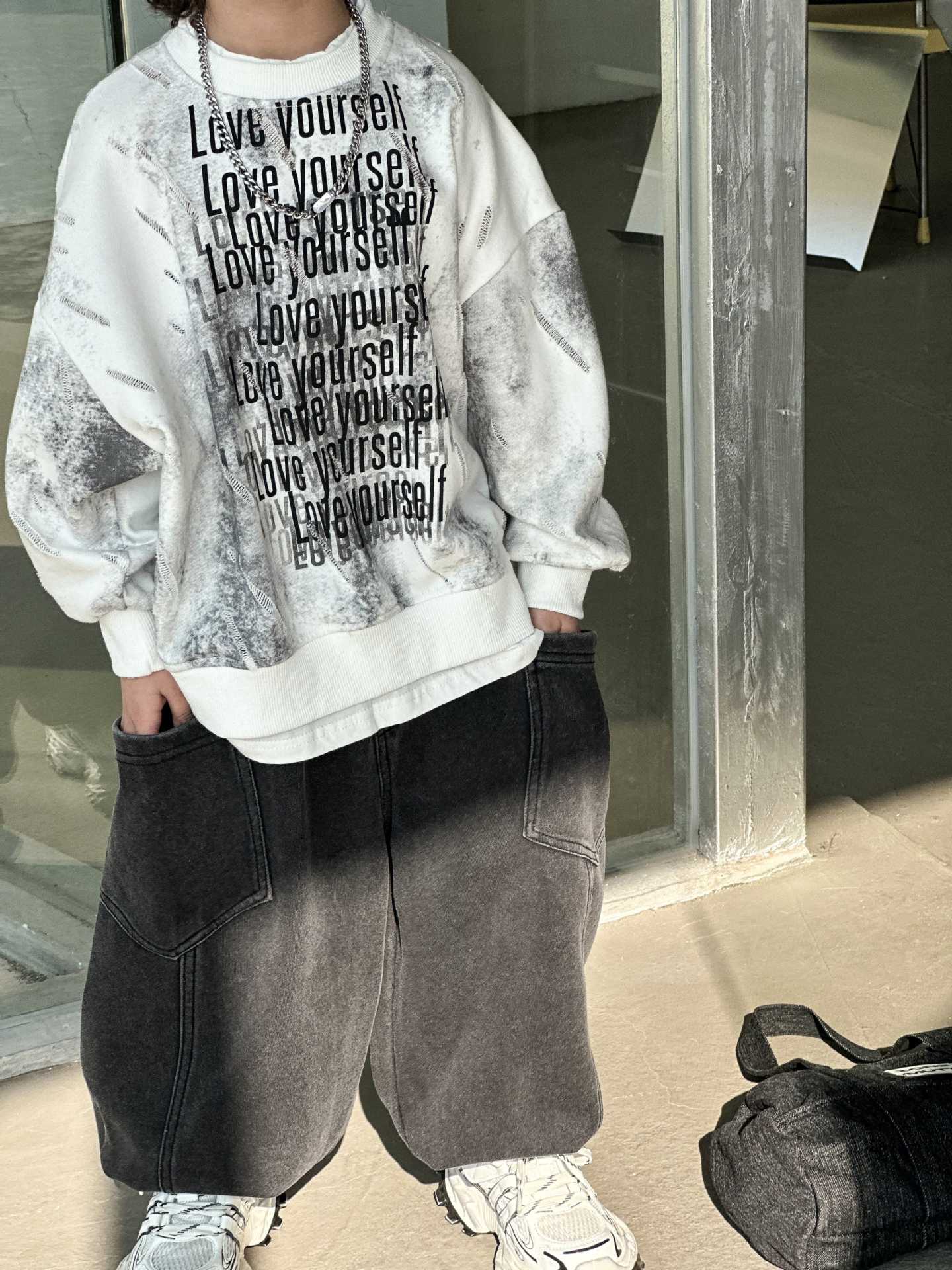 남학생과 어린이를위한 2025 년 봄 새로운 타이 염색 스웨터의 원천으로 돌아 가기 한국 패션 조커 후드 탑 트렌디 쿨스토어 가기