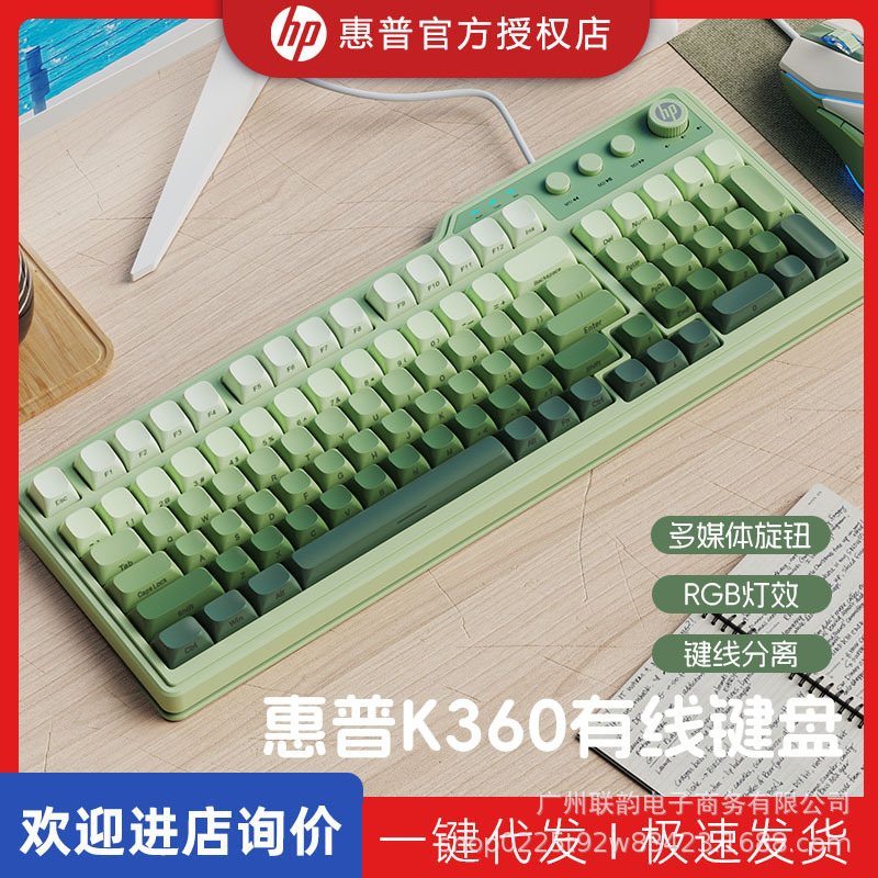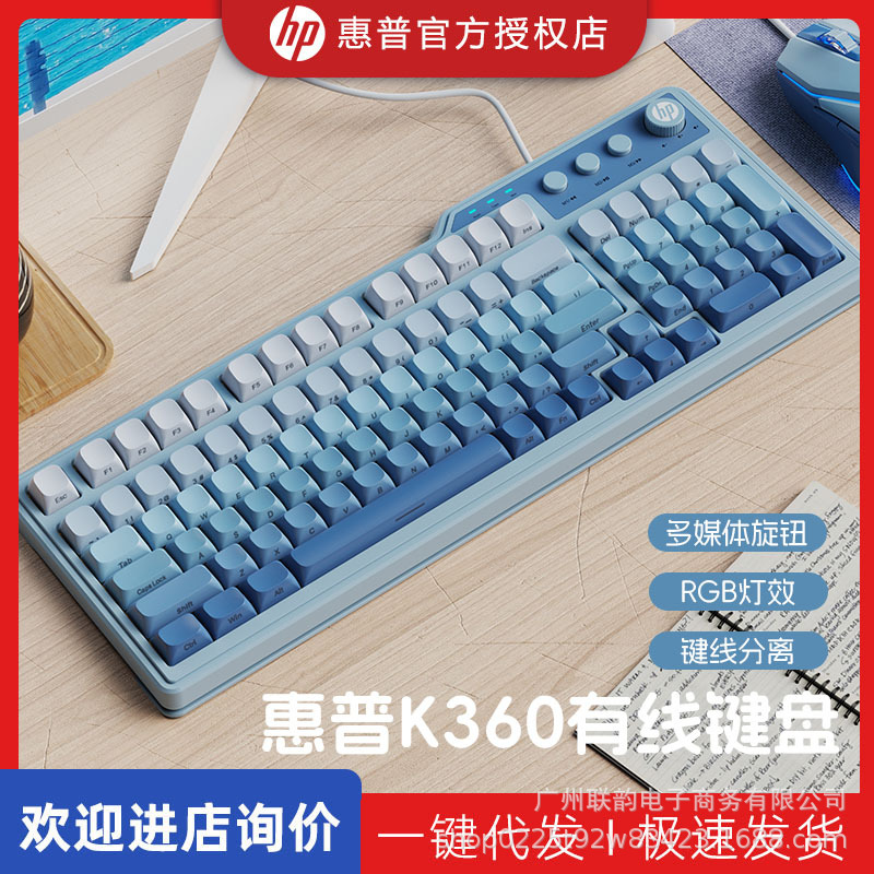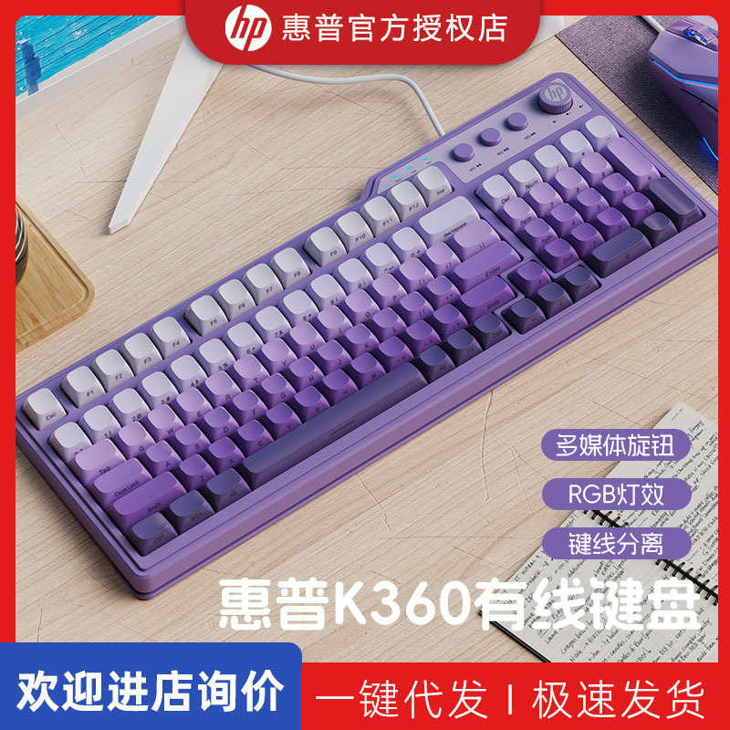 HP HP 공식 K360 기계적 느낌 키보드 그라디언트 측면 새겨진 전자 스포츠 게임 유선 데스크탑 노트북스토어 가기