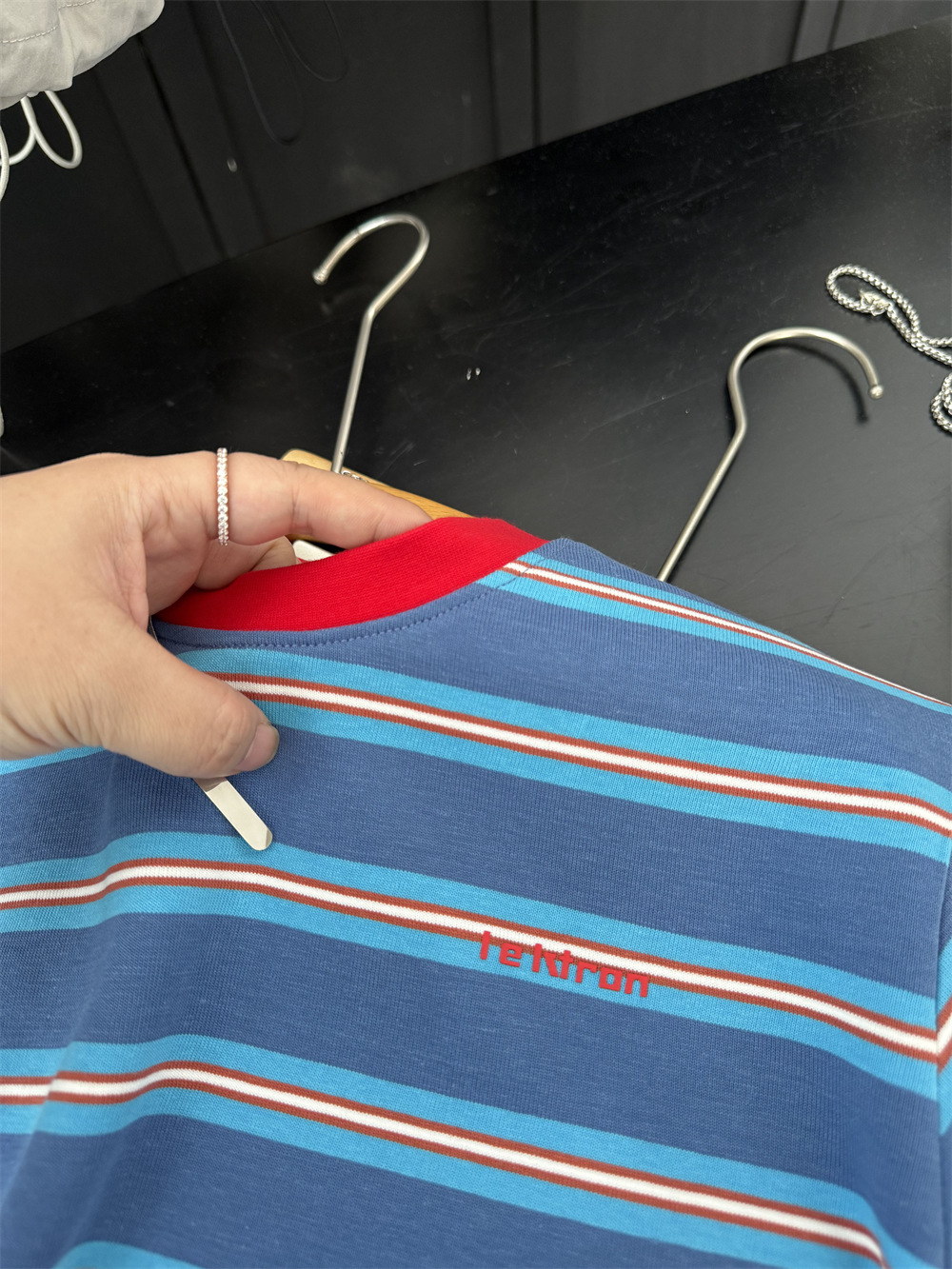 很好看的蓝色撞色红色,宽松款哦