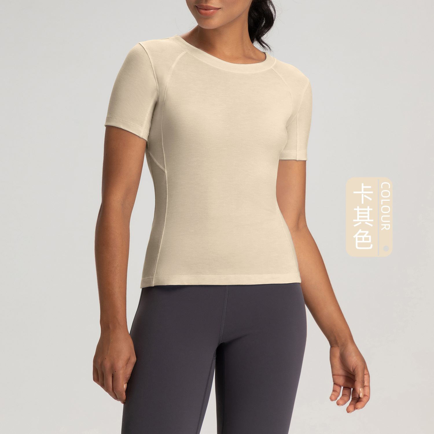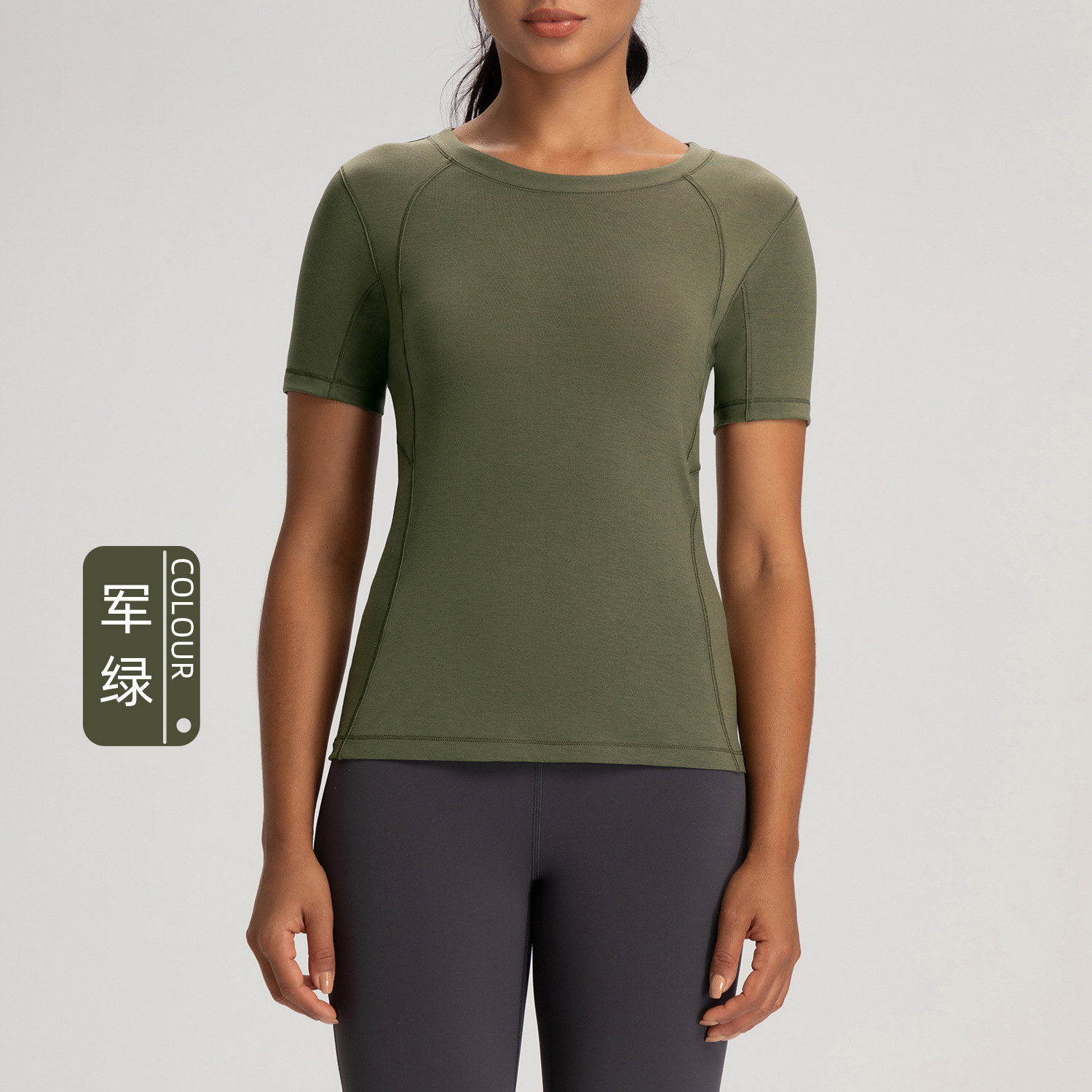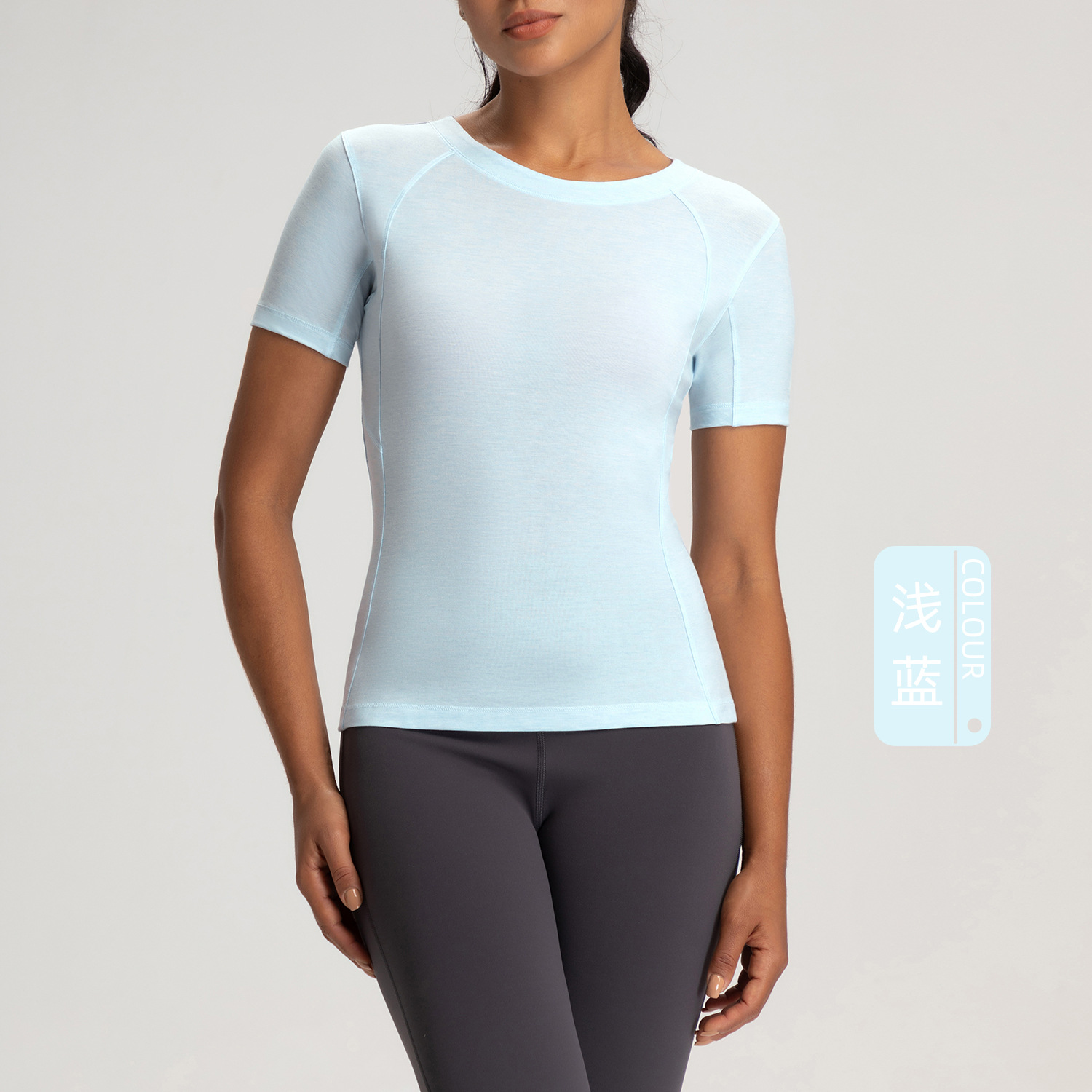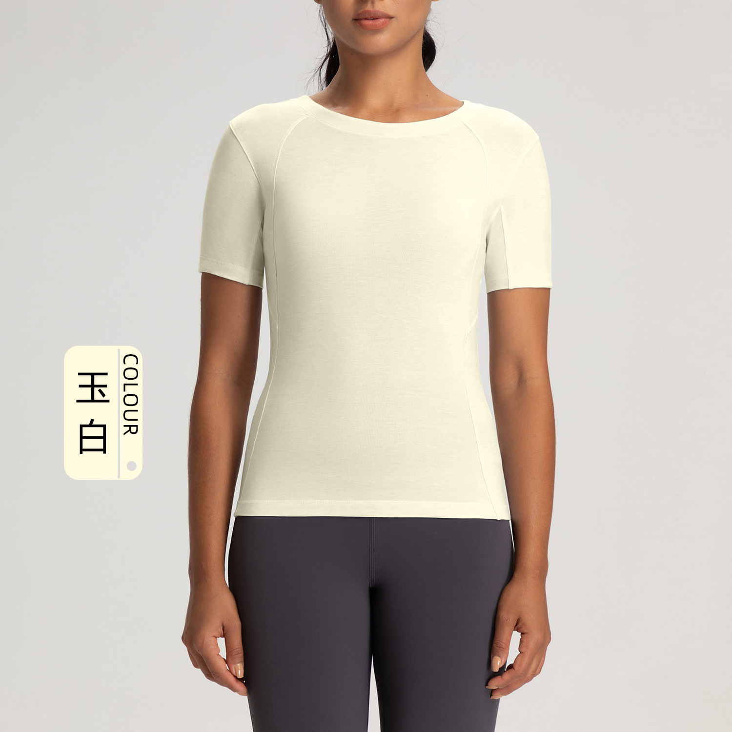 아테나 룰루 메리노 울 크루 넥 요가 세트 여성용 알몸 꽉 끼는 스포츠 러닝 반팔 탑 티셔츠