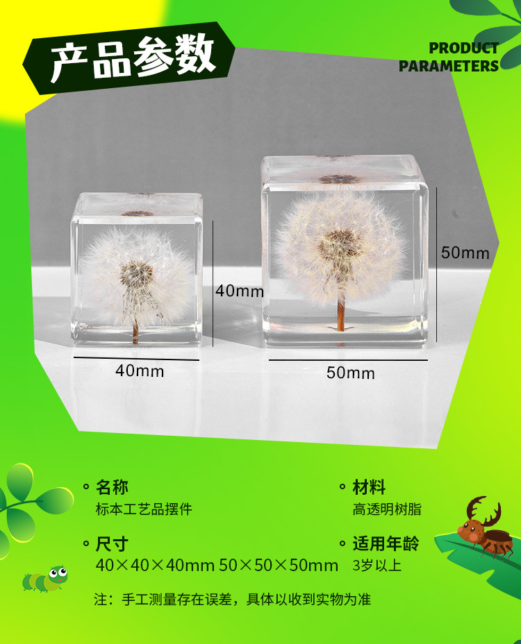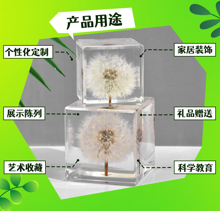 새로운 민들레 사각형 수지 크리스탈 도매 생일 선물 크리 에이 티브 공예 중추절 전시회 작은 선물