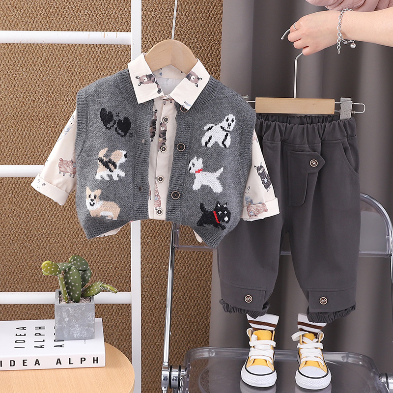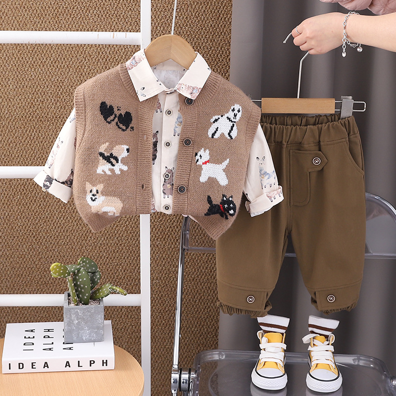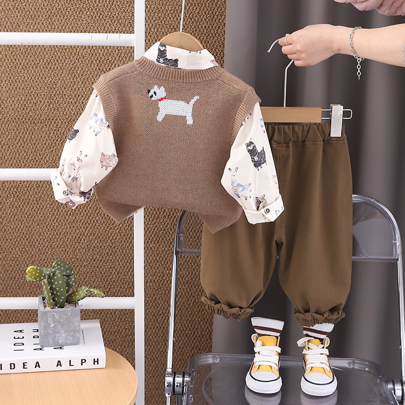 소년 봄 세트 2025 새로운 스웨터 조끼 긴팔 셔츠 캐주얼 어린이 3 피스 아기 옷 조수스토어 가기
