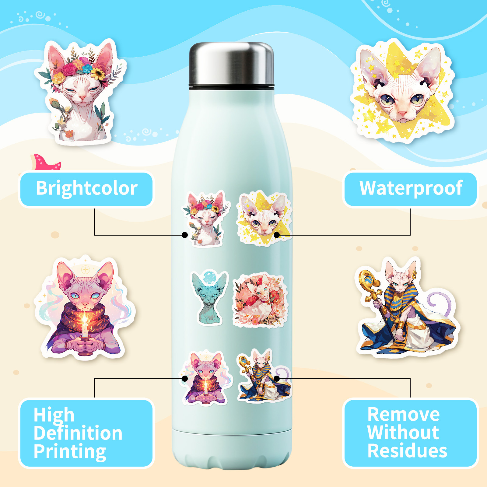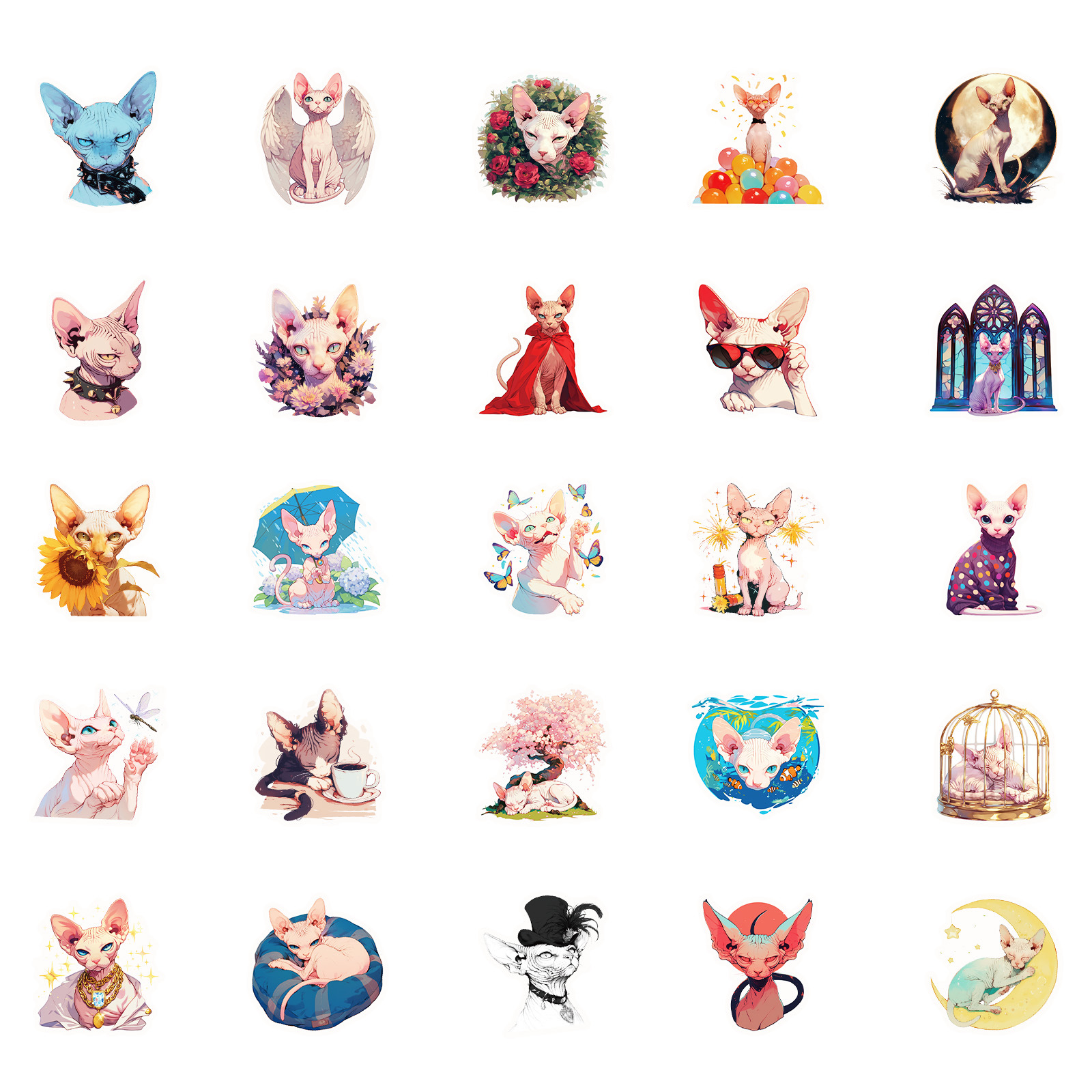 새로운 50 현실적인 고양이 일일 낙서 스티커 아마존 국경 베스트셀러 장식 스티커 재고 도매