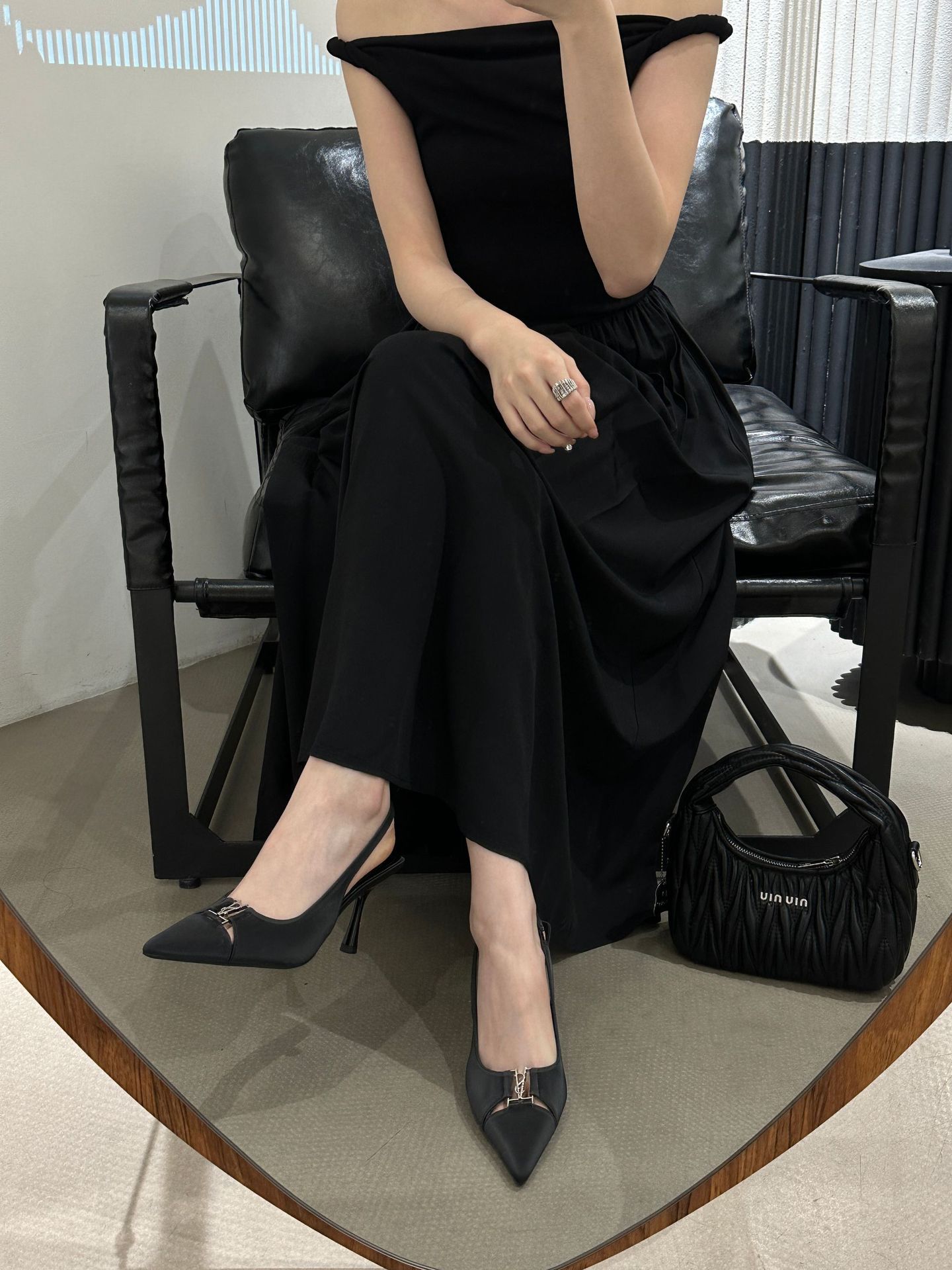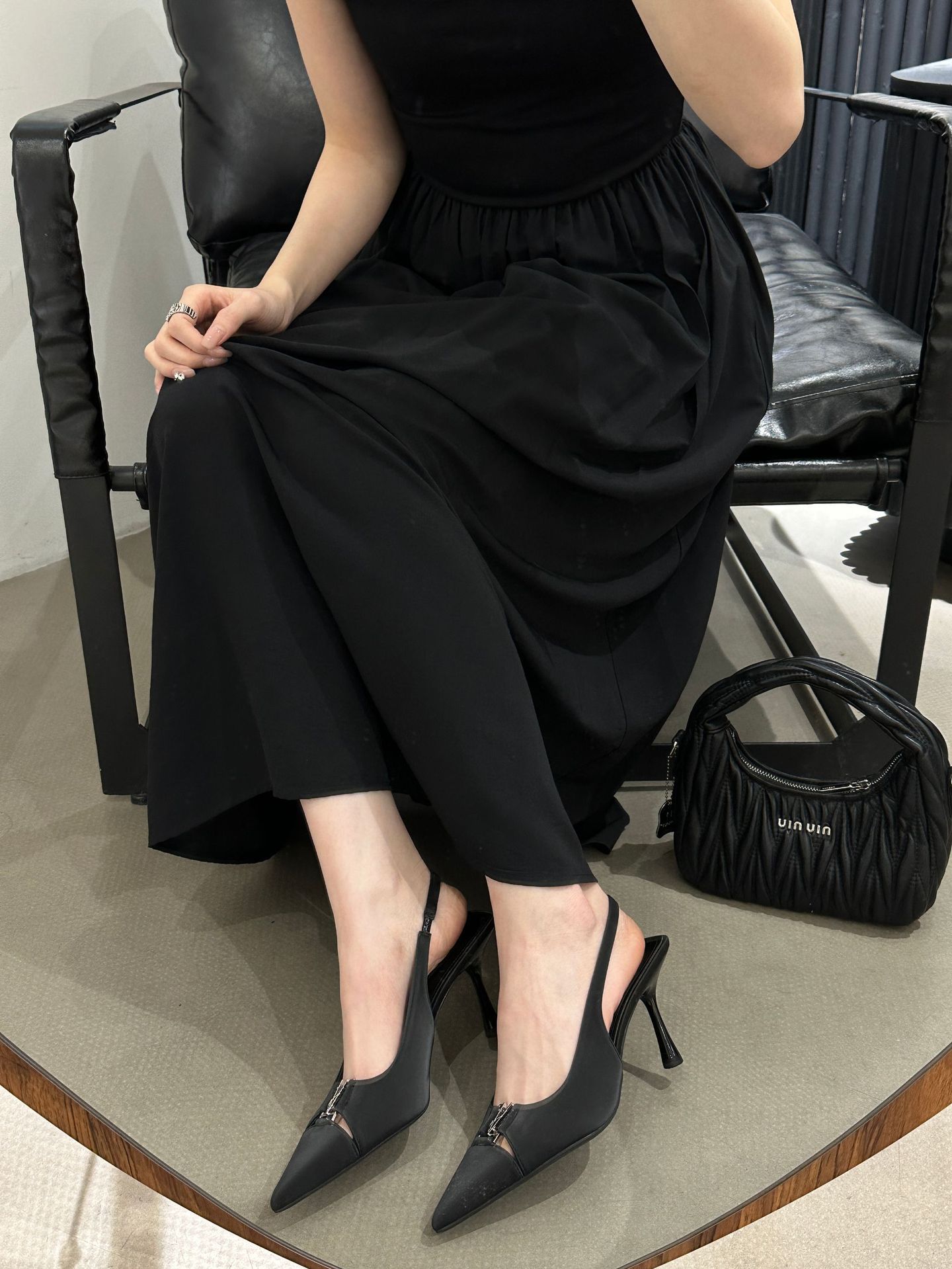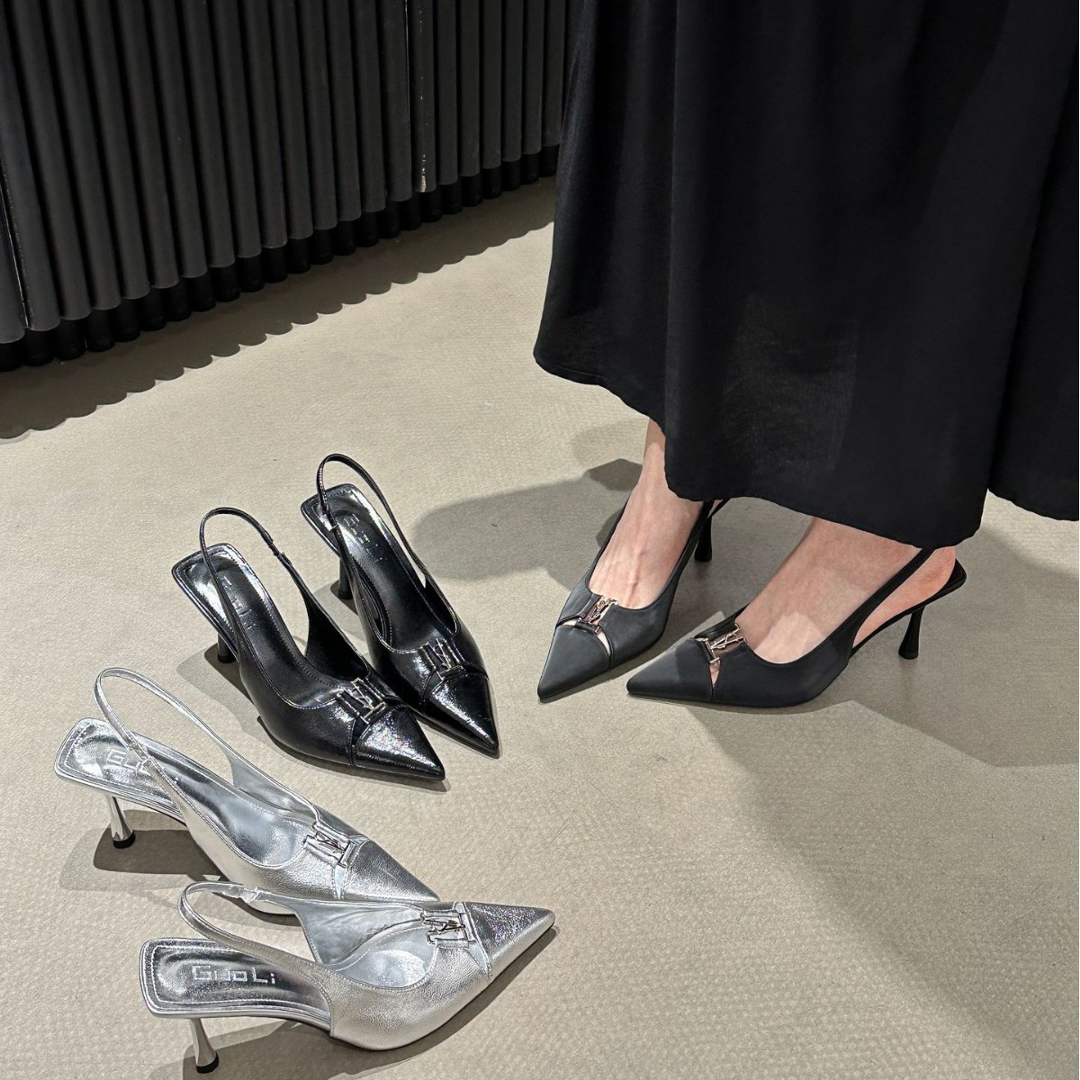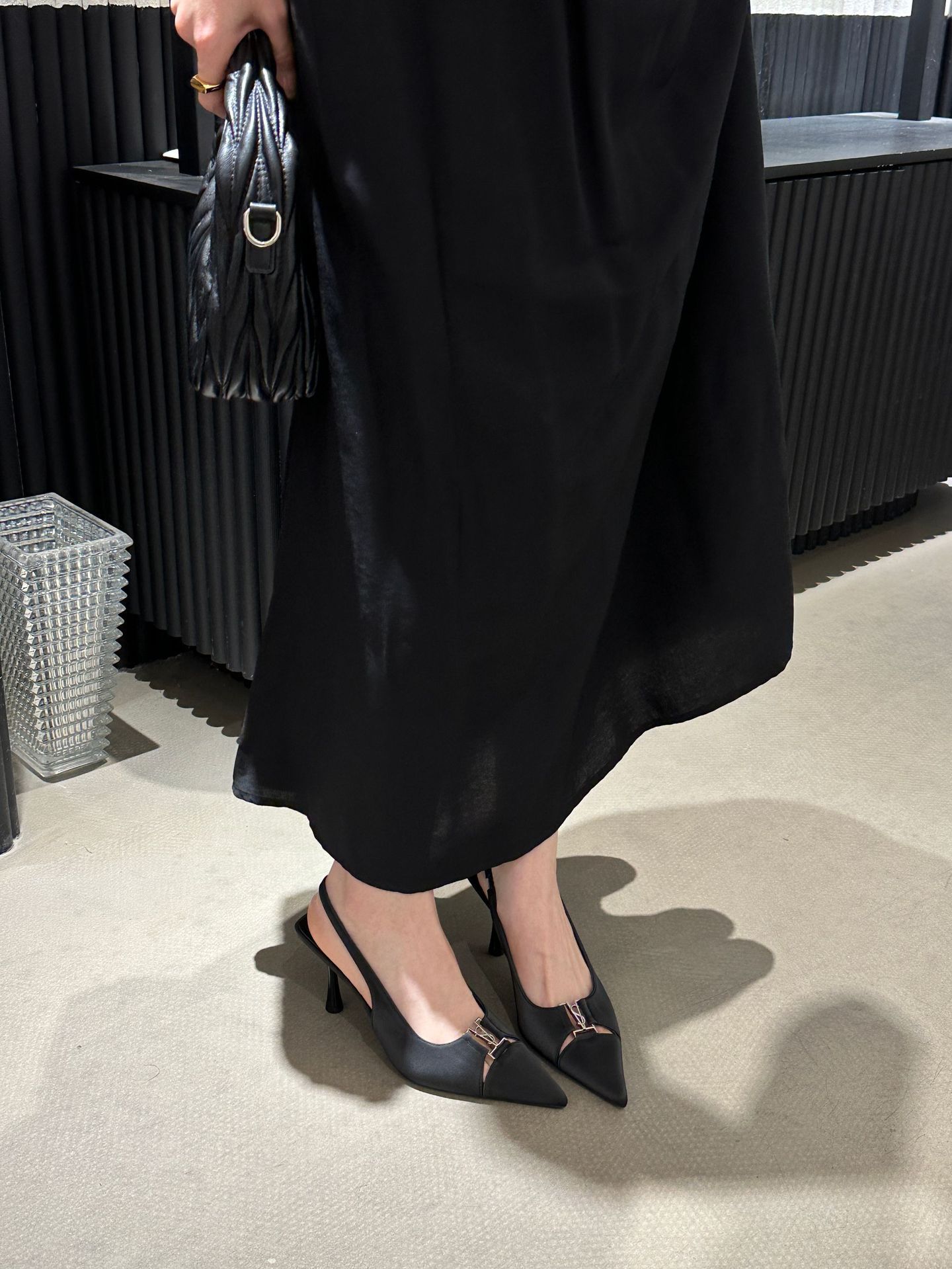 2024 년 여름 새로운 틈새 하이 엔드 블랙 Baotou 샌들 다시 빈 얕은 얇은 힐 기질 싱글 레이어 신발 여성용 신발스토어 가기