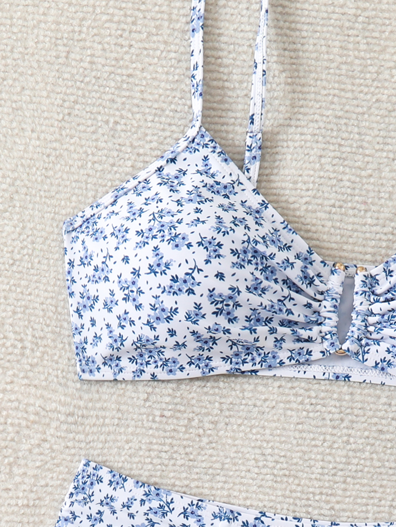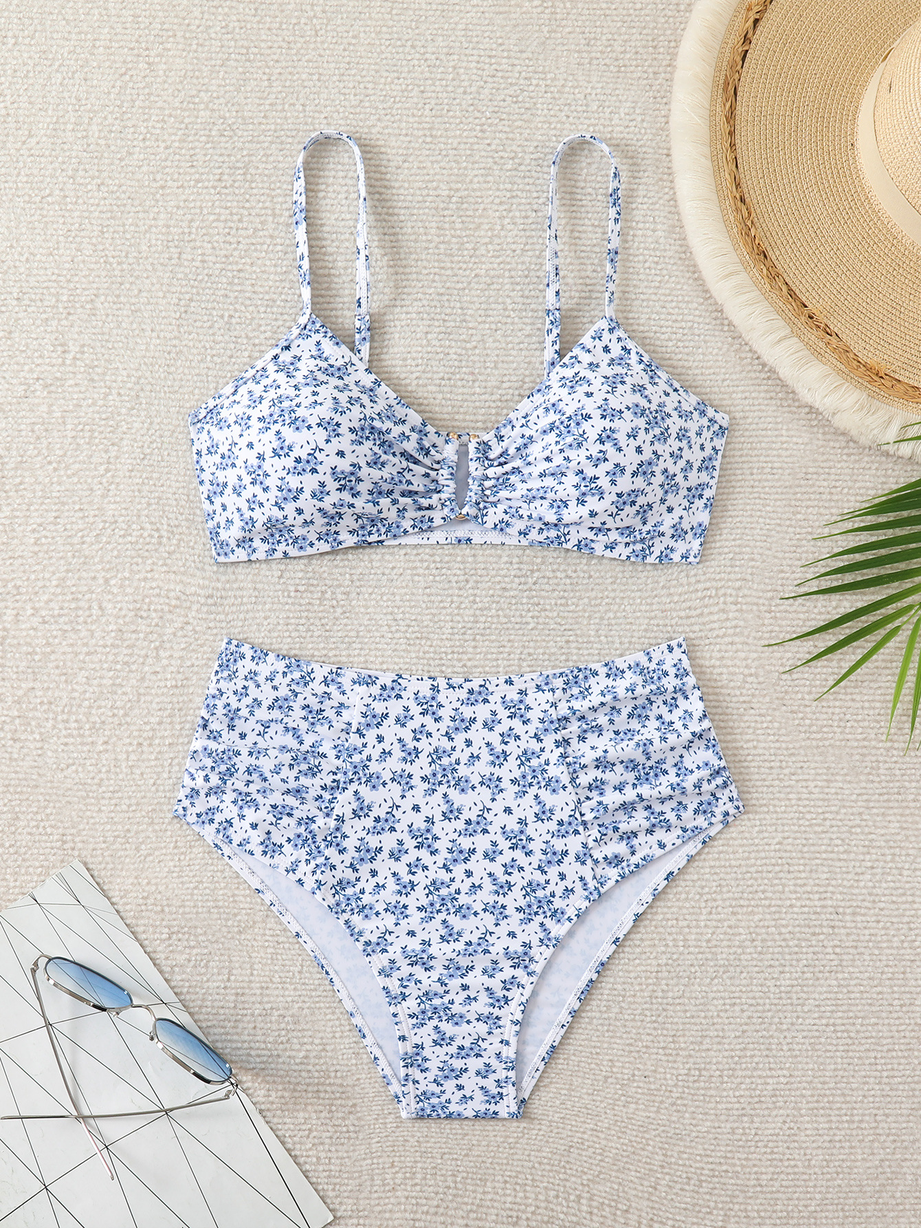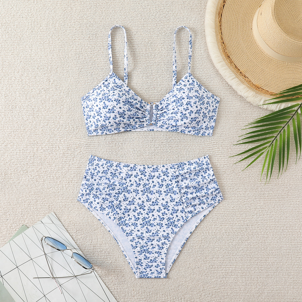 유럽과 미국의 국경 간 새로운 여성 패션 서스펜더 전신 작은 꽃 무늬 3 점 비키니 세트 도매