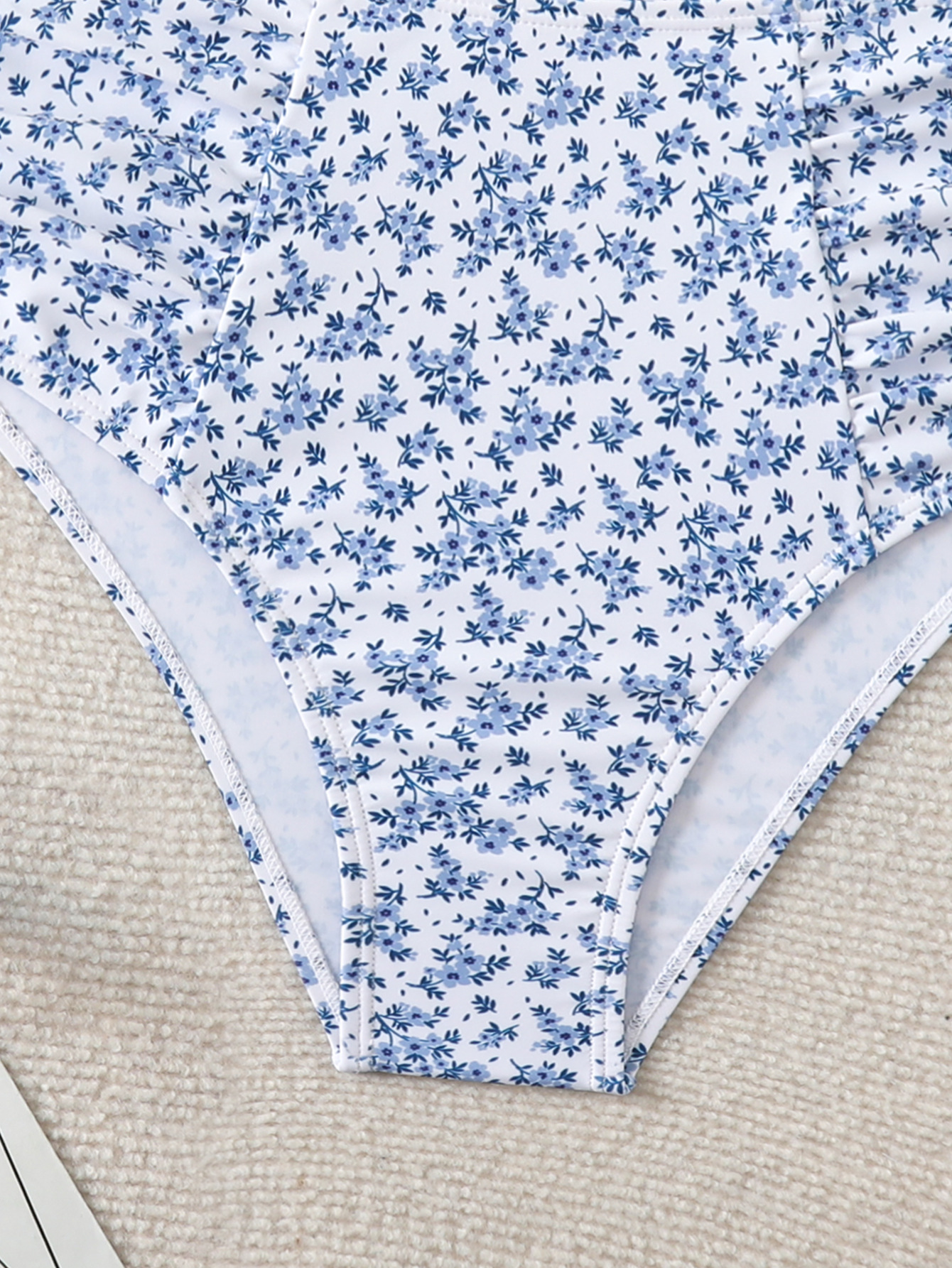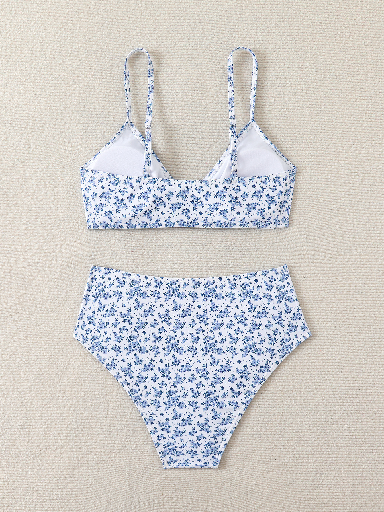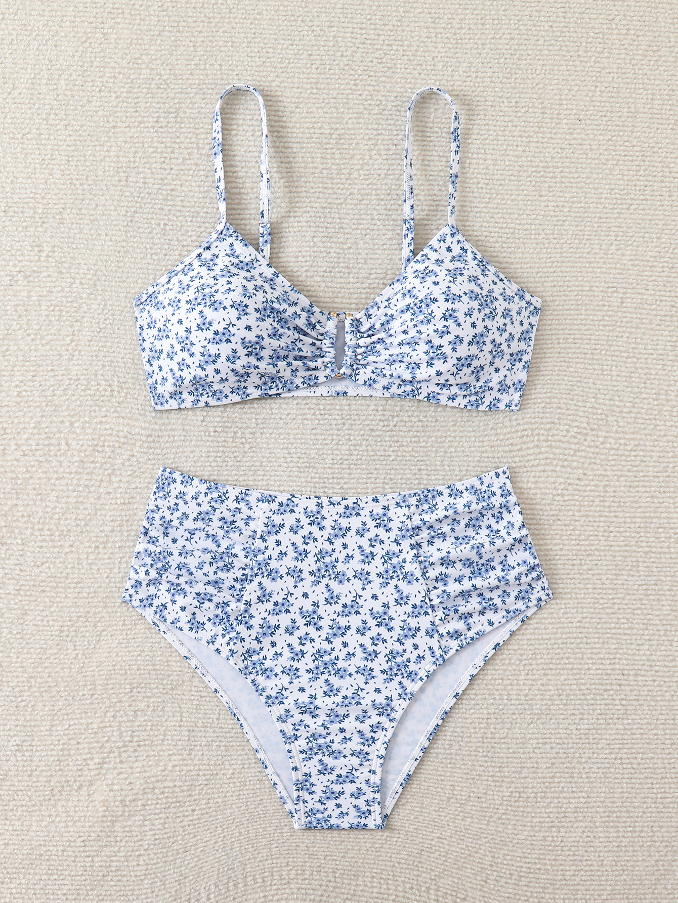 유럽과 미국의 국경 간 새로운 여성 패션 서스펜더 전신 작은 꽃 무늬 3 점 비키니 세트 도매