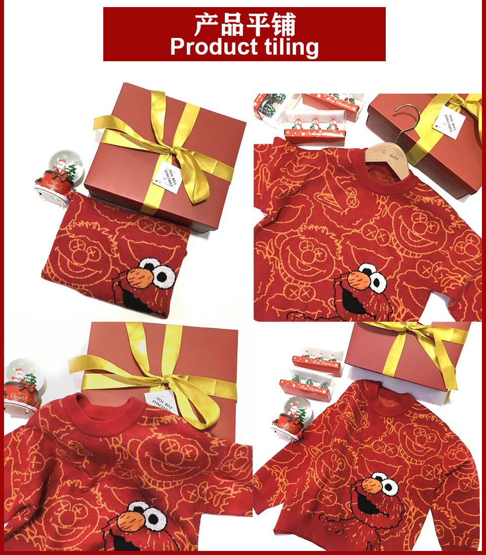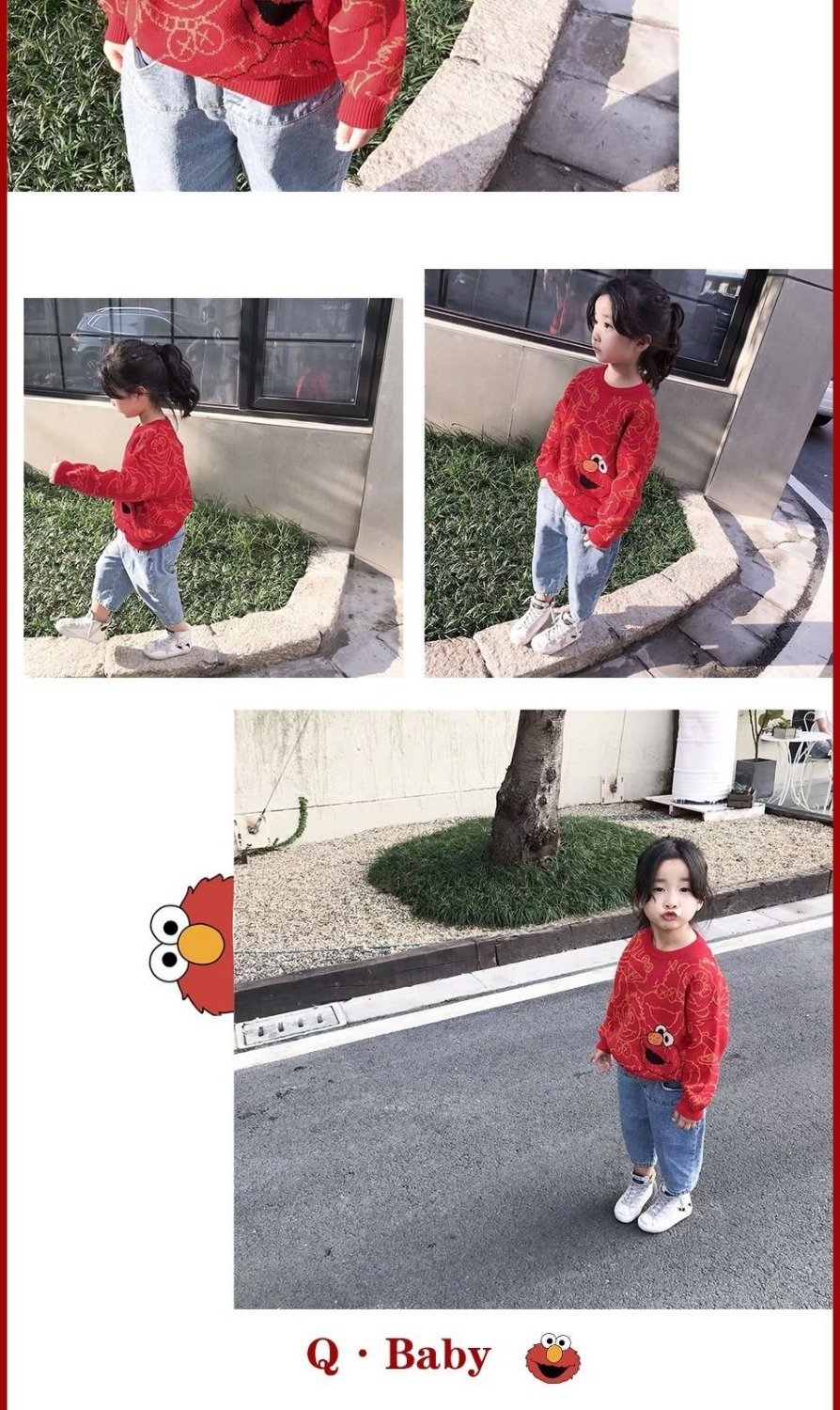 새로운 소년 소녀 니트 카드 Parin-어린이 스웨터 세서미 스트리트 아동복 가을 및 겨울 올 매치 새해 서비스 레드 풀오버스토어 가기