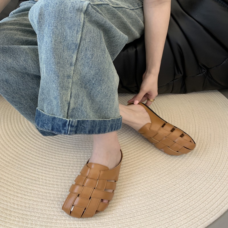 오피스 슬리퍼 여자 여름 슬립 온 2025 새로운 스타일 바오 터우 로마 하프 슬리퍼 올 매치 캐주얼 뮬러 샌들