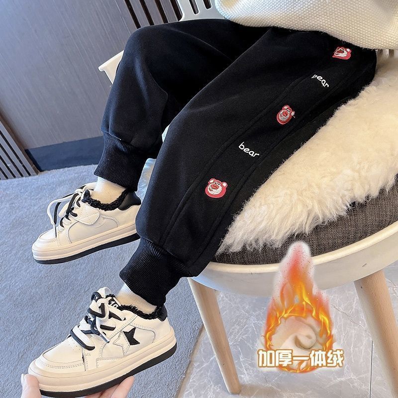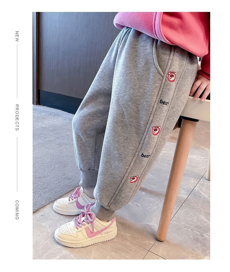 소녀 스포츠 바지 가을과 겨울 새로운 어린이 기모 두꺼운 외부 바지 대형, 중형 및 소형 어린이 느슨한 원피스 벨벳 바지스토어 가기