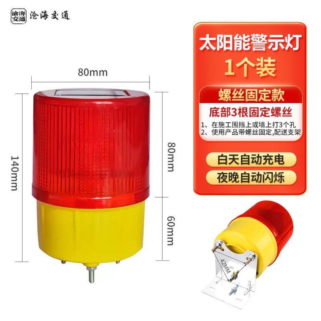 밤 길가 건설 장벽 교통 신호 빛 도로 번쩍이는 빛에 태양 에너지 안전 경고 플래시 라이트