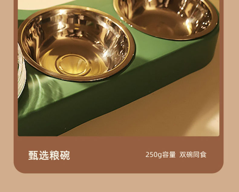 跨境新款 不锈钢猫碗狗碗宠物碗增高护颈双碗猫水粮碗两用狗食盆