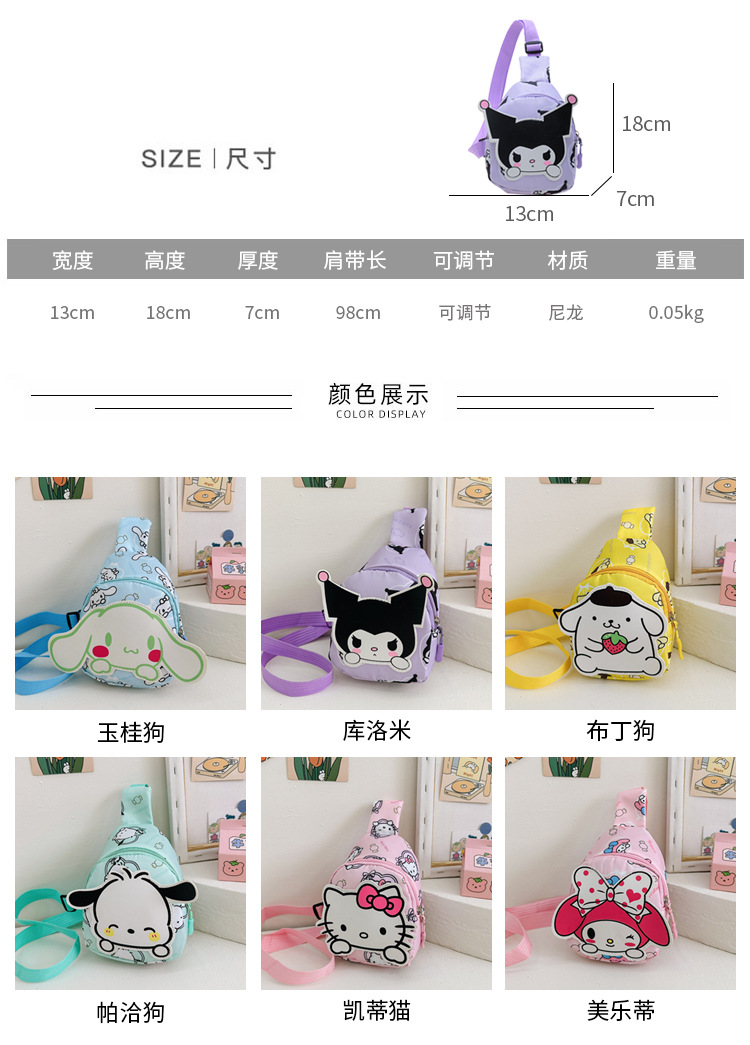 2024 새로운 가을 어린이 가방 만화 패턴 Sanrio 어깨 크로스 바디 가슴 가방 옥스포드 천 아기 액세서리 가방