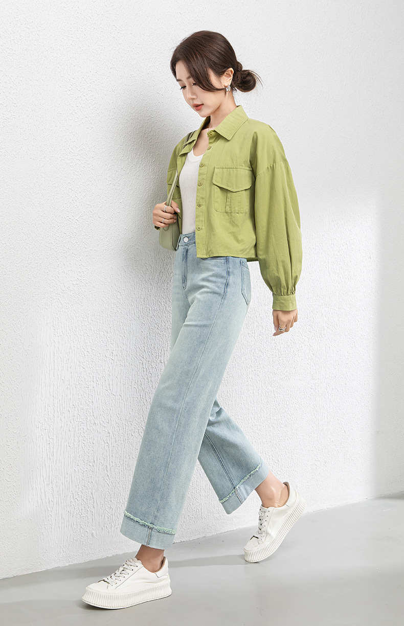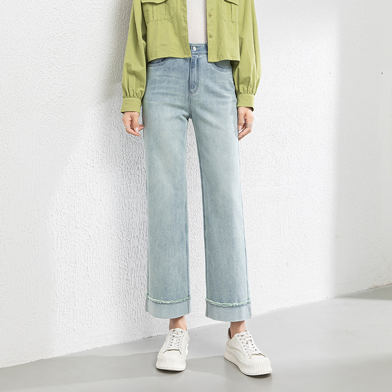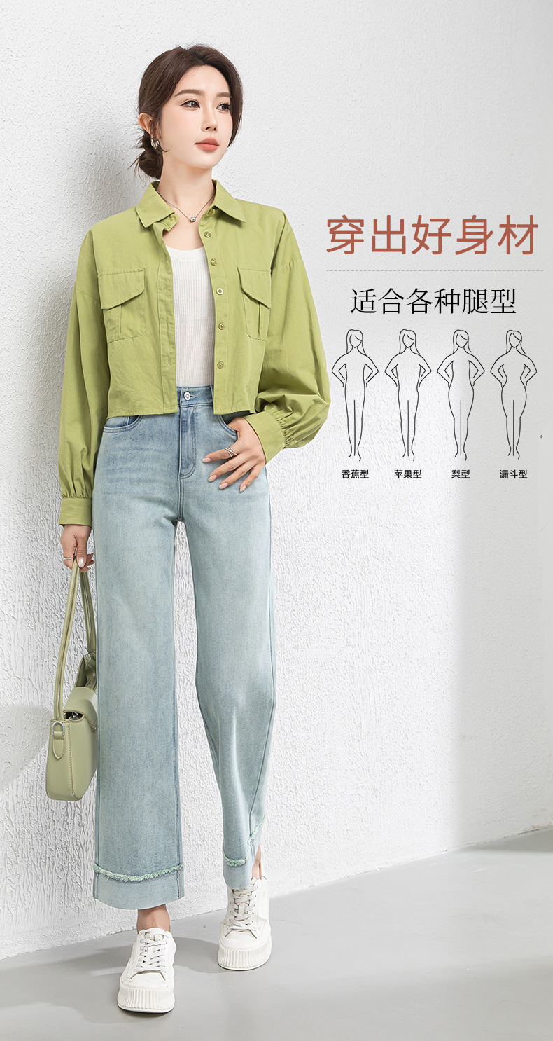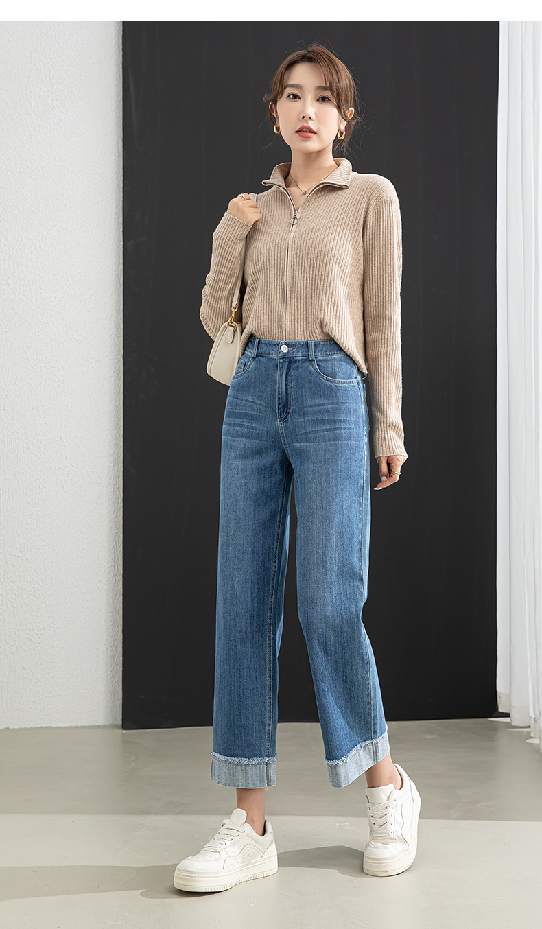 2025 년 봄 새로운 느슨한 청바지 여성 한국식 나들이 발 루즈 발목 길이 바지 스트레이트 다리 바지 9108