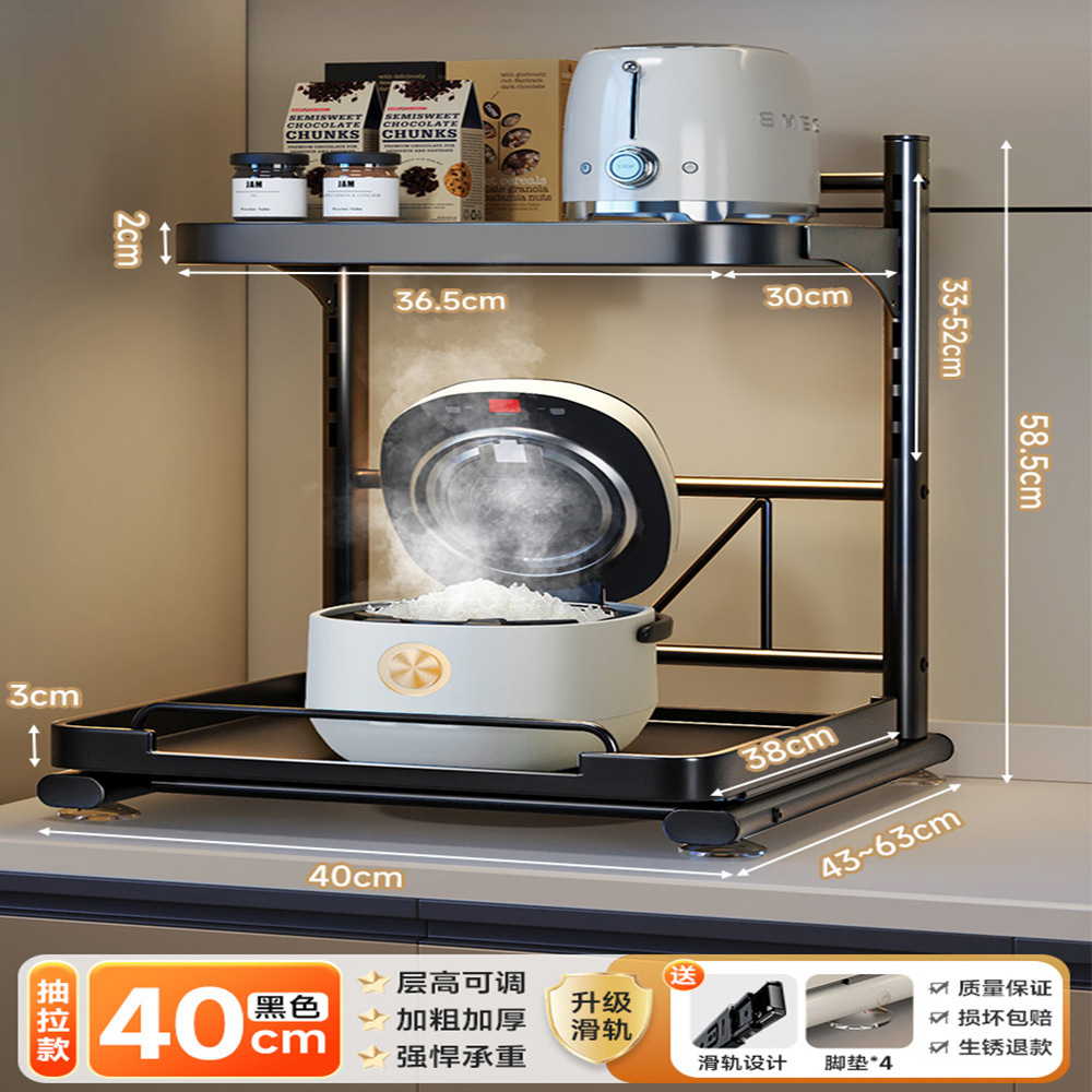• [슬라이드 레일 풀아웃 모델] 블랙 40cm (4단 높이 조절 가능)