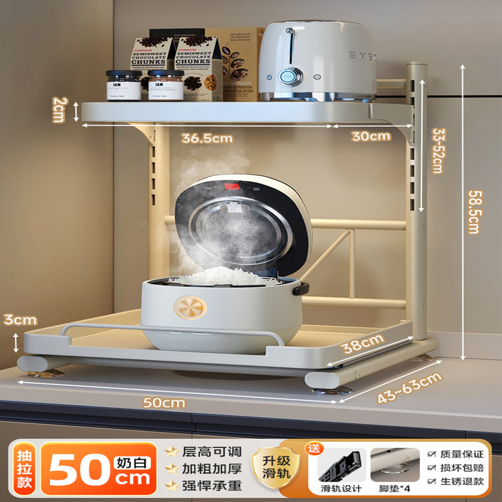 • [슬라이드 레일 풀아웃 모델] 밀크 화이트 50cm (4단 높이 조절 가능)
