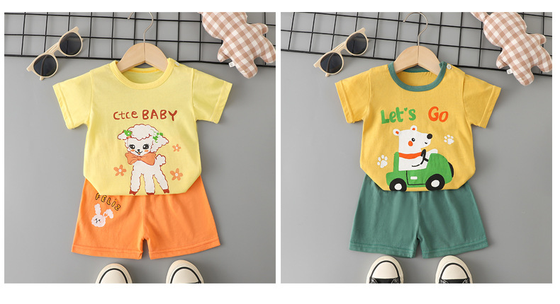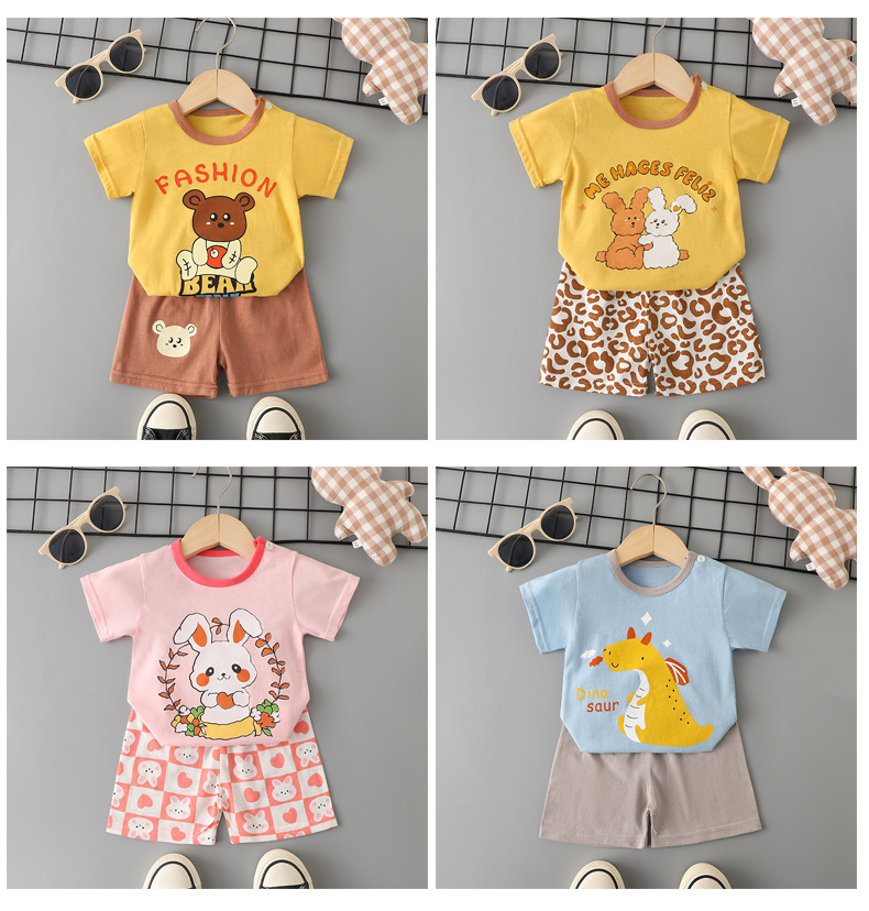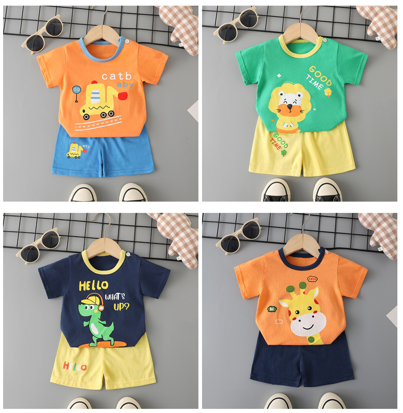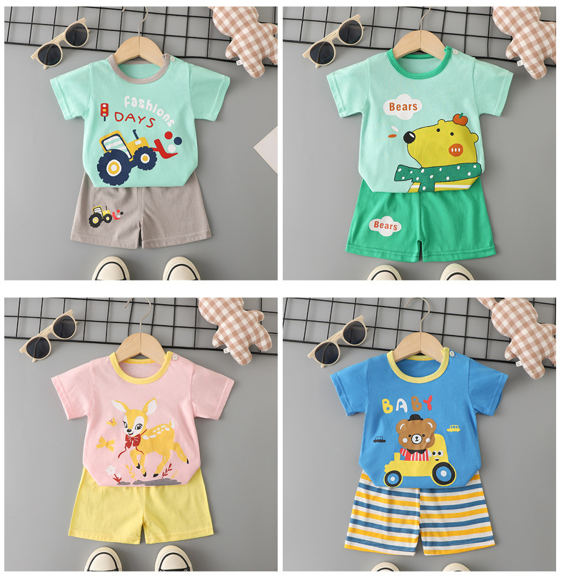 어린이 반팔 세트 여름 면화 아기 소년 옷 새 여아 얇은 티셔츠 여름 옷 아기 어린이 의류스토어 가기