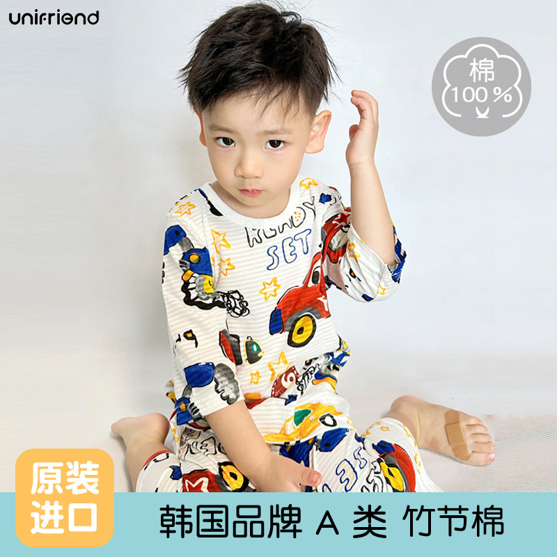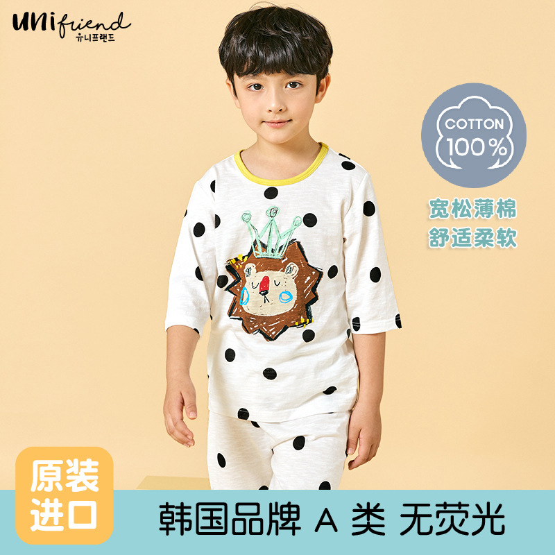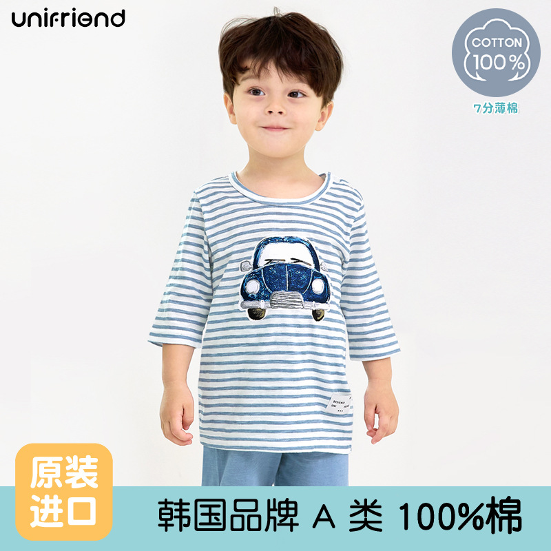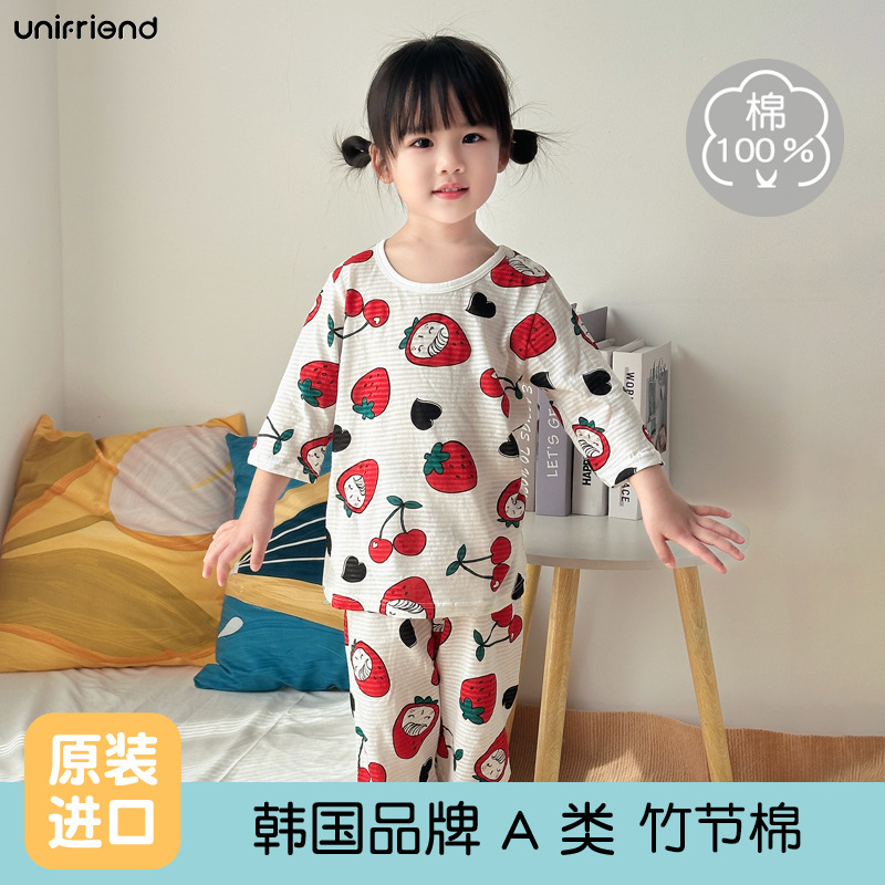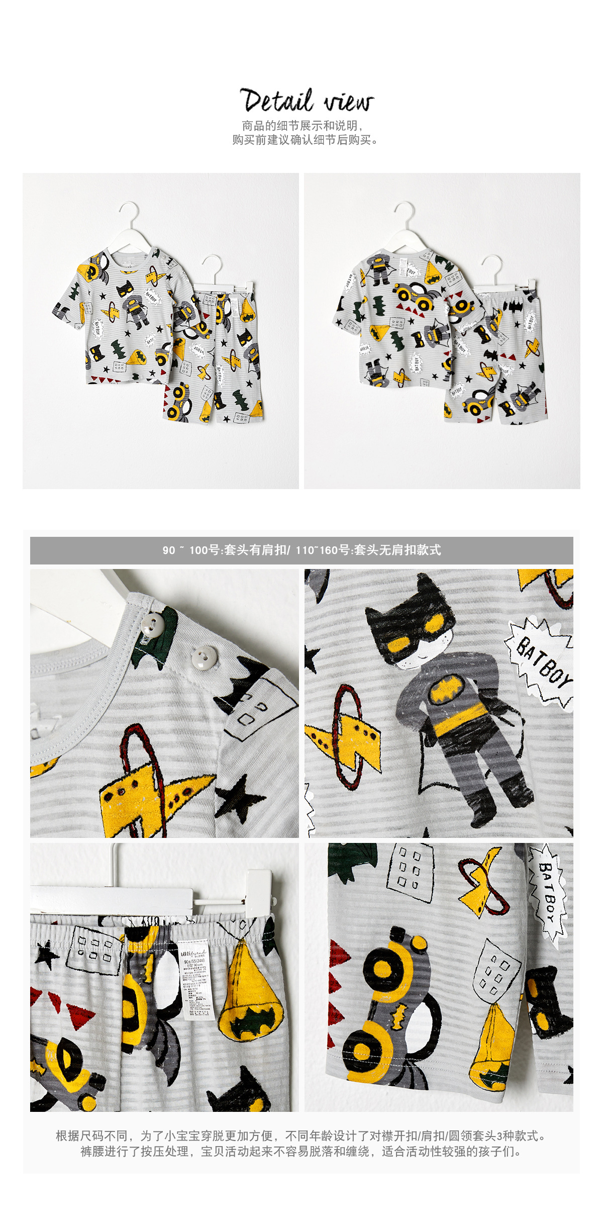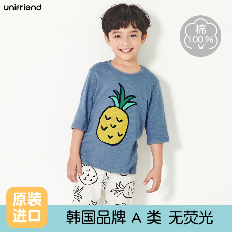 새로운 여름 어린이 가정 의류 7 소매 에어컨 의류 순수 면화 세트 남녀 보물 사이버 축하 폭발스토어 가기