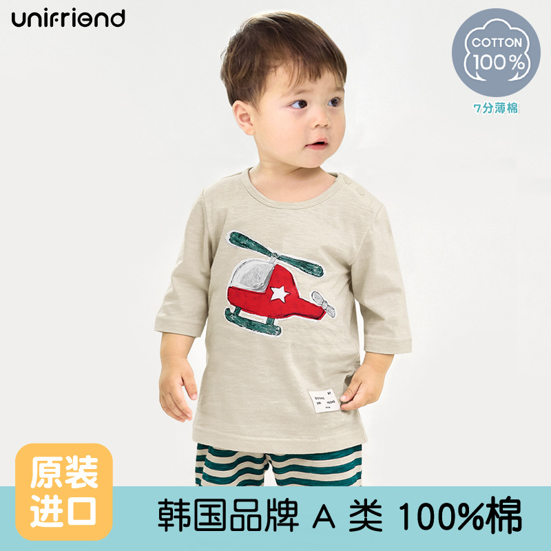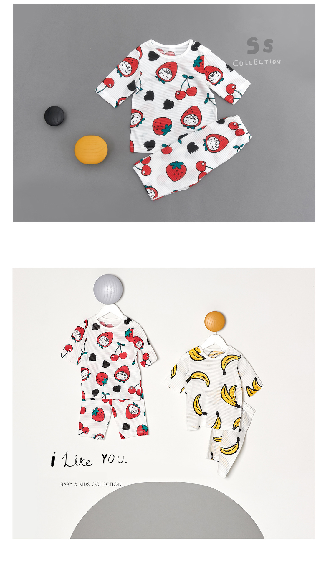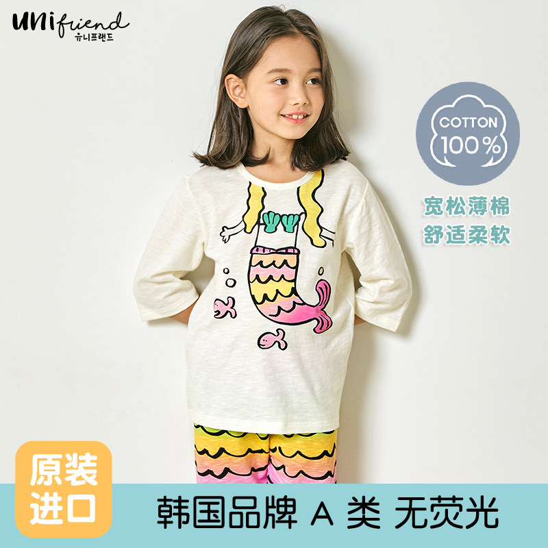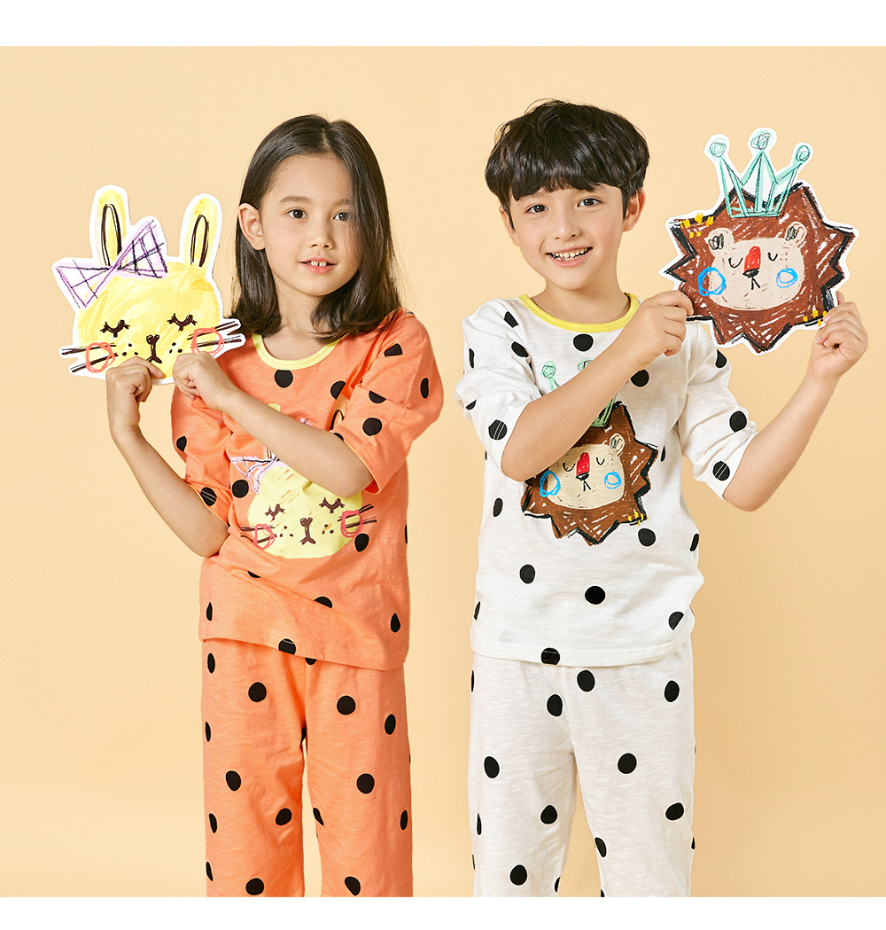 새로운 여름 어린이 가정 의류 7 소매 에어컨 의류 순수 면화 세트 남녀 보물 사이버 축하 폭발스토어 가기