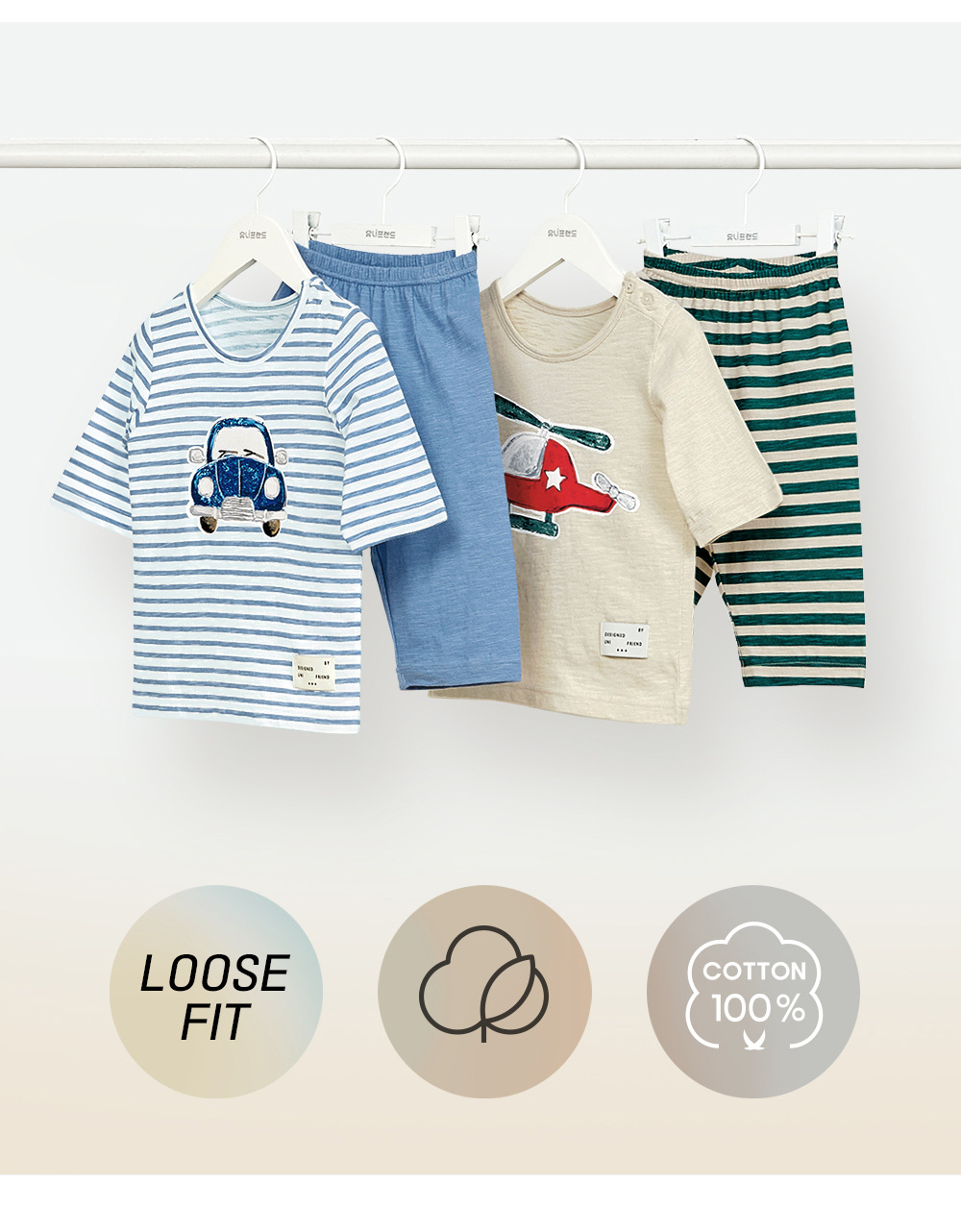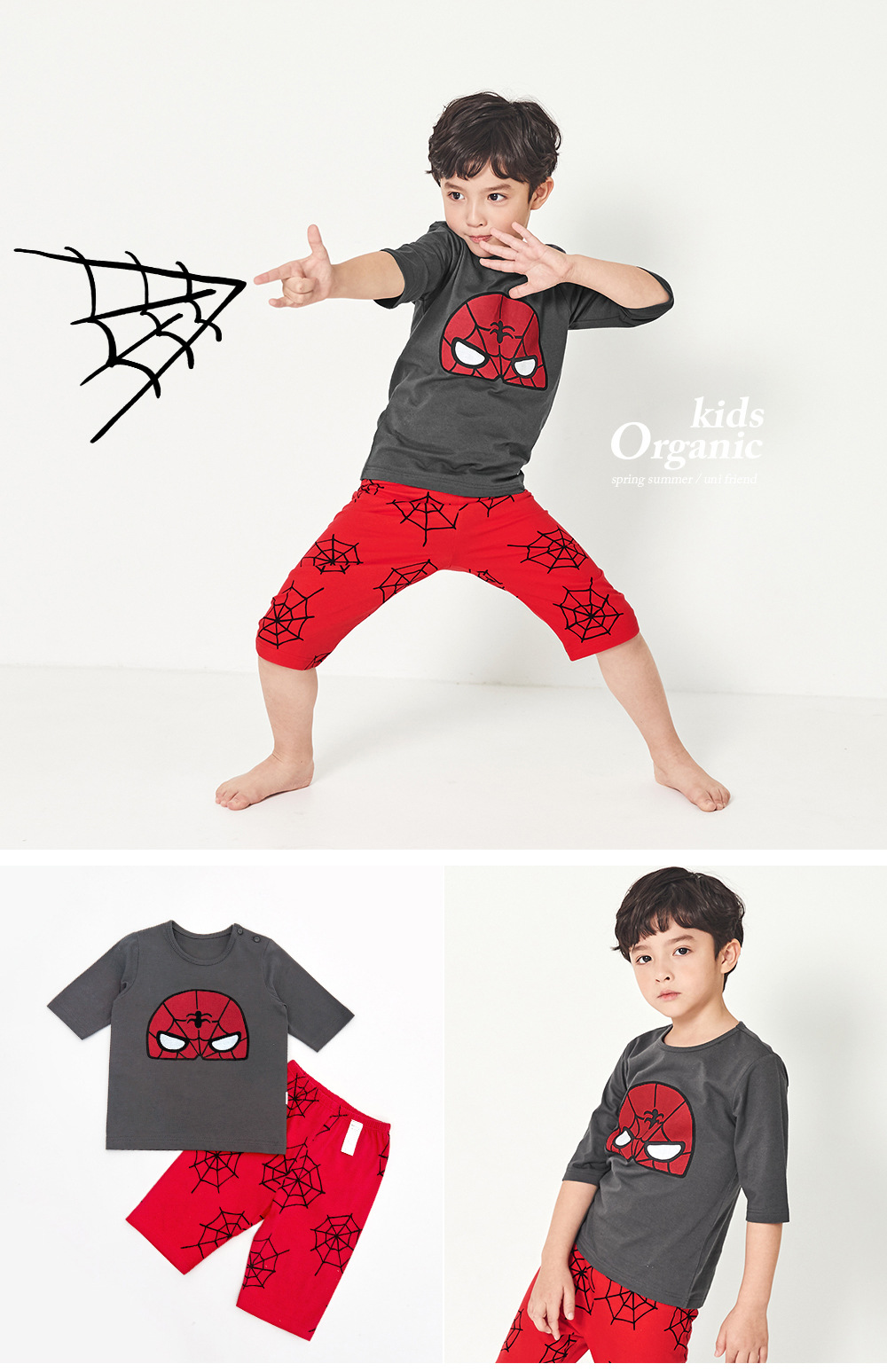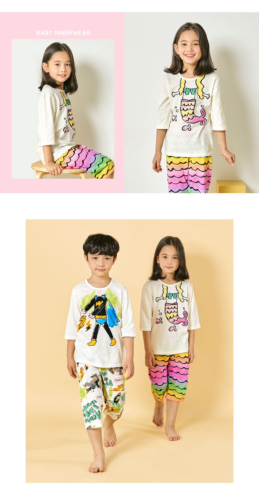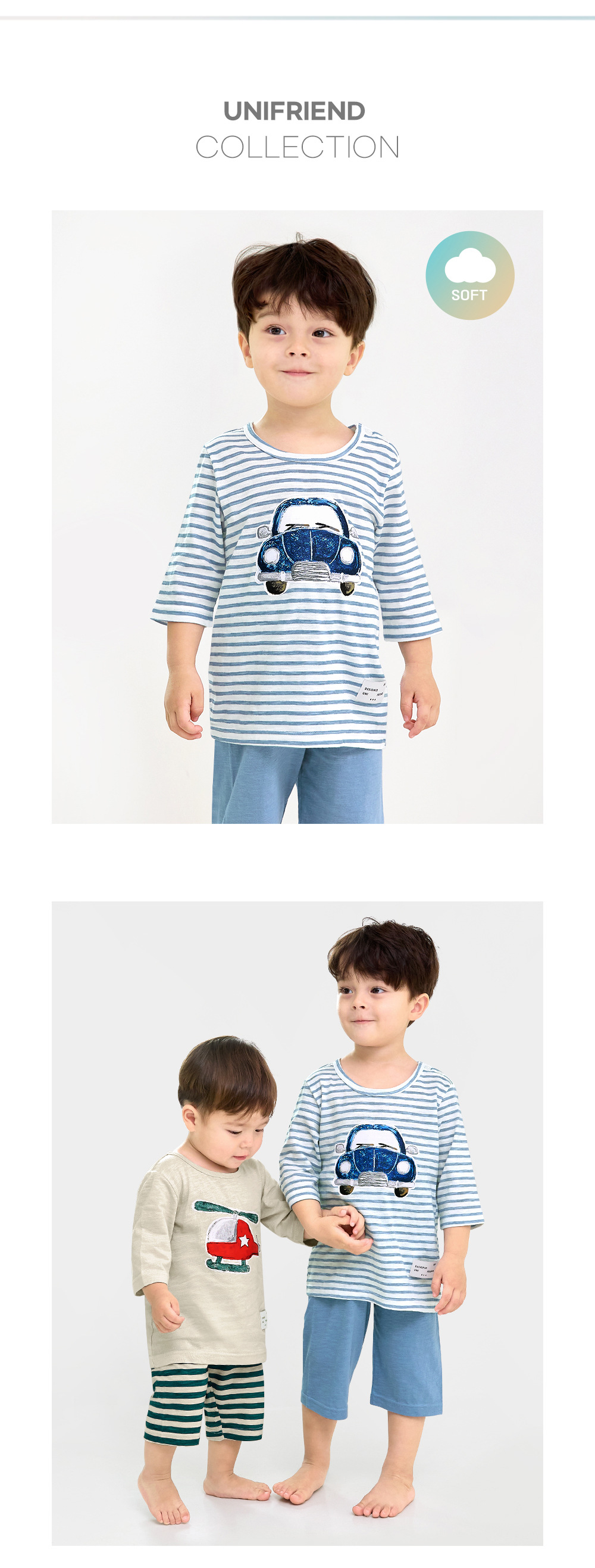새로운 여름 어린이 가정 의류 7 소매 에어컨 의류 순수 면화 세트 남녀 보물 사이버 축하 폭발스토어 가기