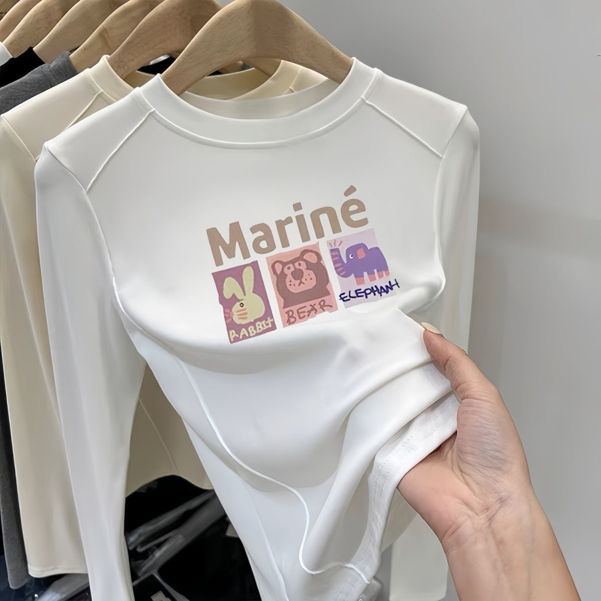 여아 라운드넥 셔츠, 가을 겨울 신상품, 중대형 아동용 만화 이너웨어, 패셔너블한 티셔츠, 따뜻한 벨벳 상의, 다용도스토어 가기
