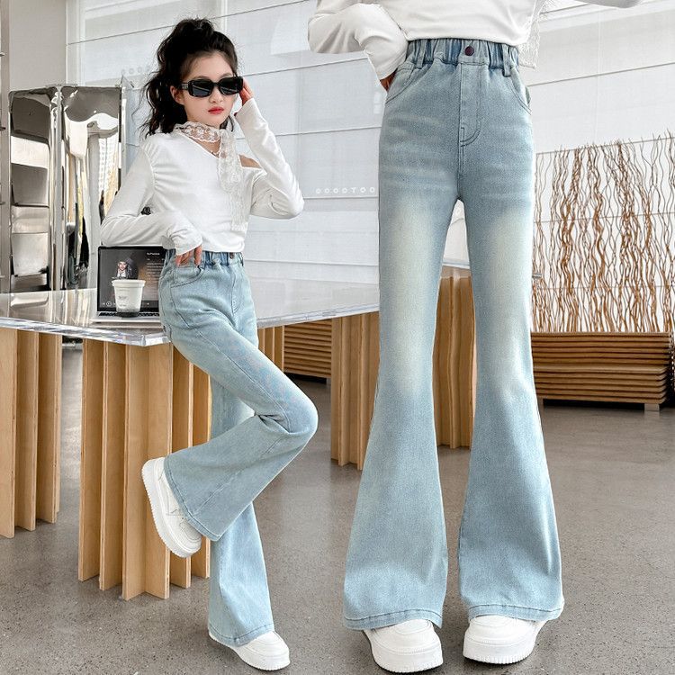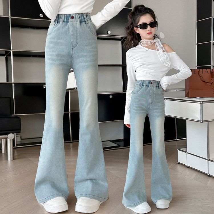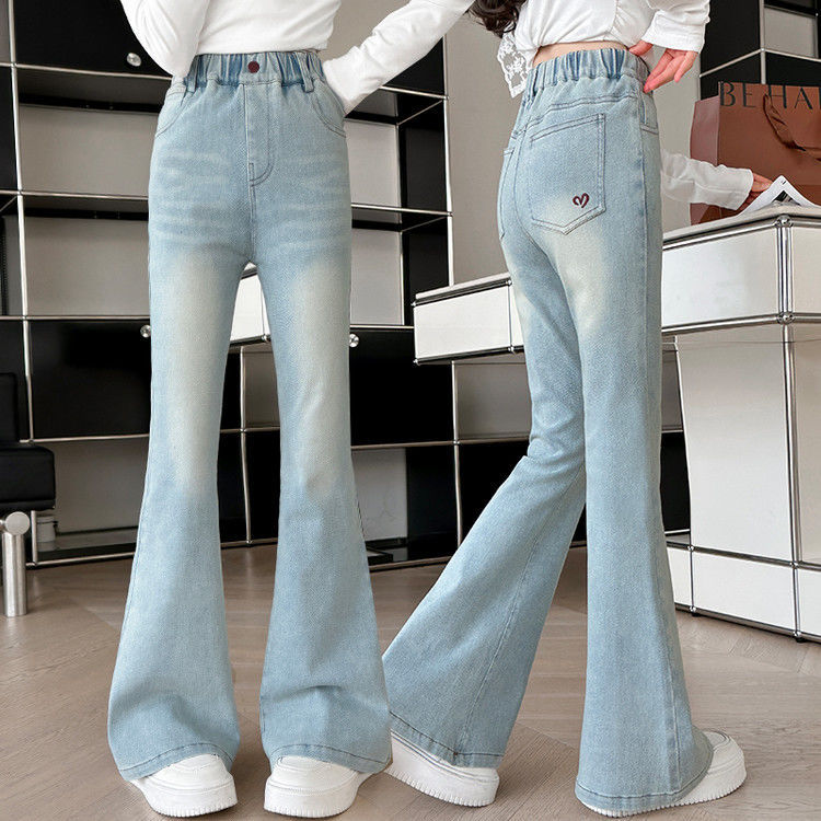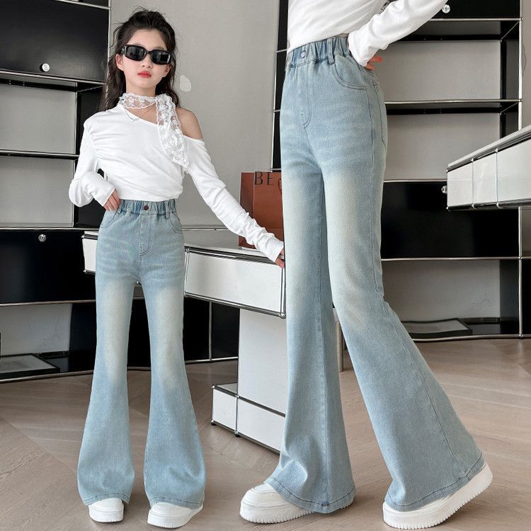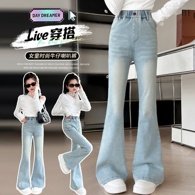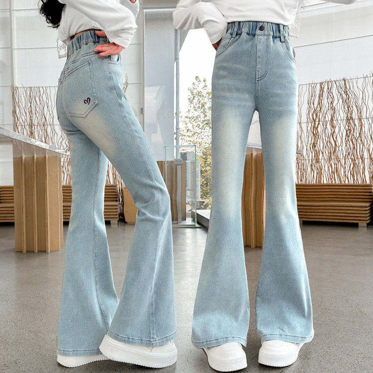 소녀 꽃 바지 봄과 가을 서양 스타일 2025 새로운 봄 중대형 어린이 올 매치 청바지 봄 어린이 바지