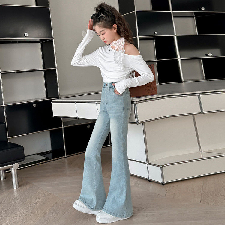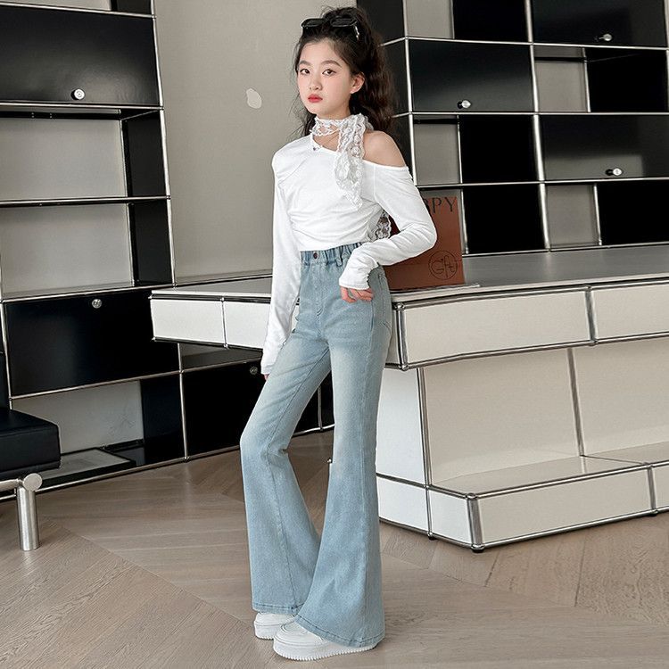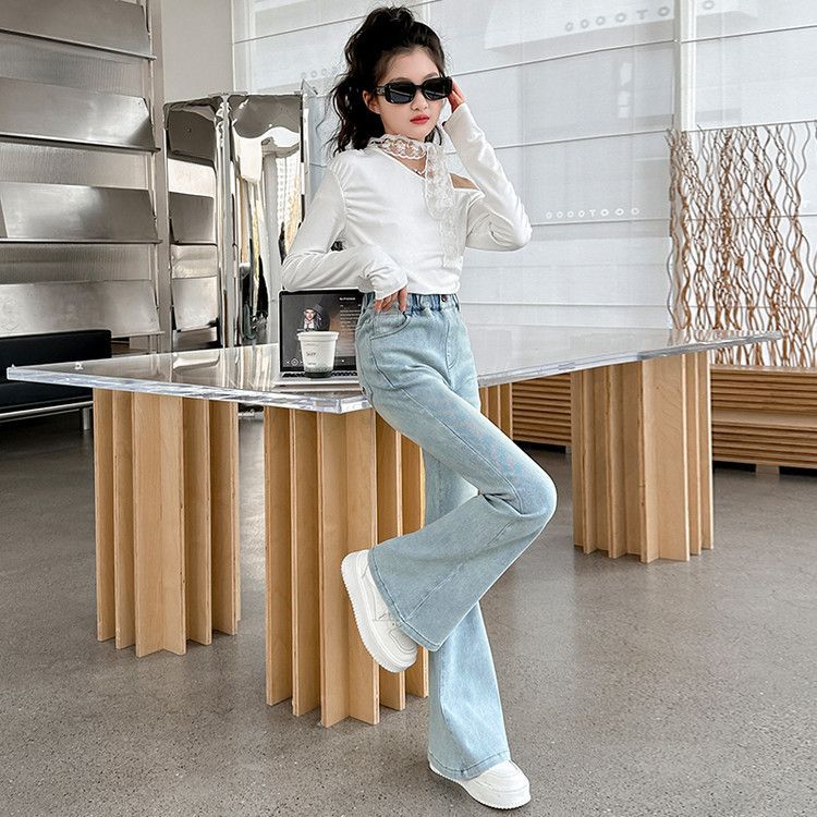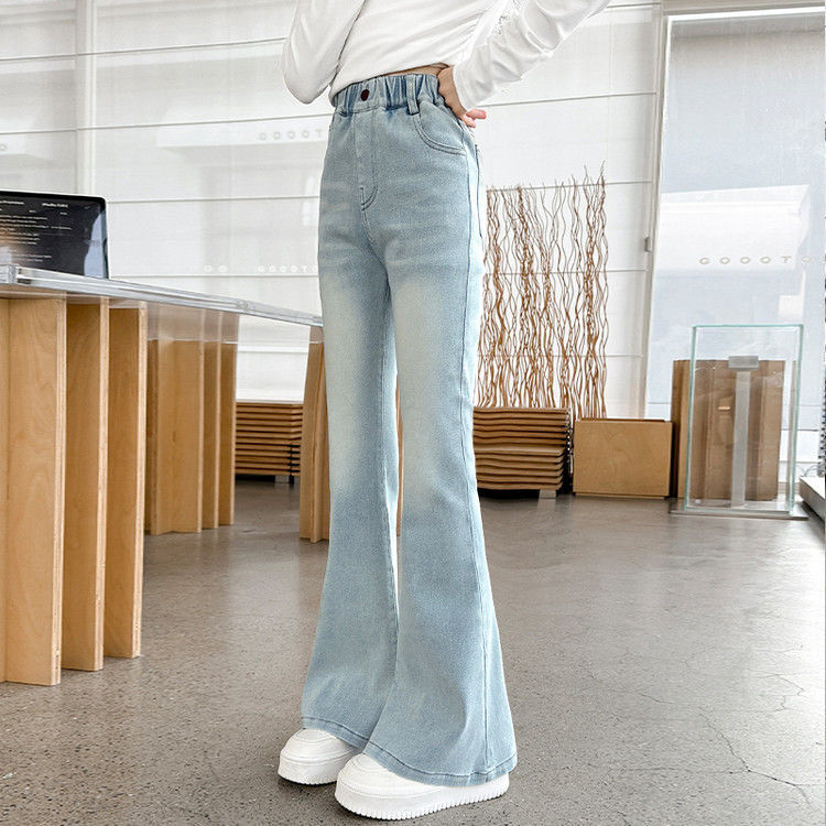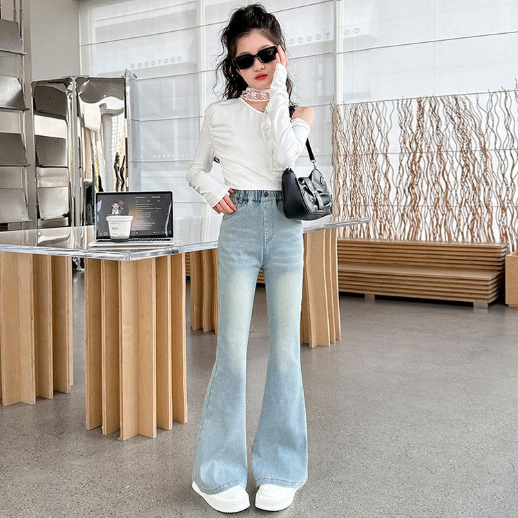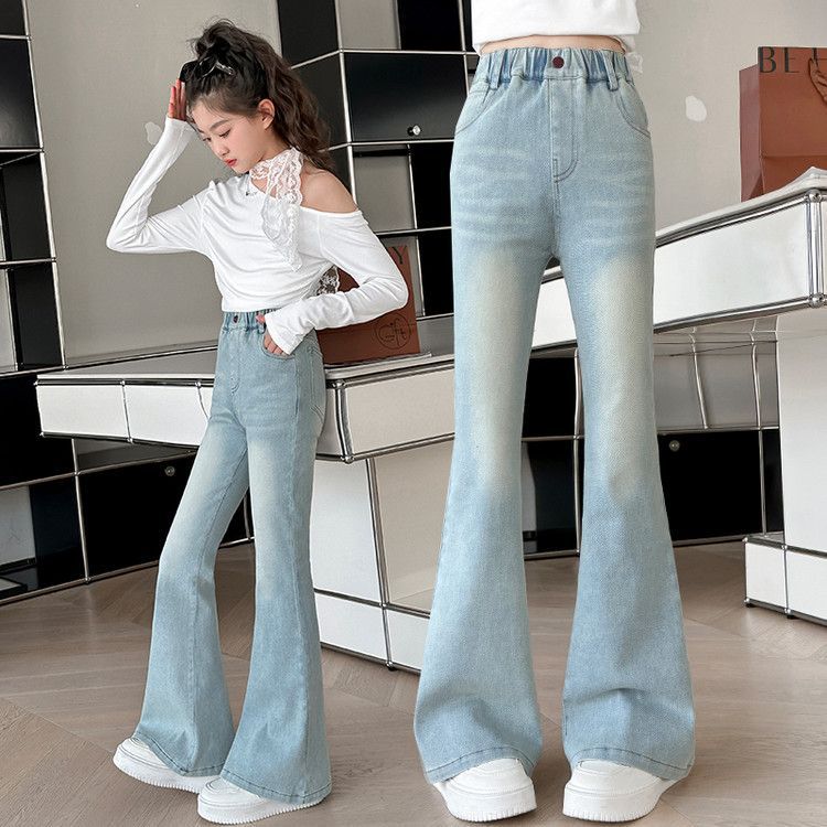 소녀 꽃 바지 봄과 가을 서양 스타일 2025 새로운 봄 중대형 어린이 올 매치 청바지 봄 어린이 바지