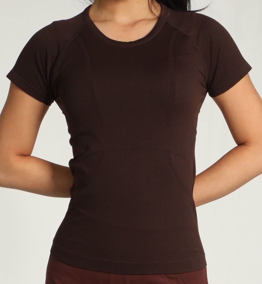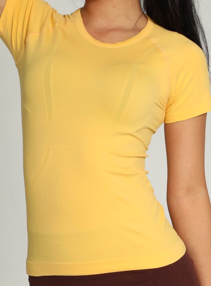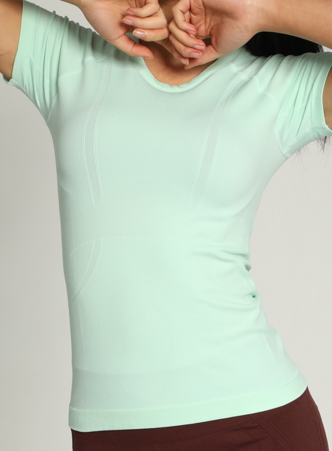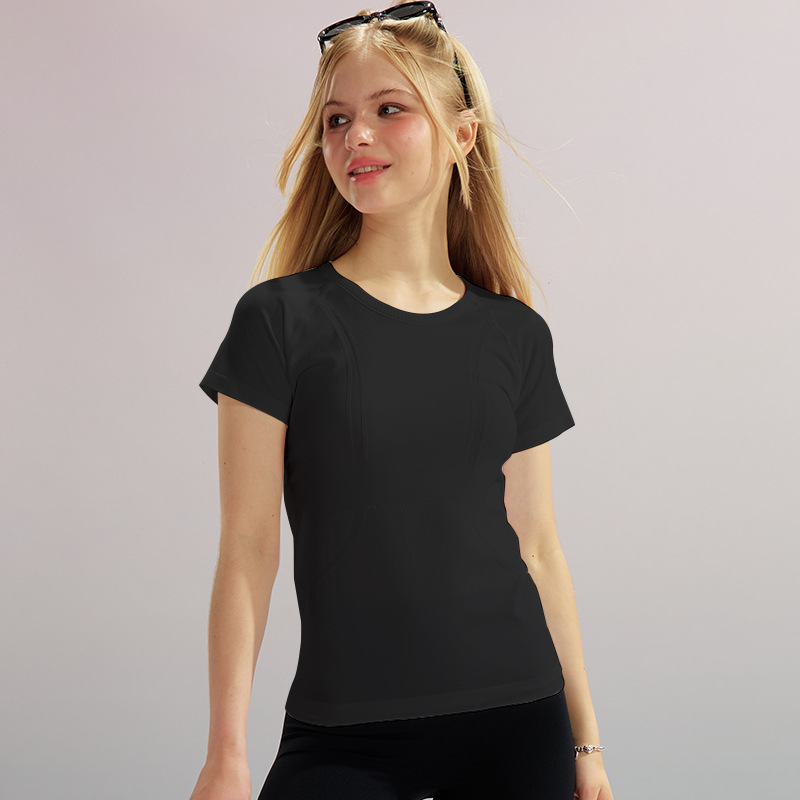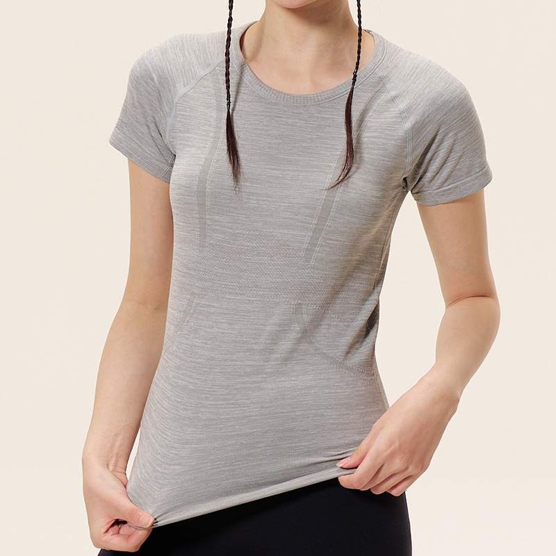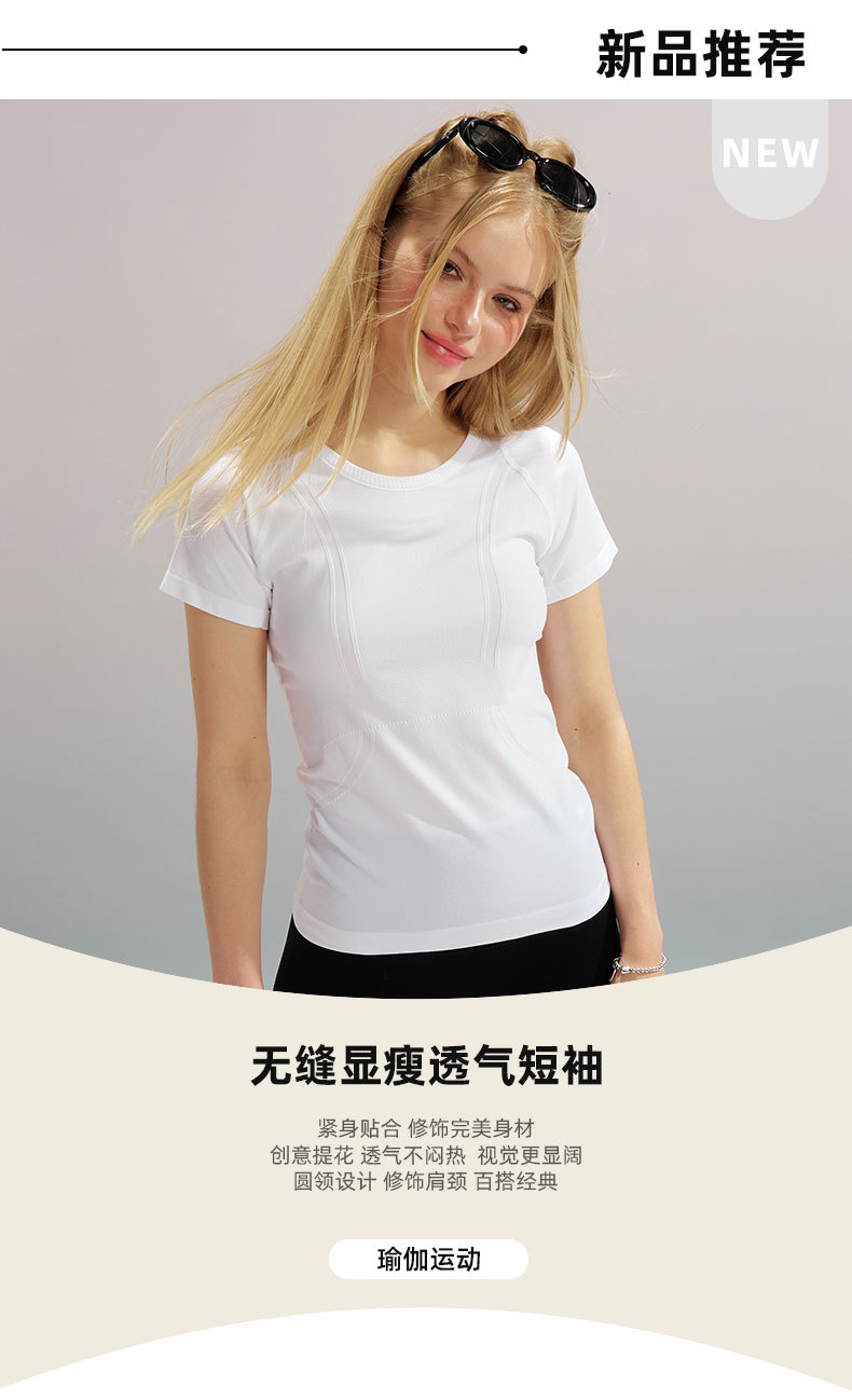 봄과 여름 여성의 벌거 벗은 감각에 맞는 슬림핏 달리기 피트니스 라운드 넥 높은 탄성 요가 짧은 소매를위한 두 배의시 원활한 요가 세트