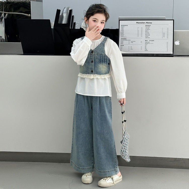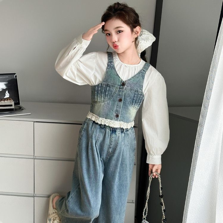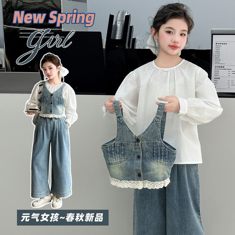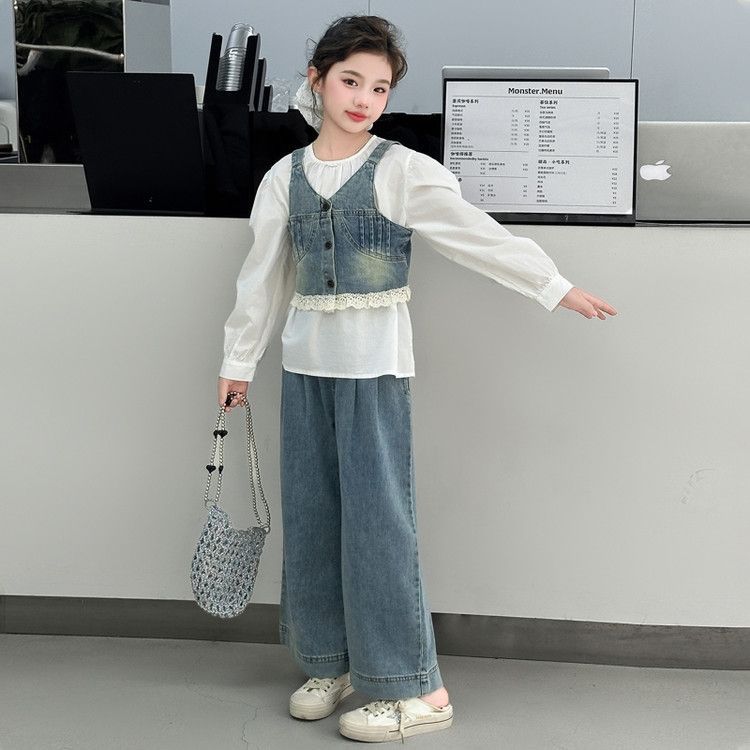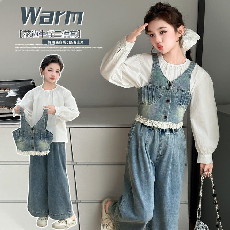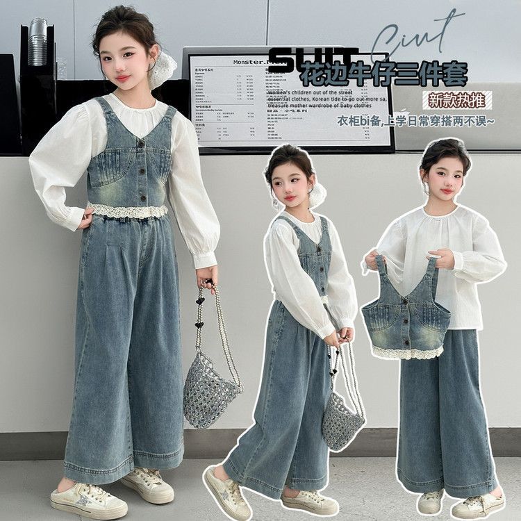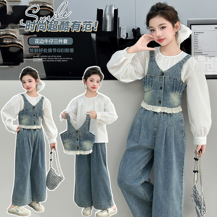 소녀 세트 2025 신식 어린이 봄웨어 데님 조끼 3 피스 세트 소녀 캐주얼 봄과 가을 바지스토어 가기