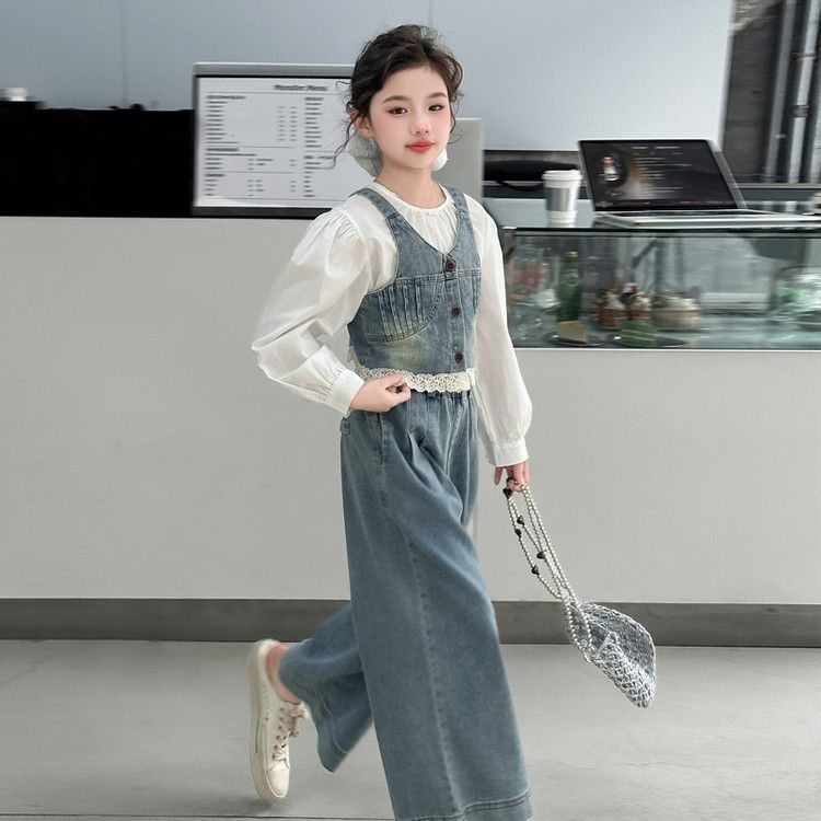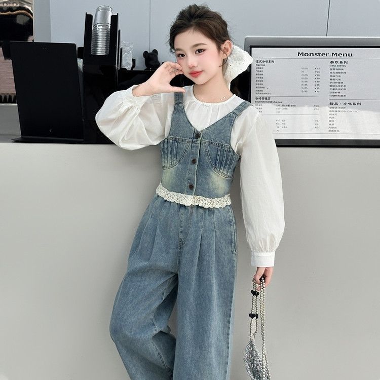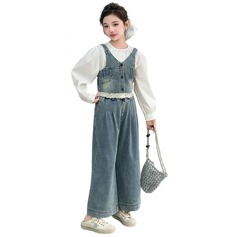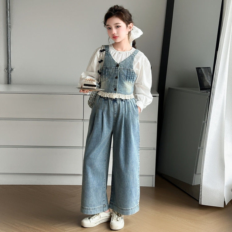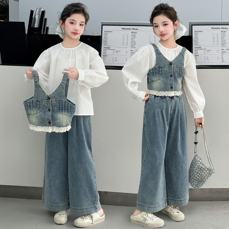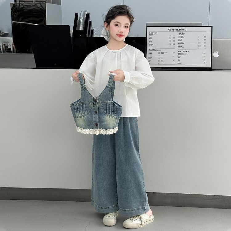 소녀 세트 2025 신식 어린이 봄웨어 데님 조끼 3 피스 세트 소녀 캐주얼 봄과 가을 바지스토어 가기