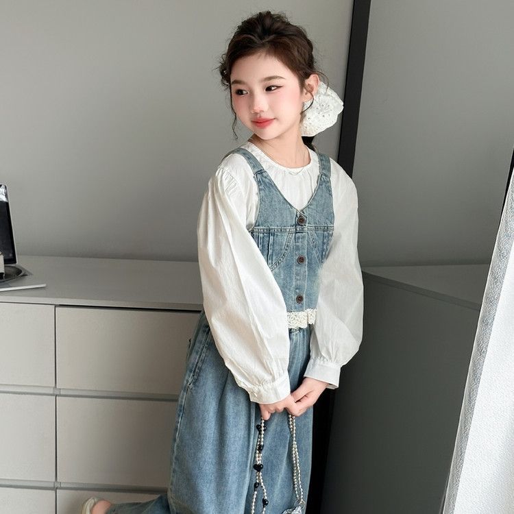 소녀 세트 2025 신식 어린이 봄웨어 데님 조끼 3 피스 세트 소녀 캐주얼 봄과 가을 바지