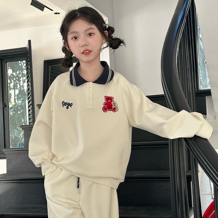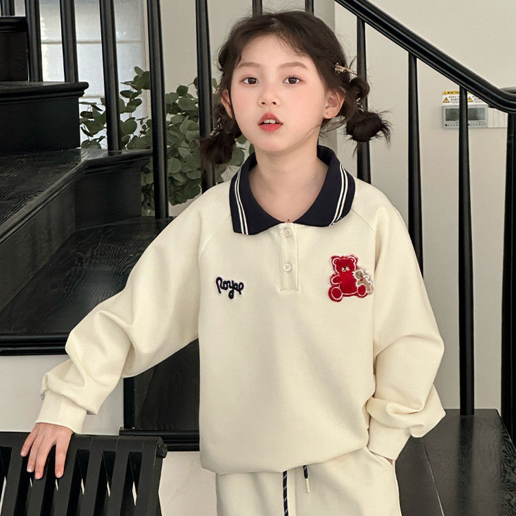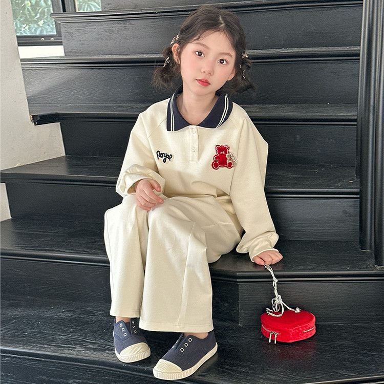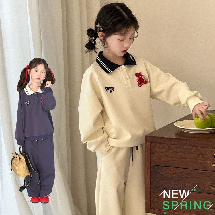 한국 여자 세트 봄 2025 새로운 유행 어린이 봄 캐주얼 느슨한 서양식 땀 바지 투피스 세트스토어 가기