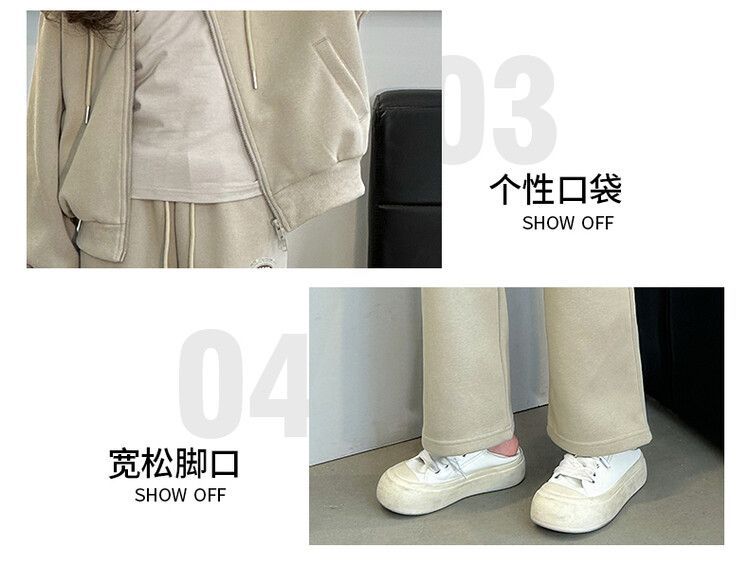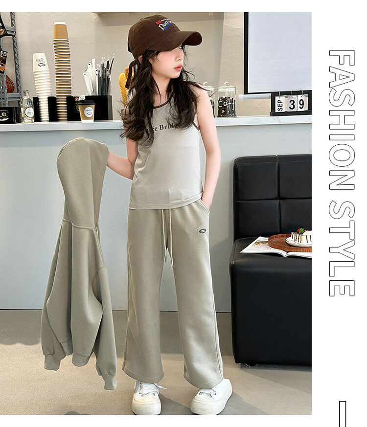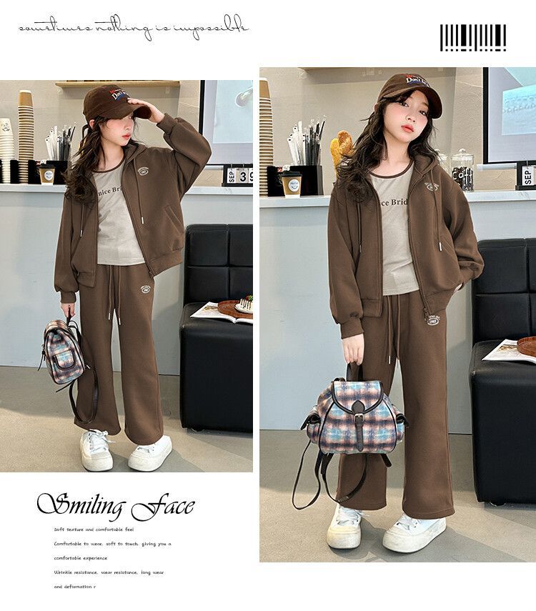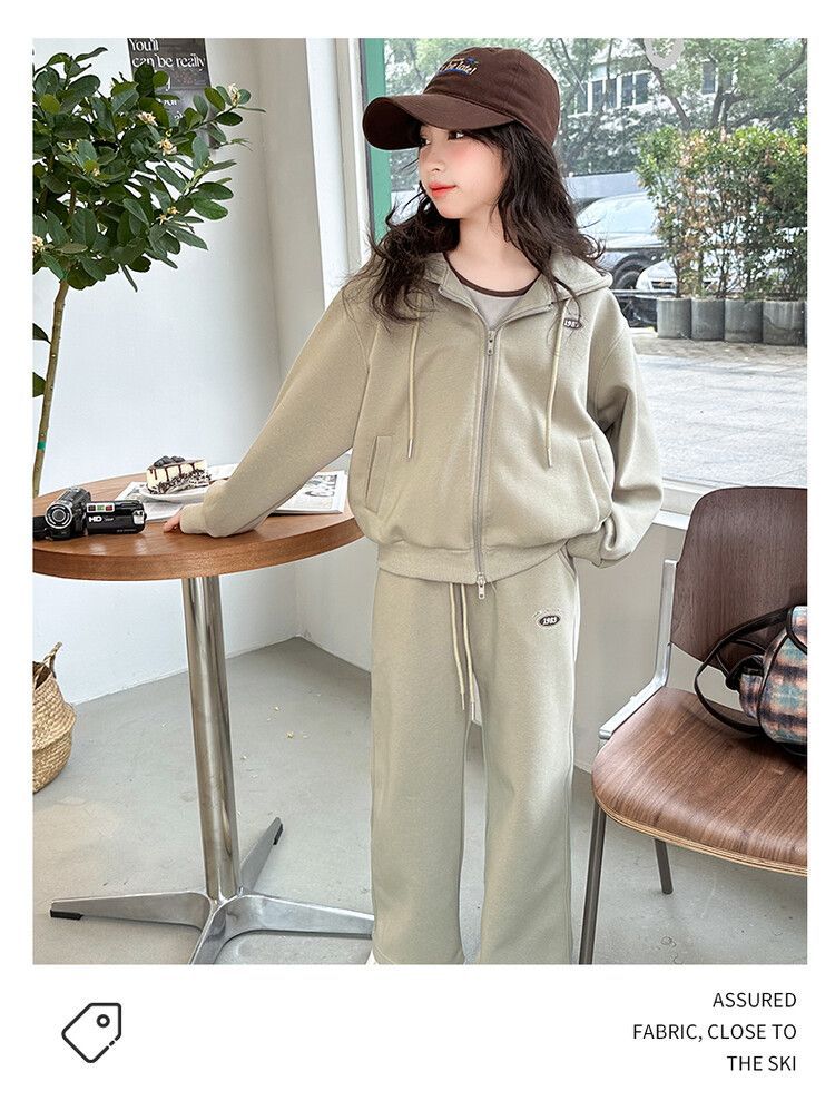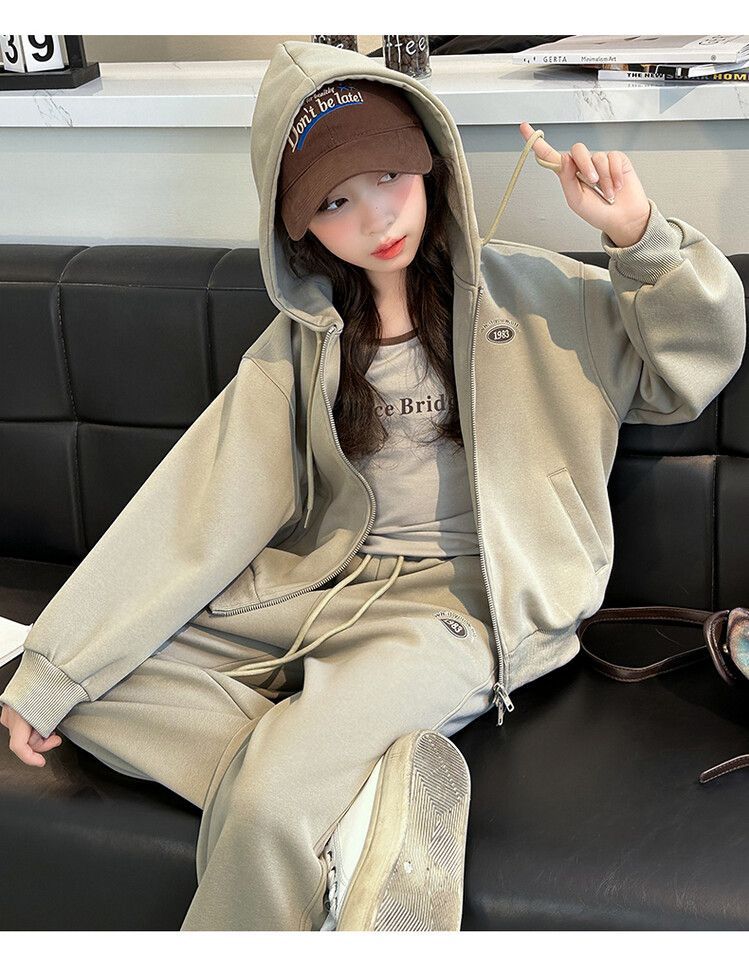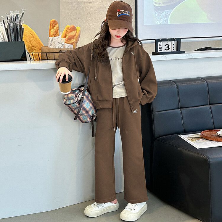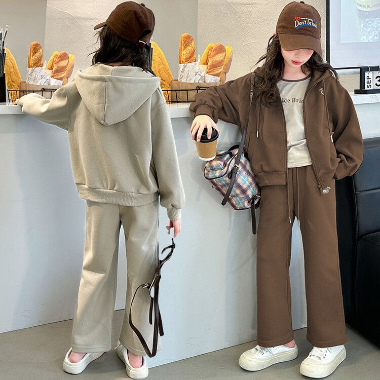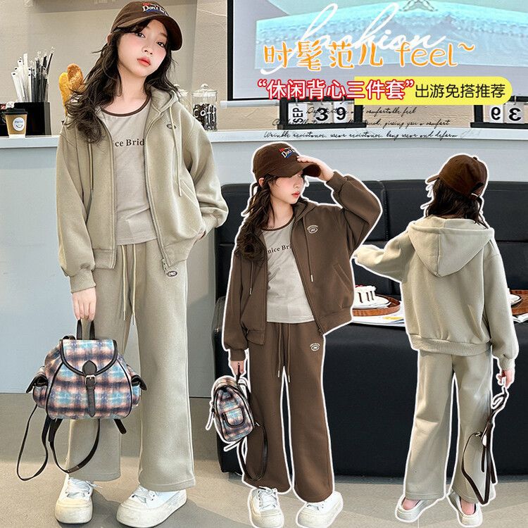 소녀 세트 2024 가을 후드 더블 지퍼 재킷 소녀의 패션 유행 캐주얼 패션 3 피스 세트스토어 가기