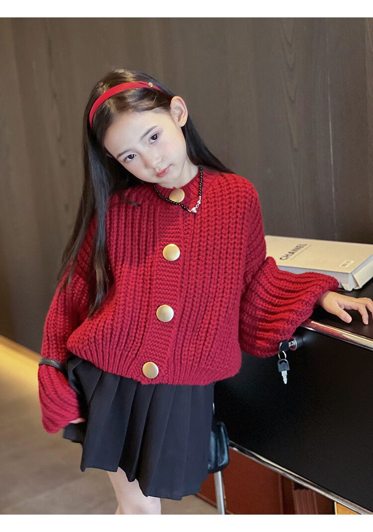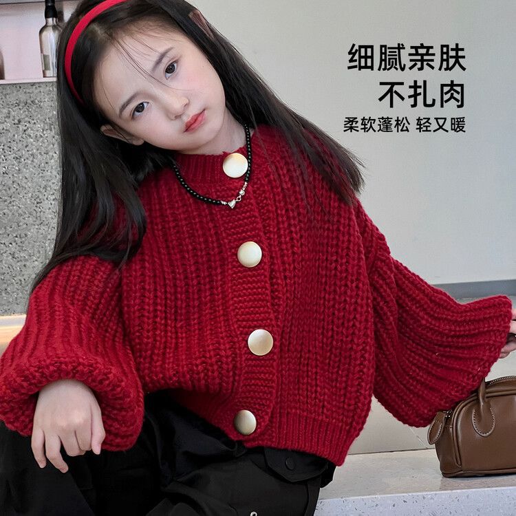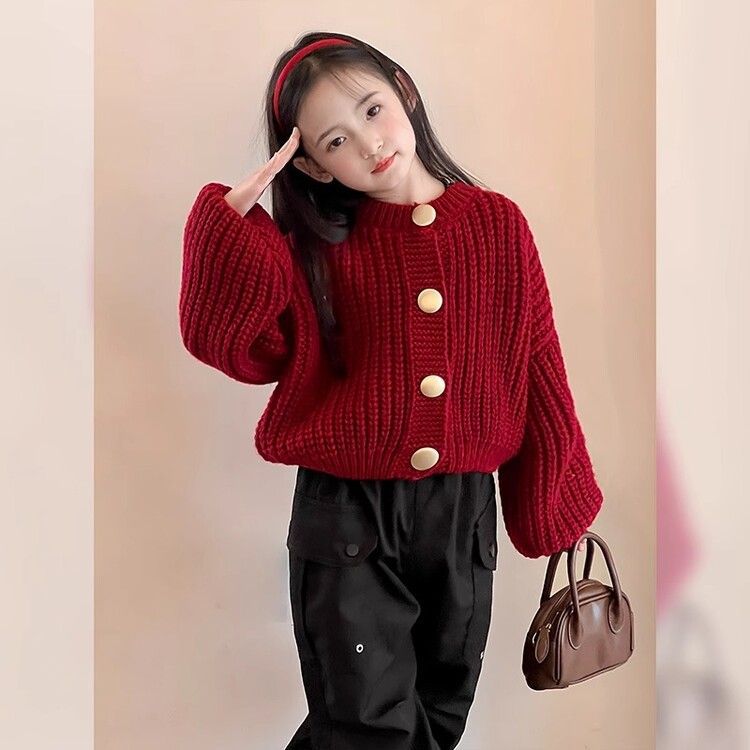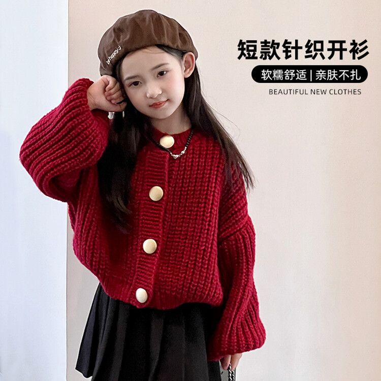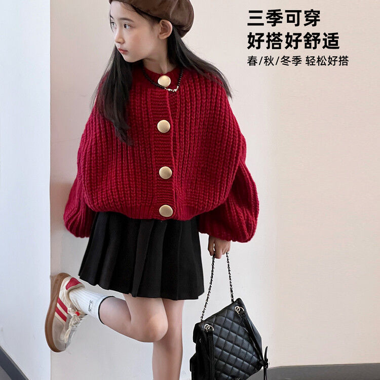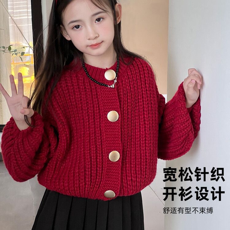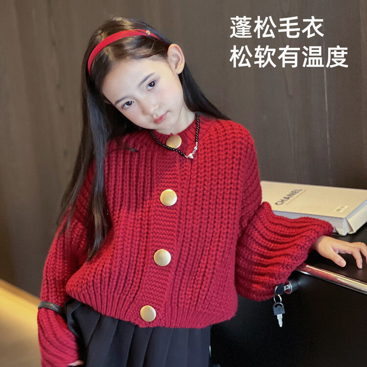 소녀 원피스 가을과 겨울 스웨터 세트 어린이 설날 큰 어린이 설날 붉은 니트 새해 원피스스토어 가기
