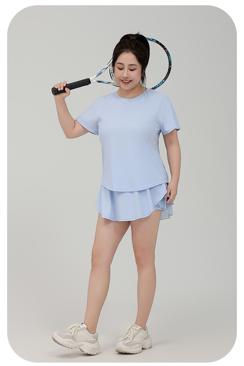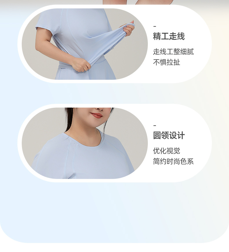 느슨한 스포츠 통기성 빠른 건조 피트니스 세트 짧은 티셔츠 여성 슬리밍 러닝 트레이닝 유럽과 미국의 요가 스포츠 탑스토어 가기