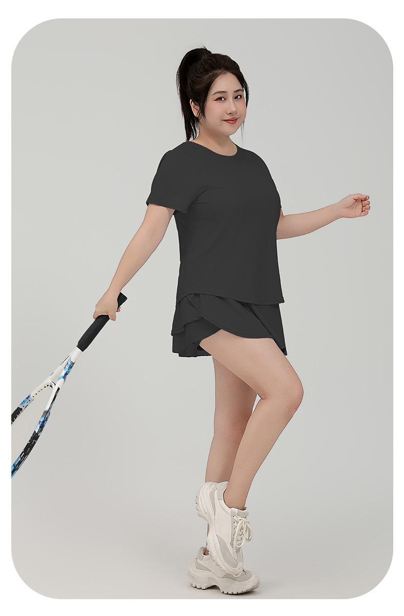 느슨한 스포츠 통기성 빠른 건조 피트니스 세트 짧은 티셔츠 여성 슬리밍 러닝 트레이닝 유럽과 미국의 요가 스포츠 탑