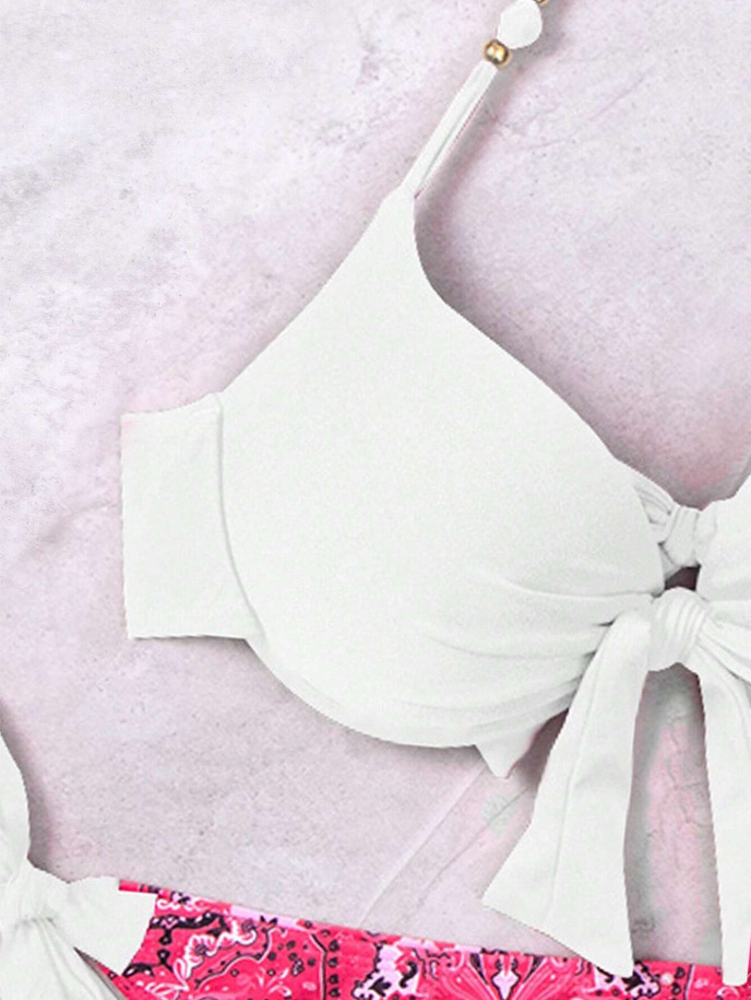 2024 유럽과 미국의 비키니 섹시한 레이스 업 푸시 업 스플릿 수영복 솔리드 컬러 크로스 바디 수영복 여성용 투피스 비키니