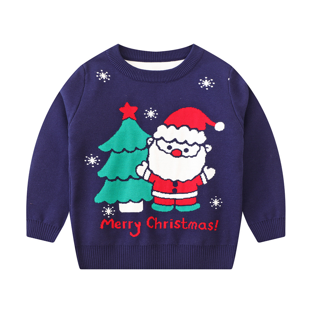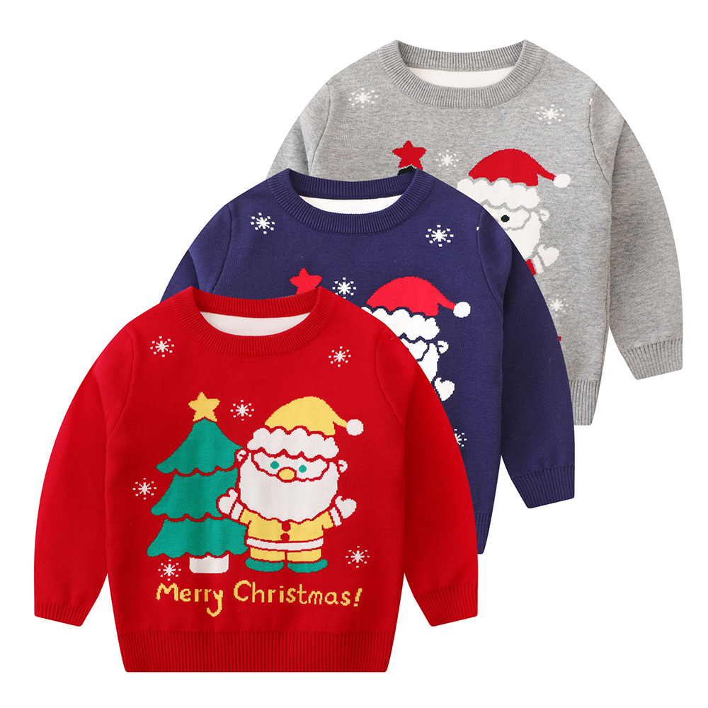 국경 간 어린이 스웨터 소년 가을, 겨울 2024 새로운 산타 클로스와 나무 가을 스웨터 재고 있음 도매스토어 가기