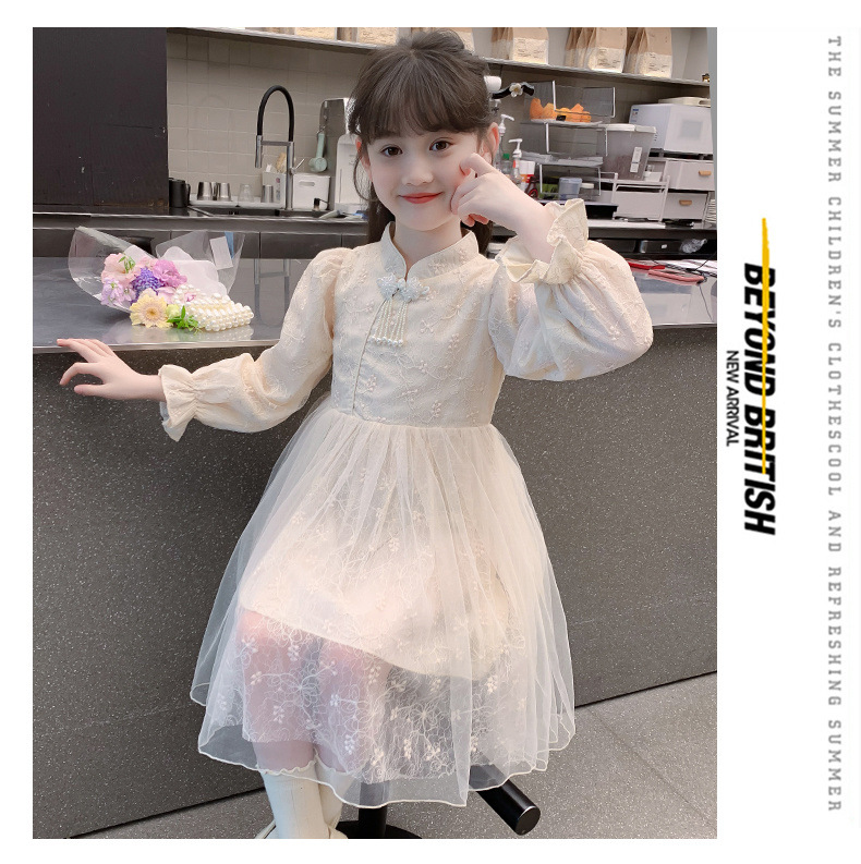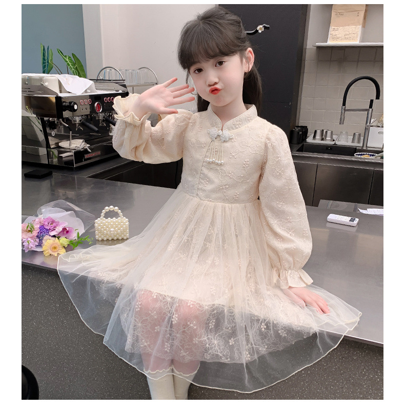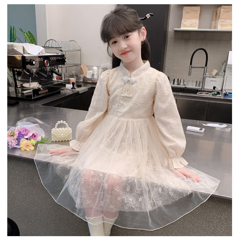 소녀 가을 2024 새로운 원피스 어린이 한푸 국가 스타일 중국 공주 원피스 봄과 가을 어린 소녀의 원피스스토어 가기