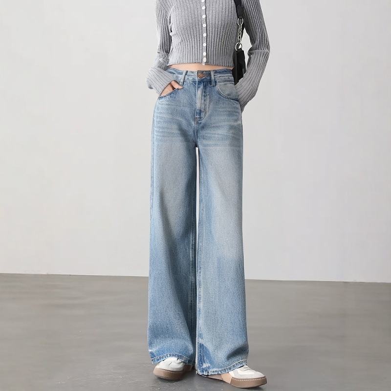 Lyocell + 코튼 블루 여성용 와이드 레그 청바지 봄 신축성 없음 하이 웨이스트 패션 다목적 연령 감소 스트레이트 롱스토어 가기