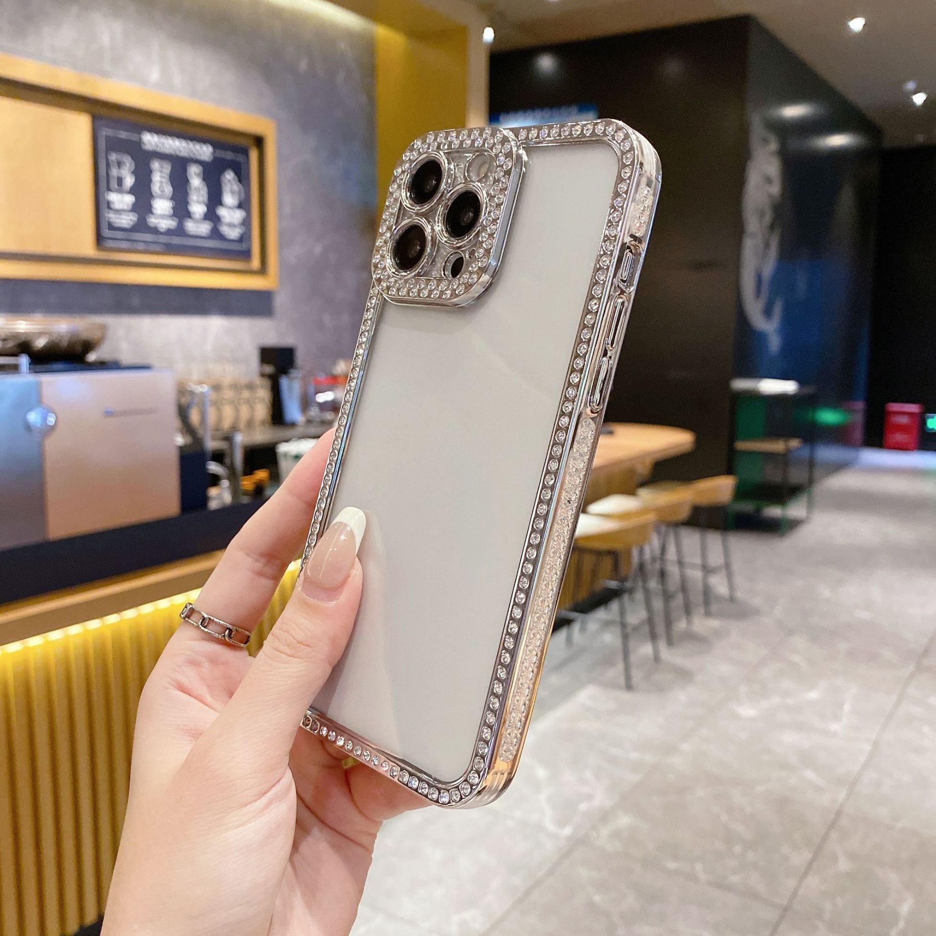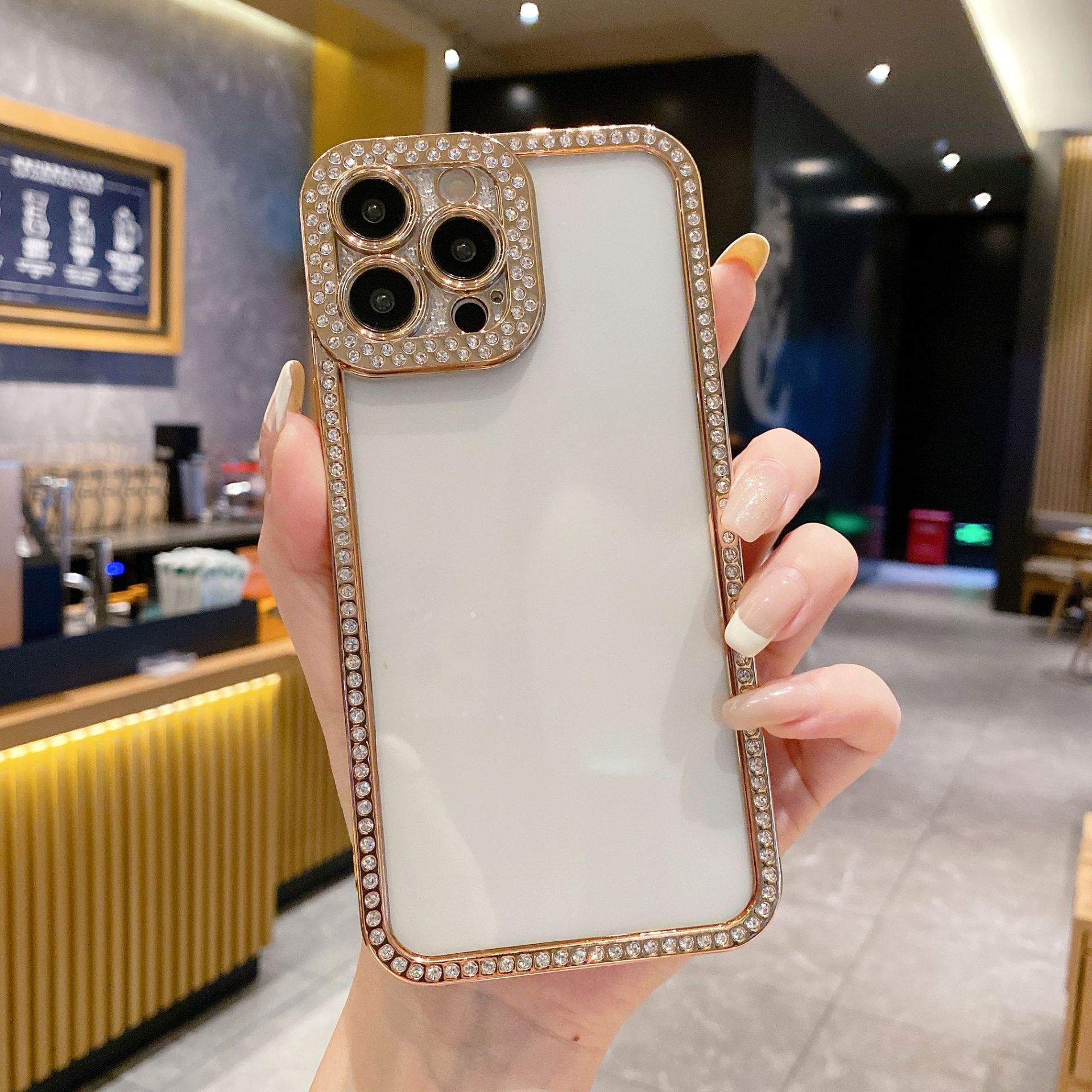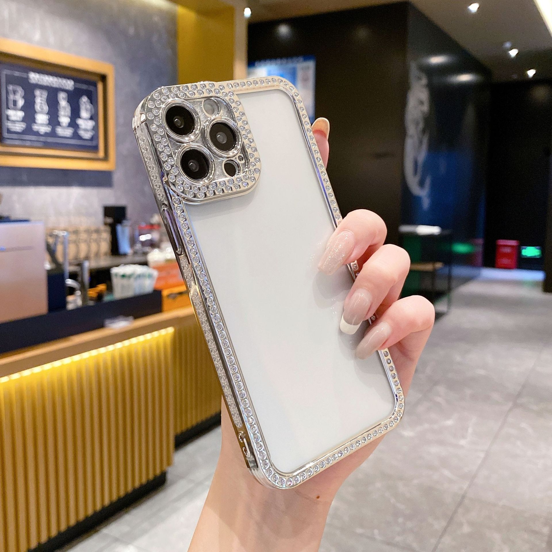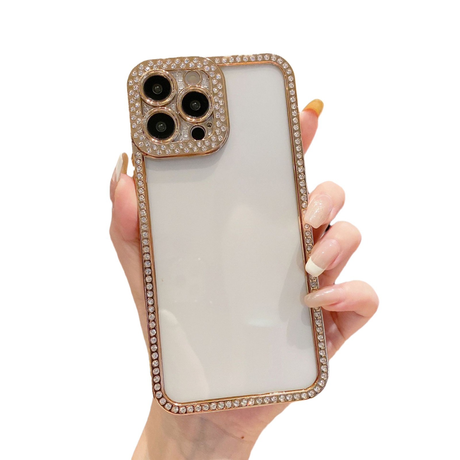 iphone15promax apple 14pro 휴대폰 케이스에 적합한 전기 도금 라인스톤 렌즈 일체형 11 휴대폰 케이스
