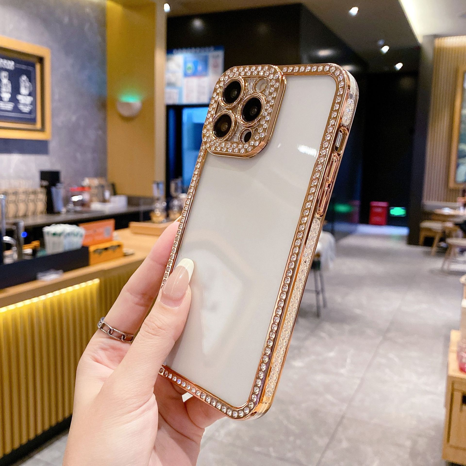 iphone15promax apple 14pro 휴대폰 케이스에 적합한 전기 도금 라인스톤 렌즈 일체형 11 휴대폰 케이스스토어 가기