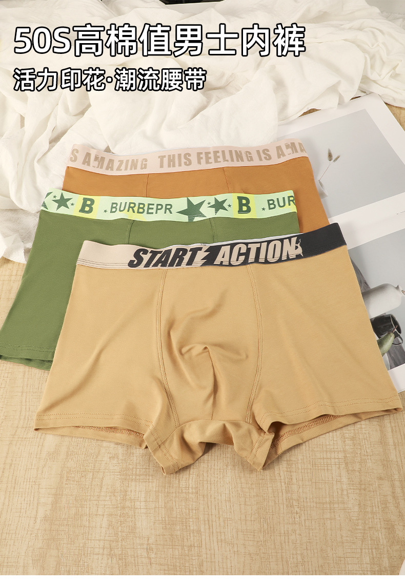 개인화 된 인쇄 속옷 남자 클래스 a 면 여름 중간 허리 복서 팬티 젊은 학생 편안한 통기성 복서 팬티