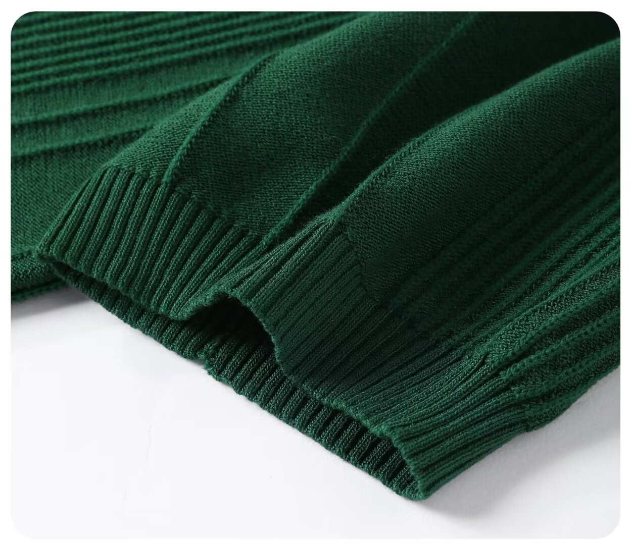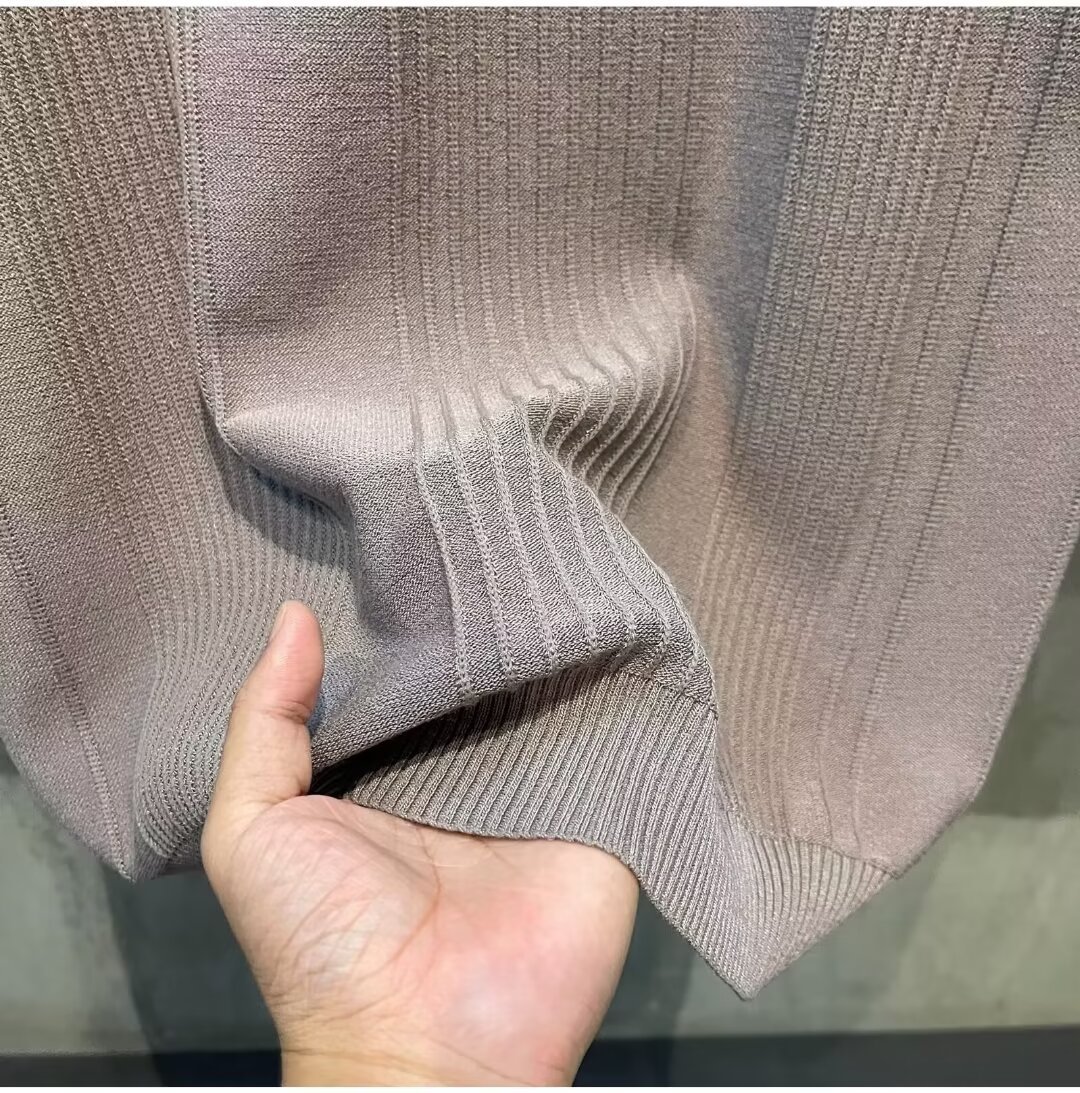니트 반팔 티셔츠 남성용 솔리드 컬러 수직 줄무늬 여름 Ins 유행 캐주얼 반소매 탑 넥 비즈니스 베이스 셔츠