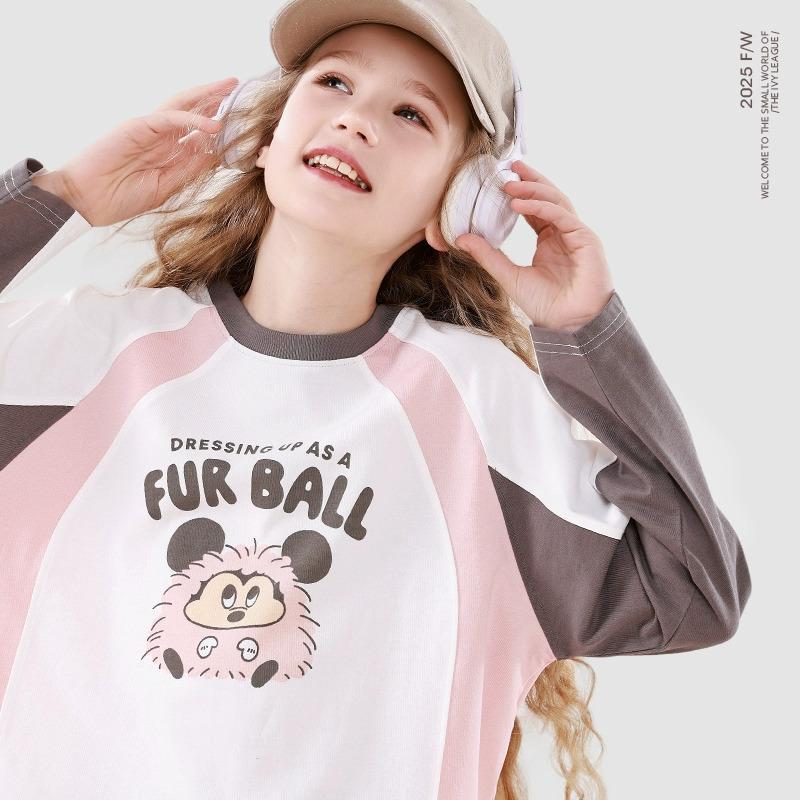 소녀 긴 소매 티셔츠 2025 봄과 가을 새로운 최고 어린이 순면 베이스 셔츠 멀티 원더풀 하우스 아동복 큰 어린이 코트스토어 가기