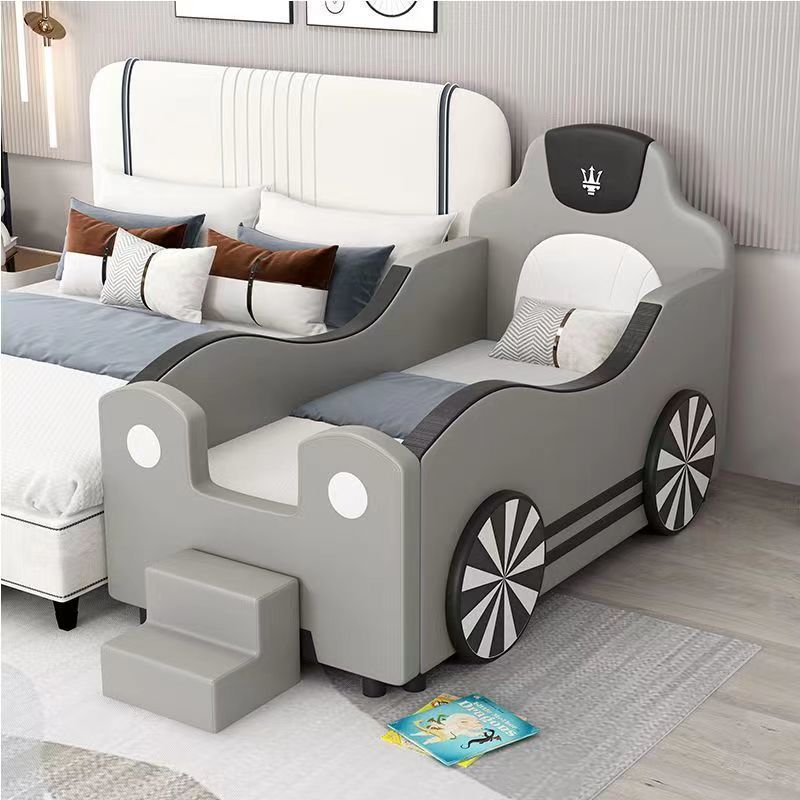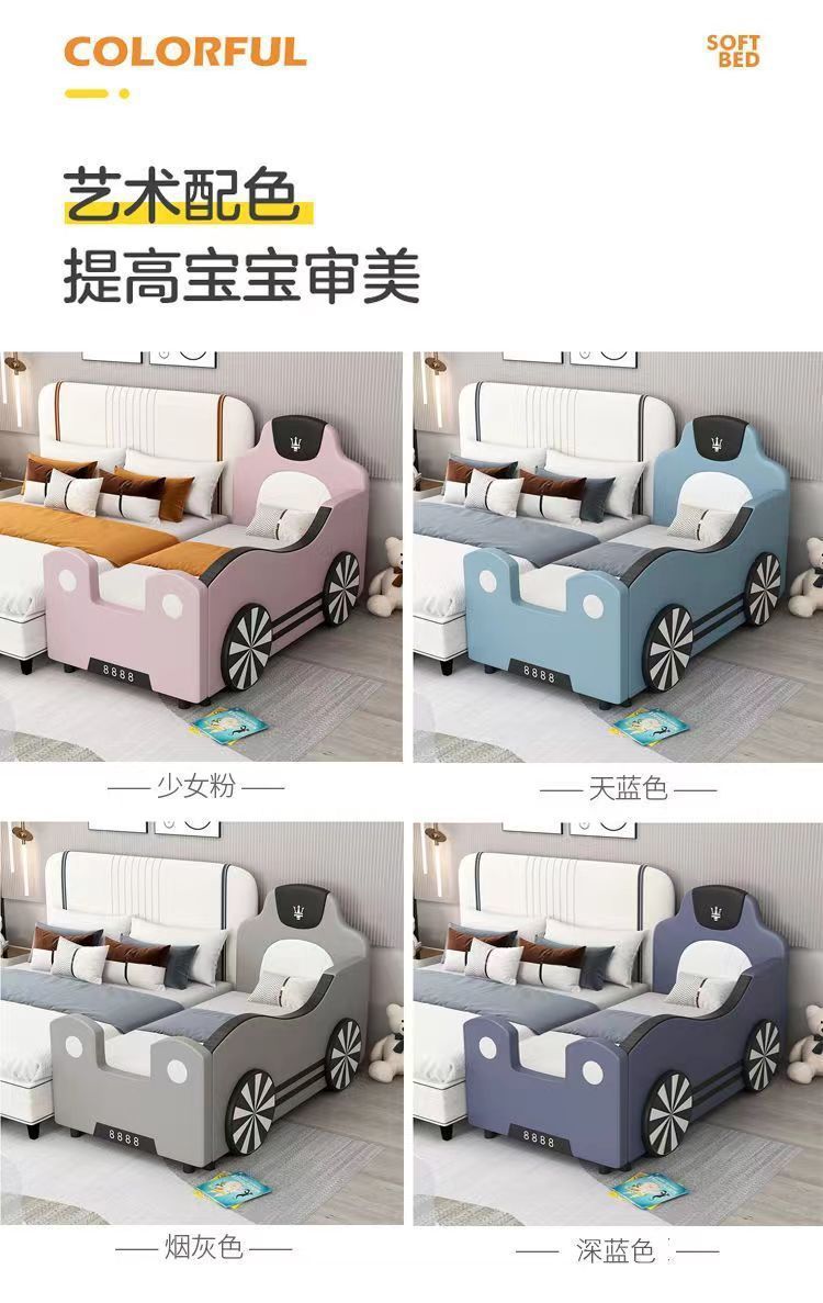 어린이 접합 침대 자동차 침대 만화 침대 단단한 나무 가드 레일 소년 부드러운 가방 드롭 방지 아기 접합 큰 침대 분할 침대