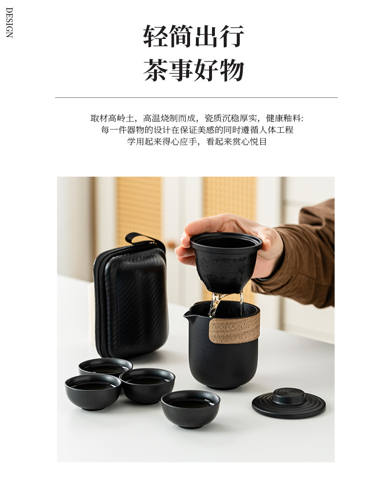 휴대용 여행 차 세트 작은 세트 간단한 야외 주전자 찻잔 휴대용 캠핑 빠른 컵 냄비 4 컵